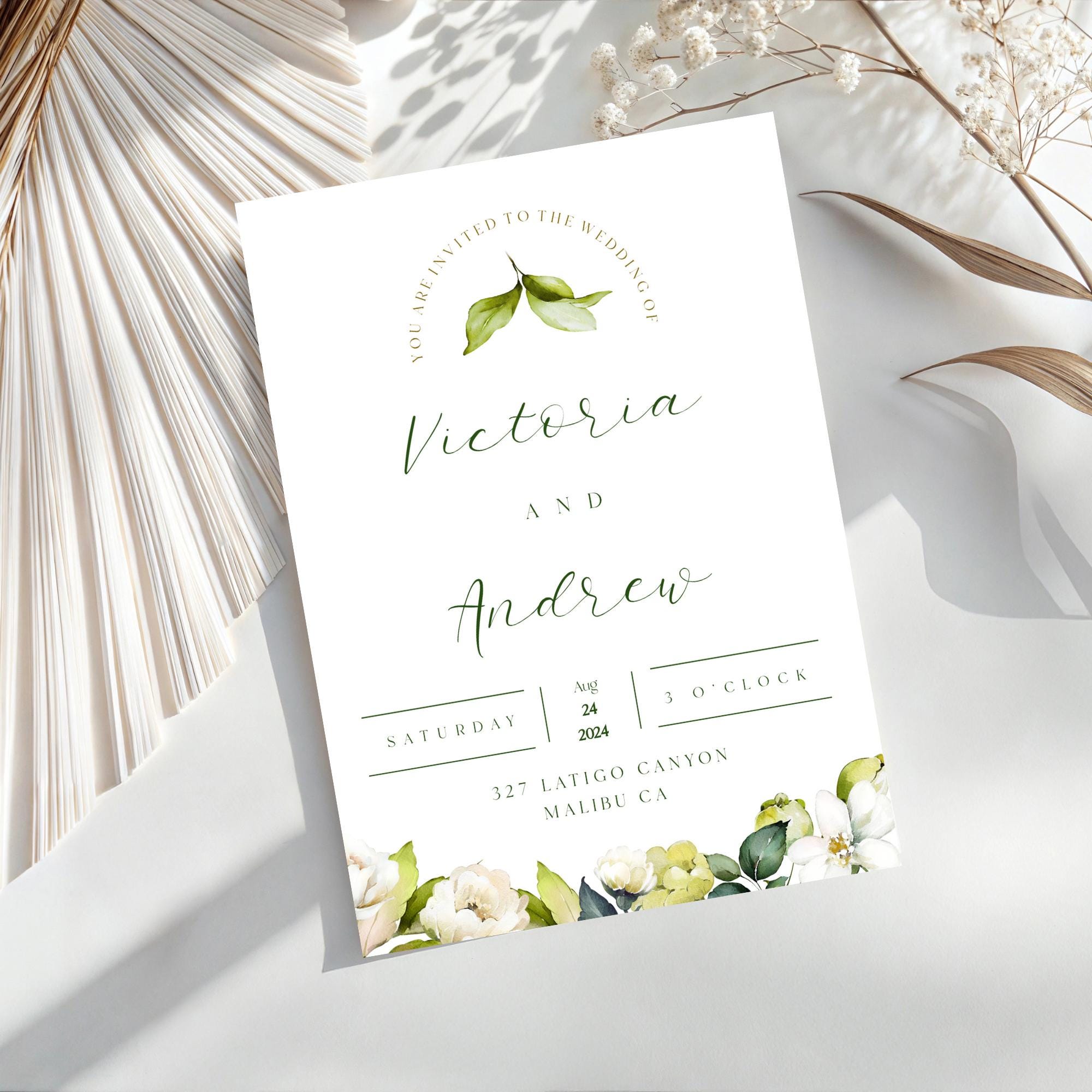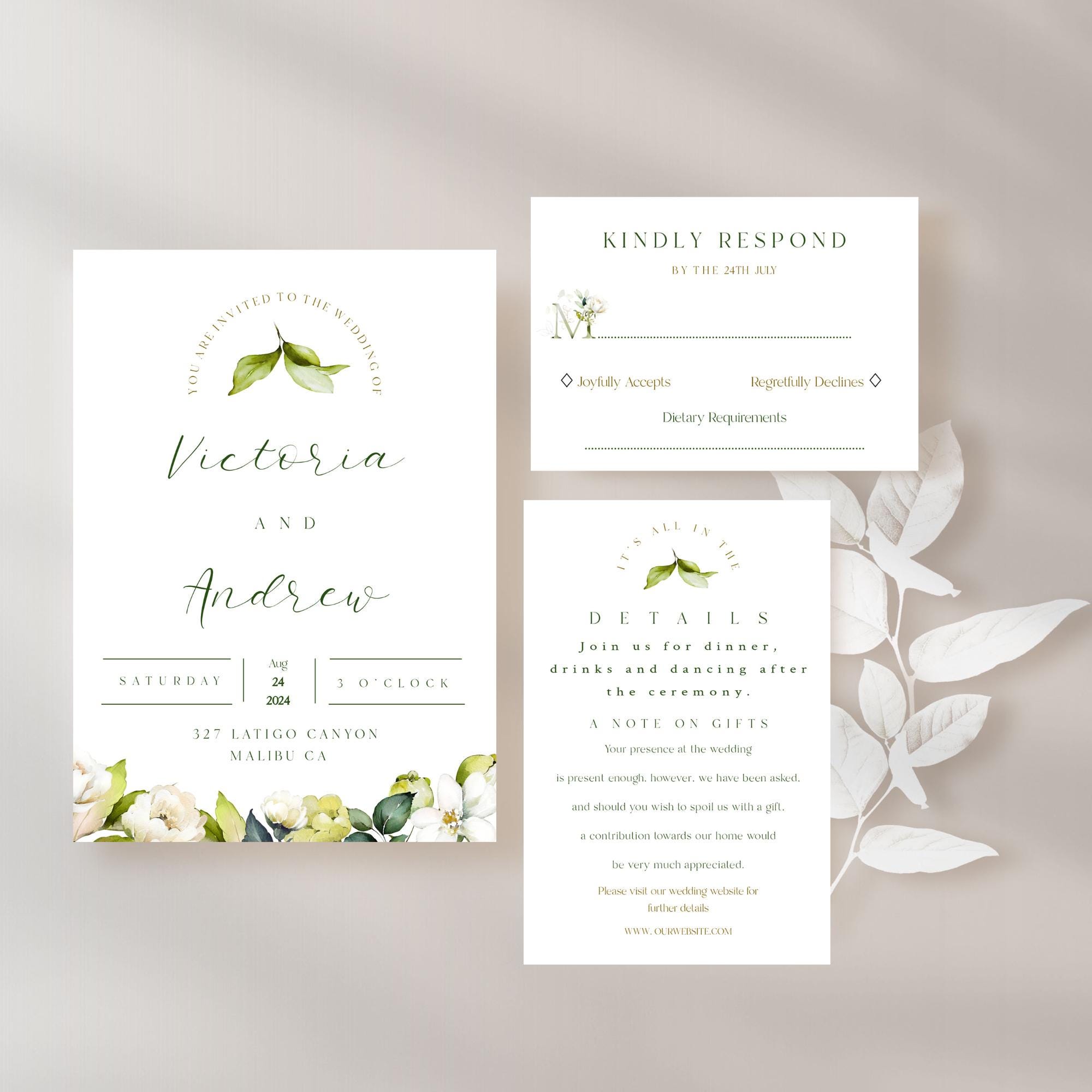Elegant white Rose Wedding Invitation Set Template. An instant download digital file for you to edit in your web browser with Templett straight after your purchase. Once personalized you are ready to print.