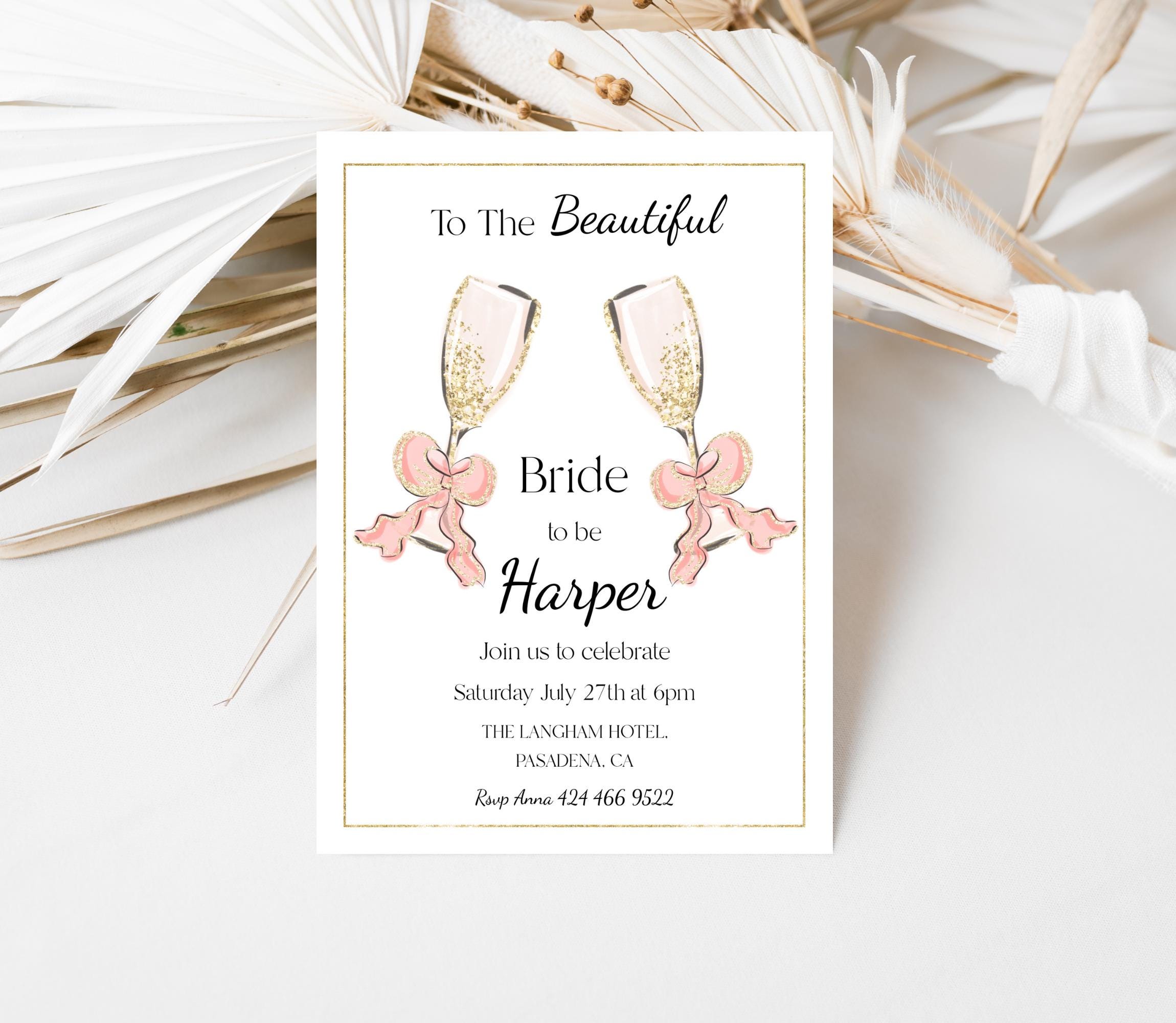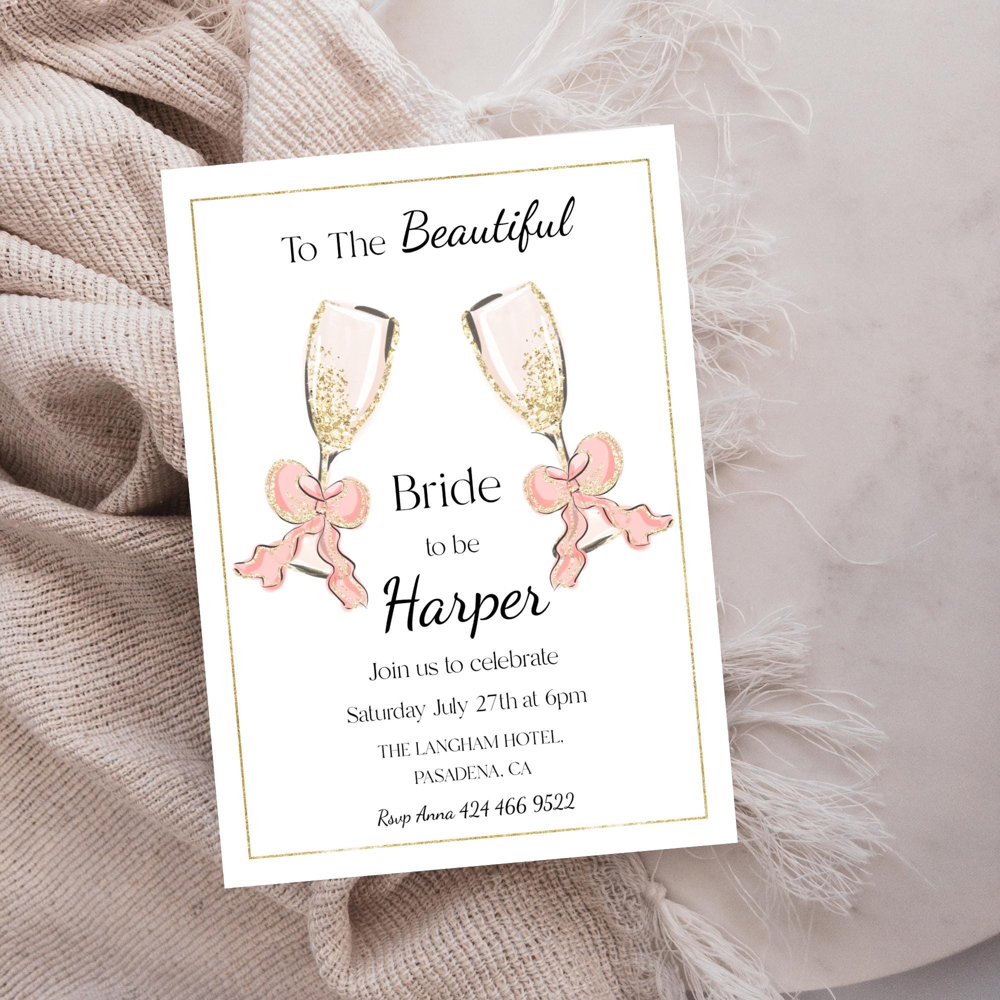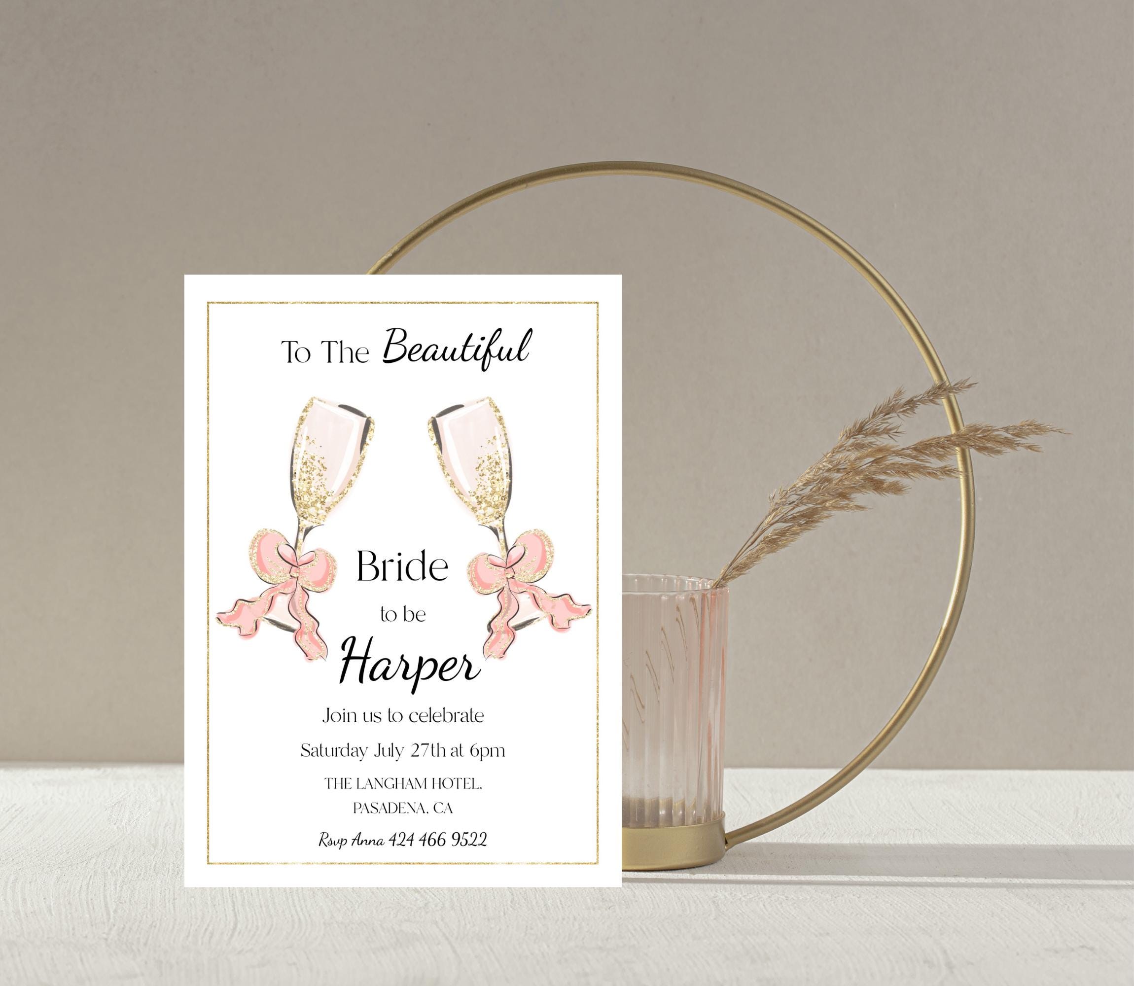 Bridal Shower Champagne Toast Invitation Template. An instant download digital file for you to edit in your web browser with Templett straight after your purchase. Once personalized you are ready to print.
