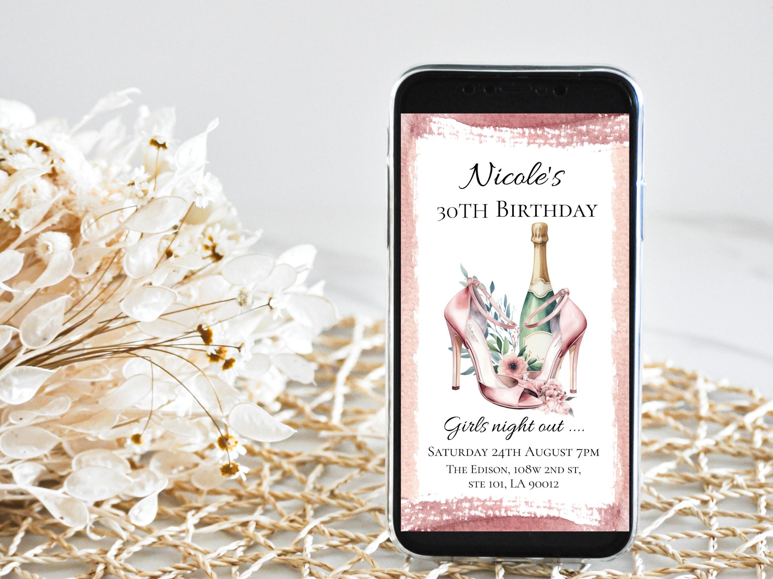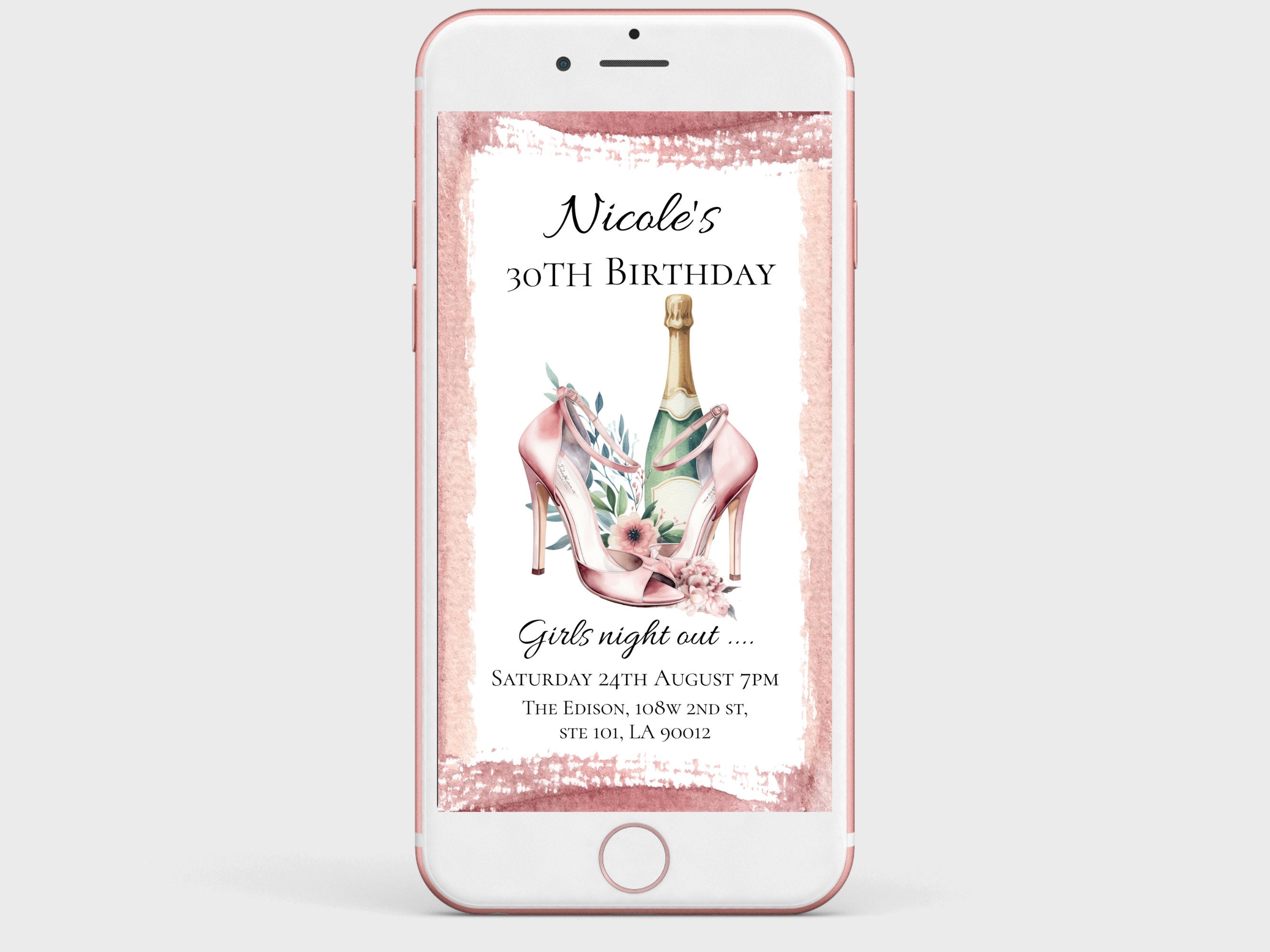 Blush Party Shoes Girls Night Out Birthday Evite. An instant download digital file for you to edit in your web browser with Templett straight after your purchase. Once personalized you are ready to send.