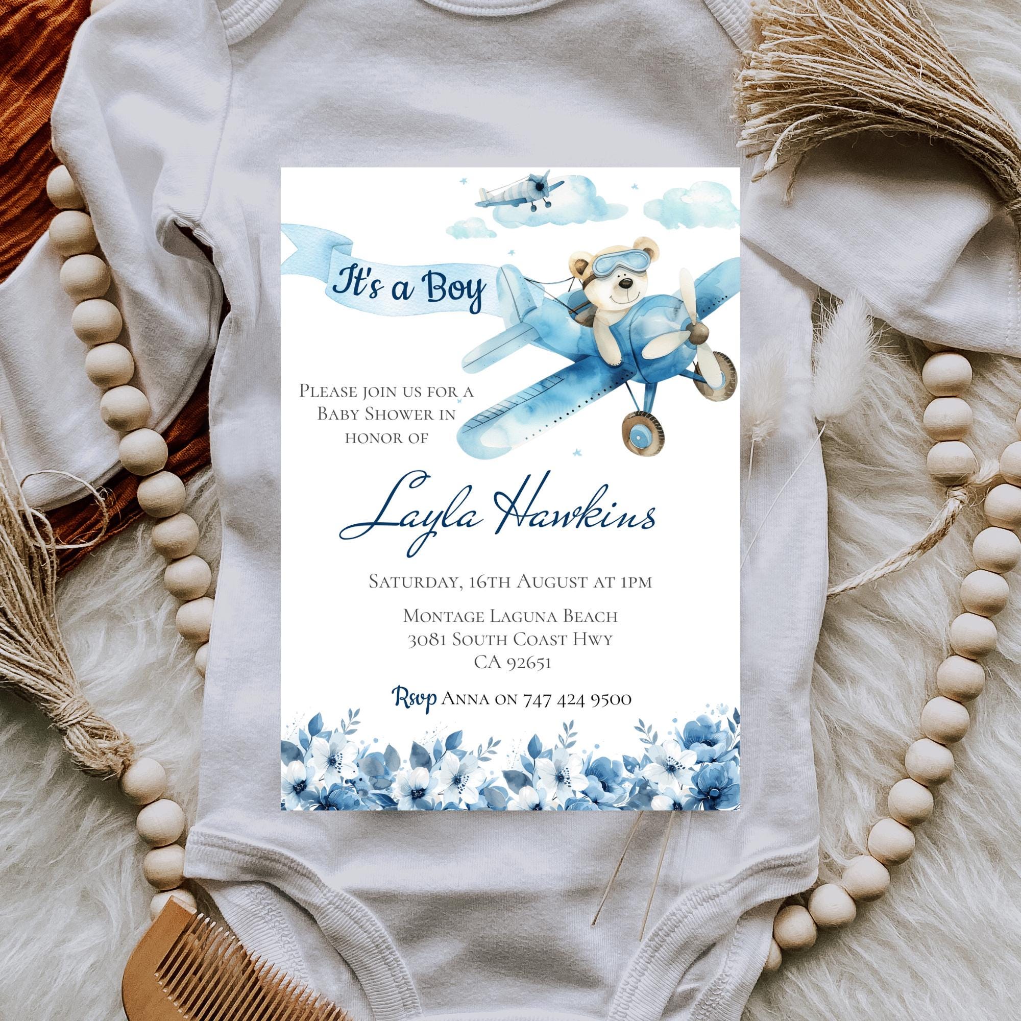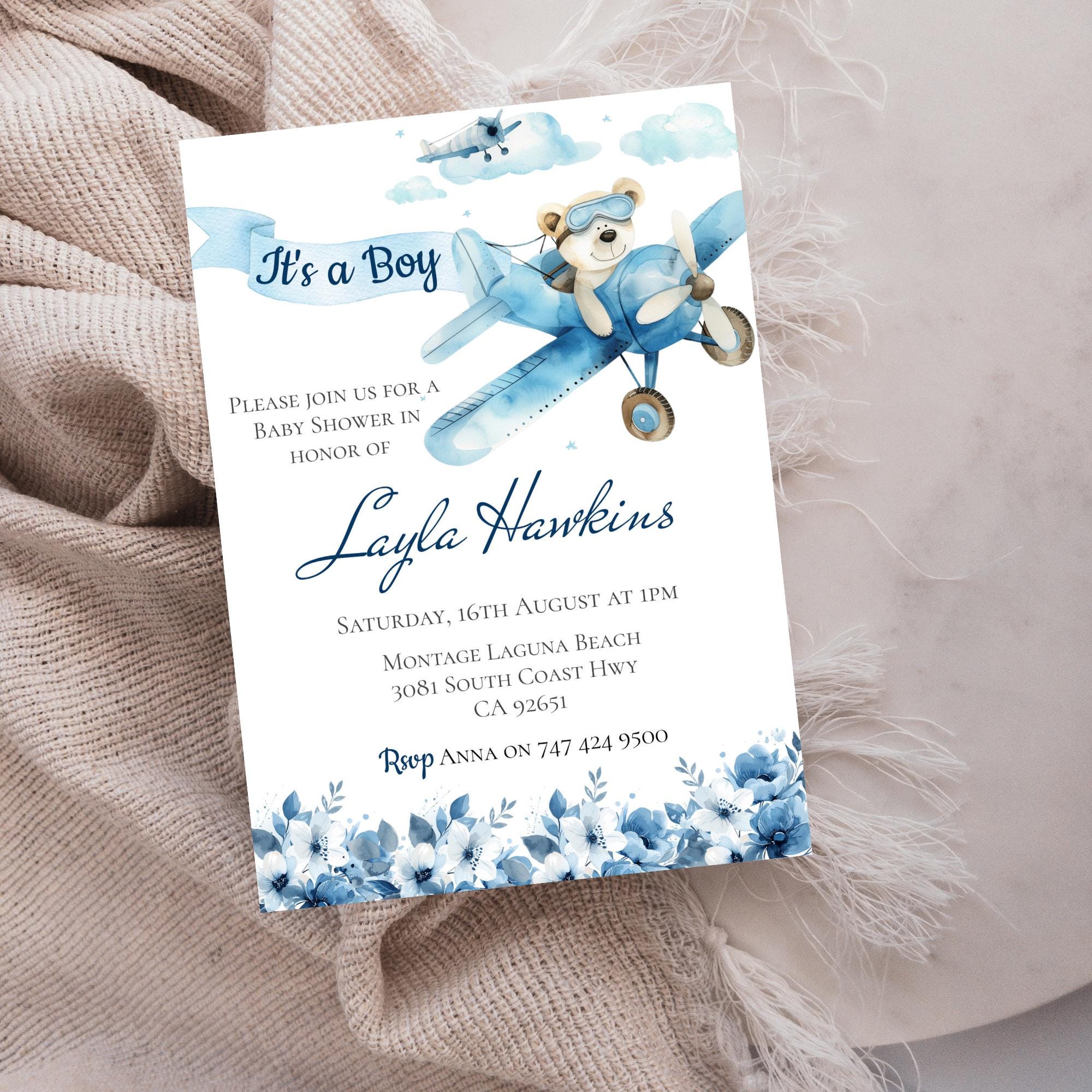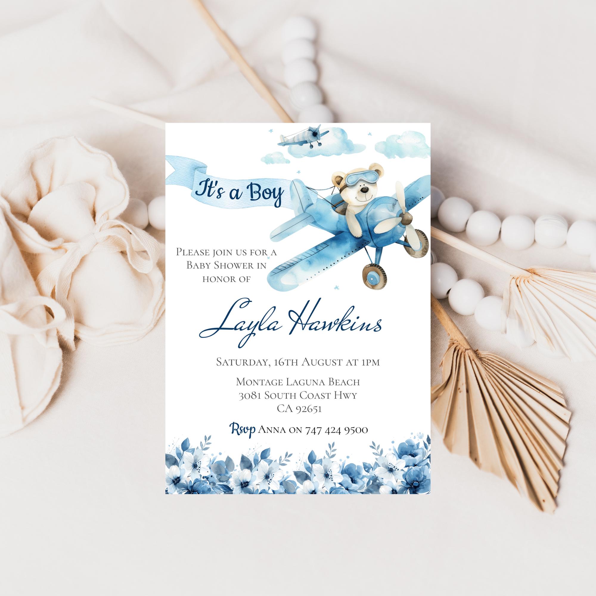 Baby Shower, It's A Boy Blue Teddy Printable Template. An instant download digital file for you to edit in your web browser with Templett straight after your purchase. Once personalized you are ready to print.