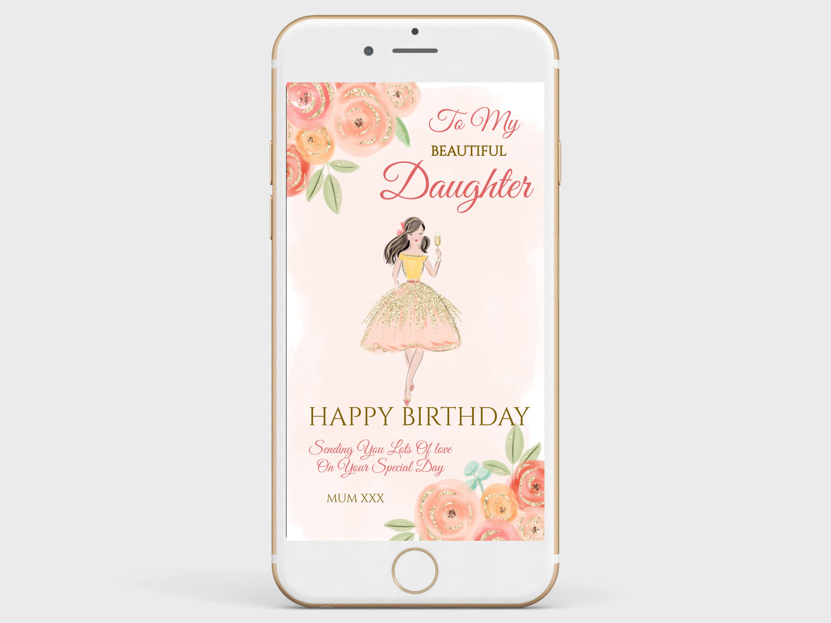 Happy Birthday Daughter E-Card. An instant download digital file for you to edit in your web browser with Templett straight after your purchase. Once personalized you are ready to send.