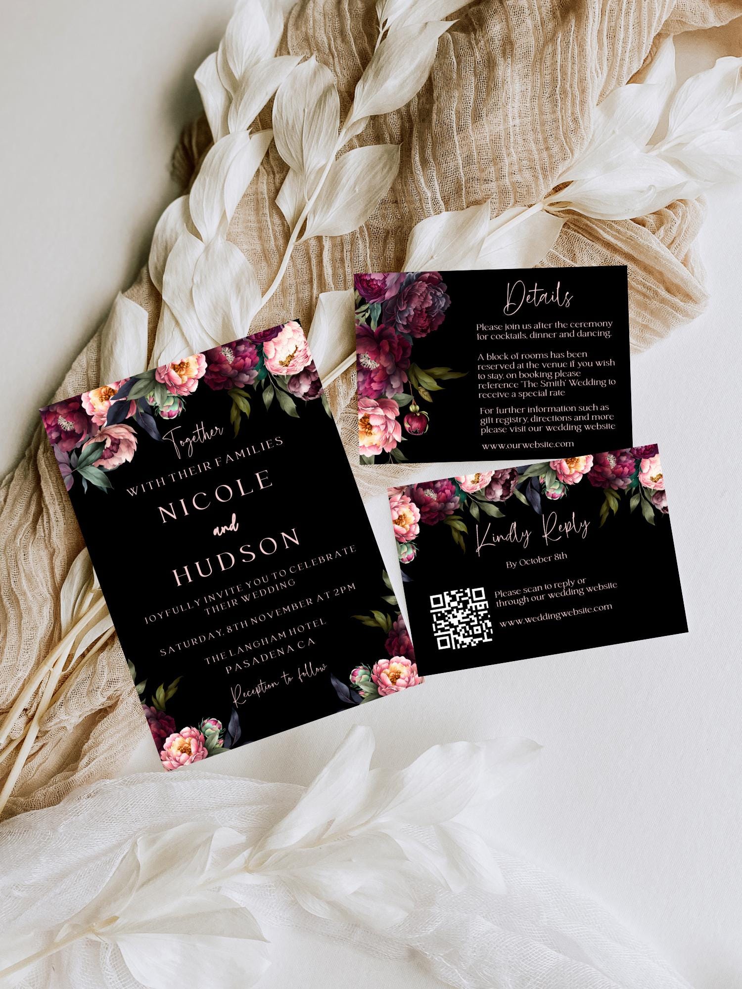 Modern Fall Peonies Wedding Suite Template. An instant download digital file for you to edit in your web browser with Templett straight after your purchase. Once personalized you are ready to print.