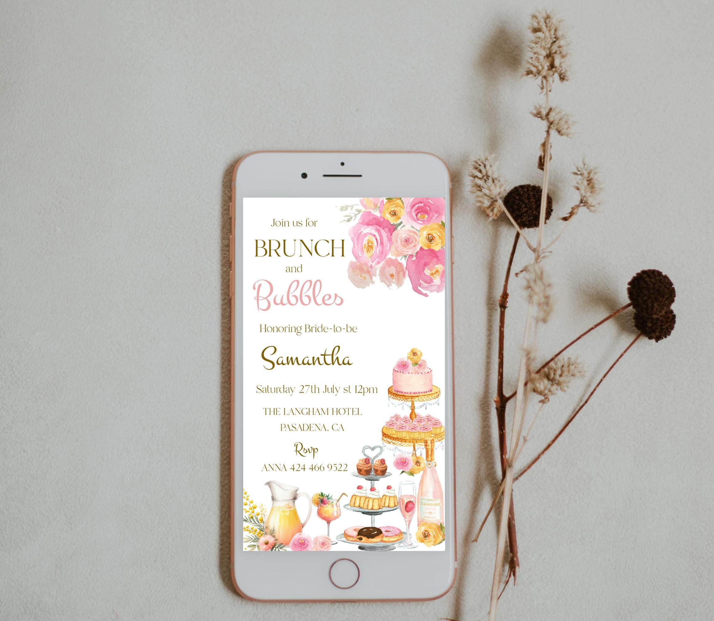 Floral Brunch and Bubbles Sweet Treats Bridal Shower Evite. An instant download digital file for you to edit in your web browser with Templett straight after your purchase. Once personalized you are ready to send.