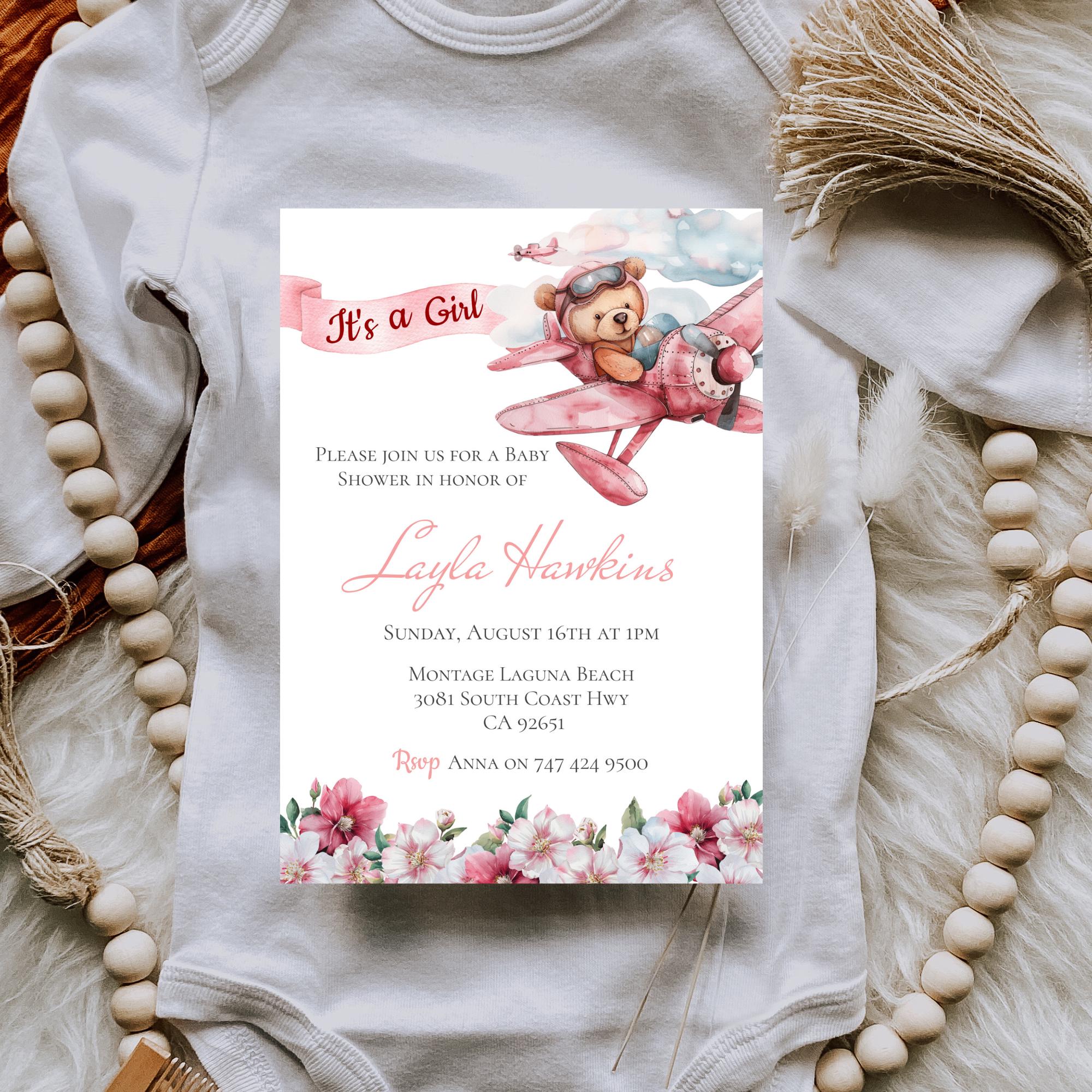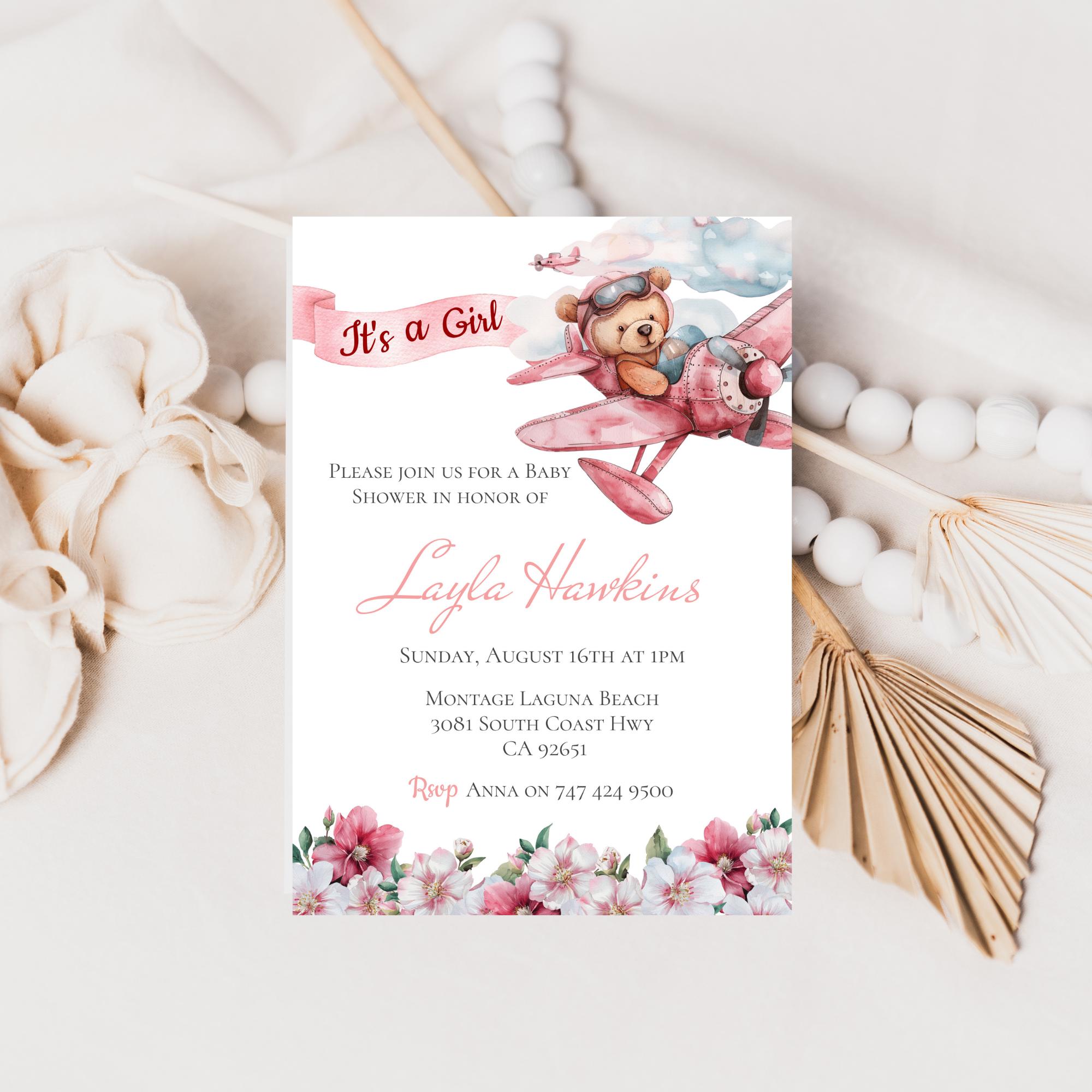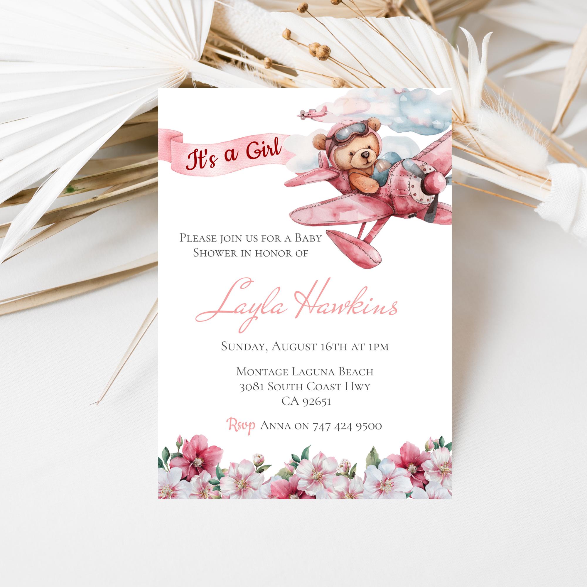 Baby Shower, It's A Girl Pink Teddy Printable Template. An instant download digital file for you to edit in your web browser with Templett straight after your purchase. Once personalized you are ready to print.