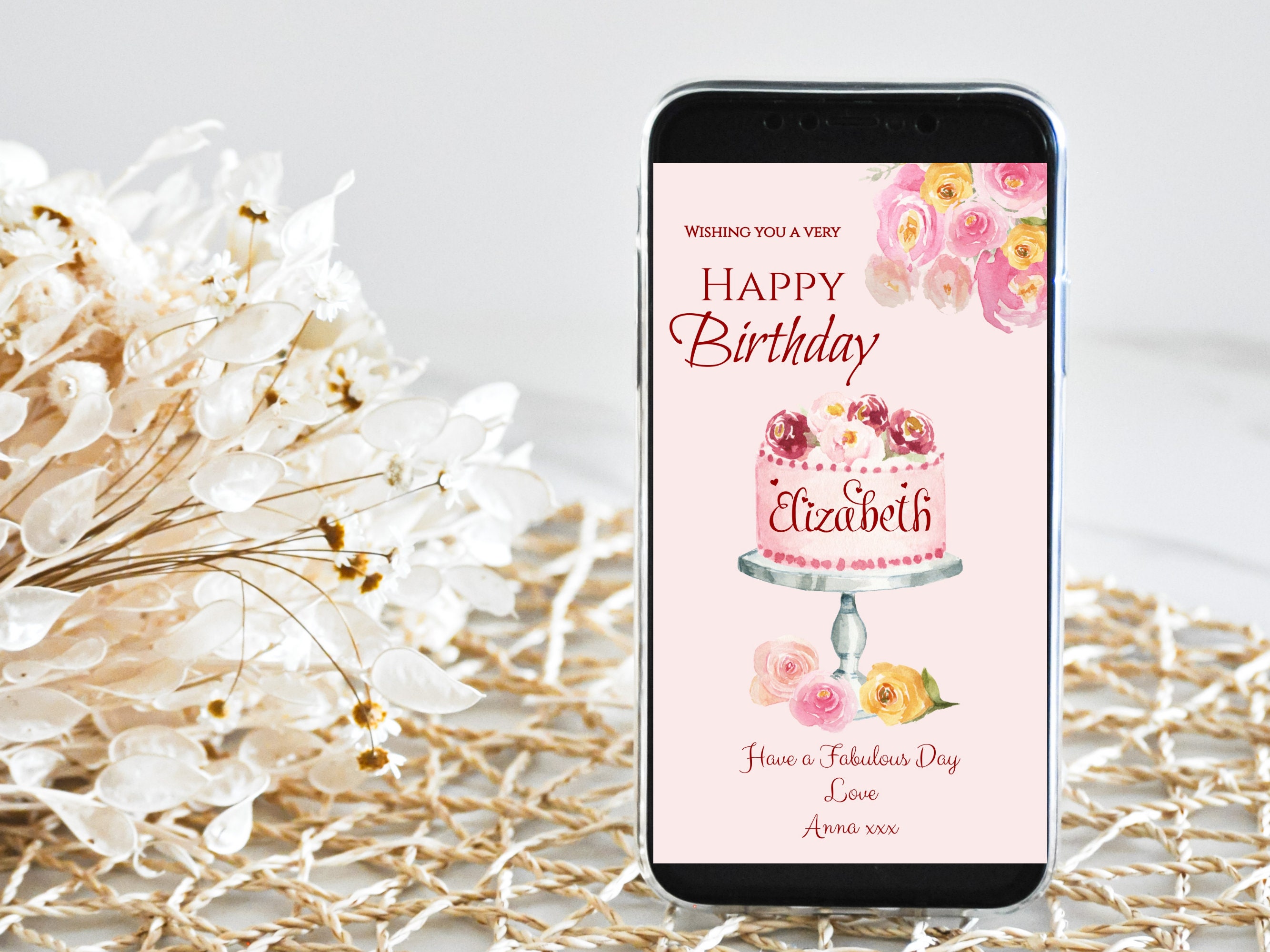 Happy Birthday E-Card for Her. An instant download digital file for you to edit in your web browser with Templett straight after your purchase. Once personalized you are ready to send.