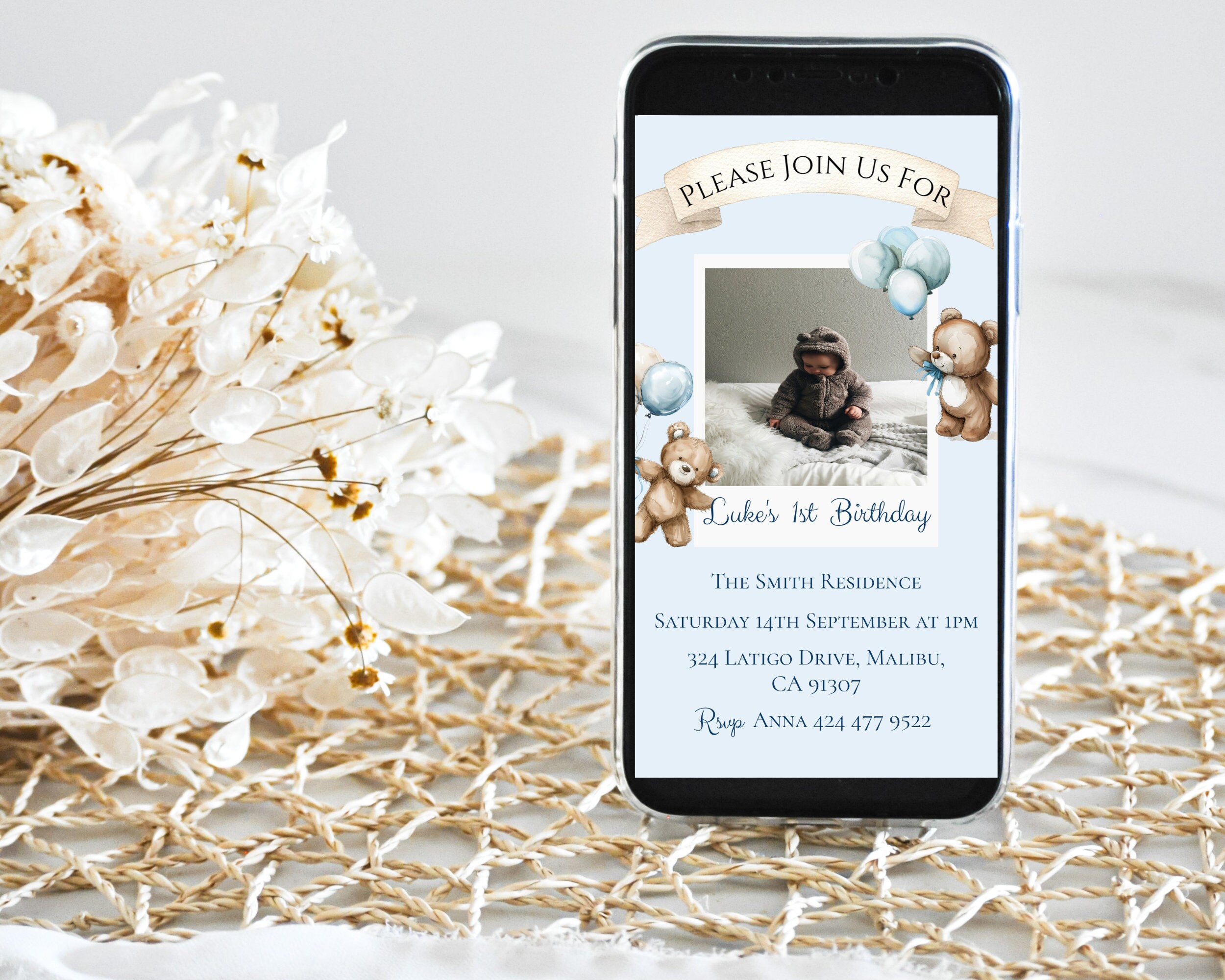 Baby Boy 1st Birthday Evite. An Instant download digital file for you to edit in your web browser with Templett straight after your purchase. Once personalized you are ready to send.
