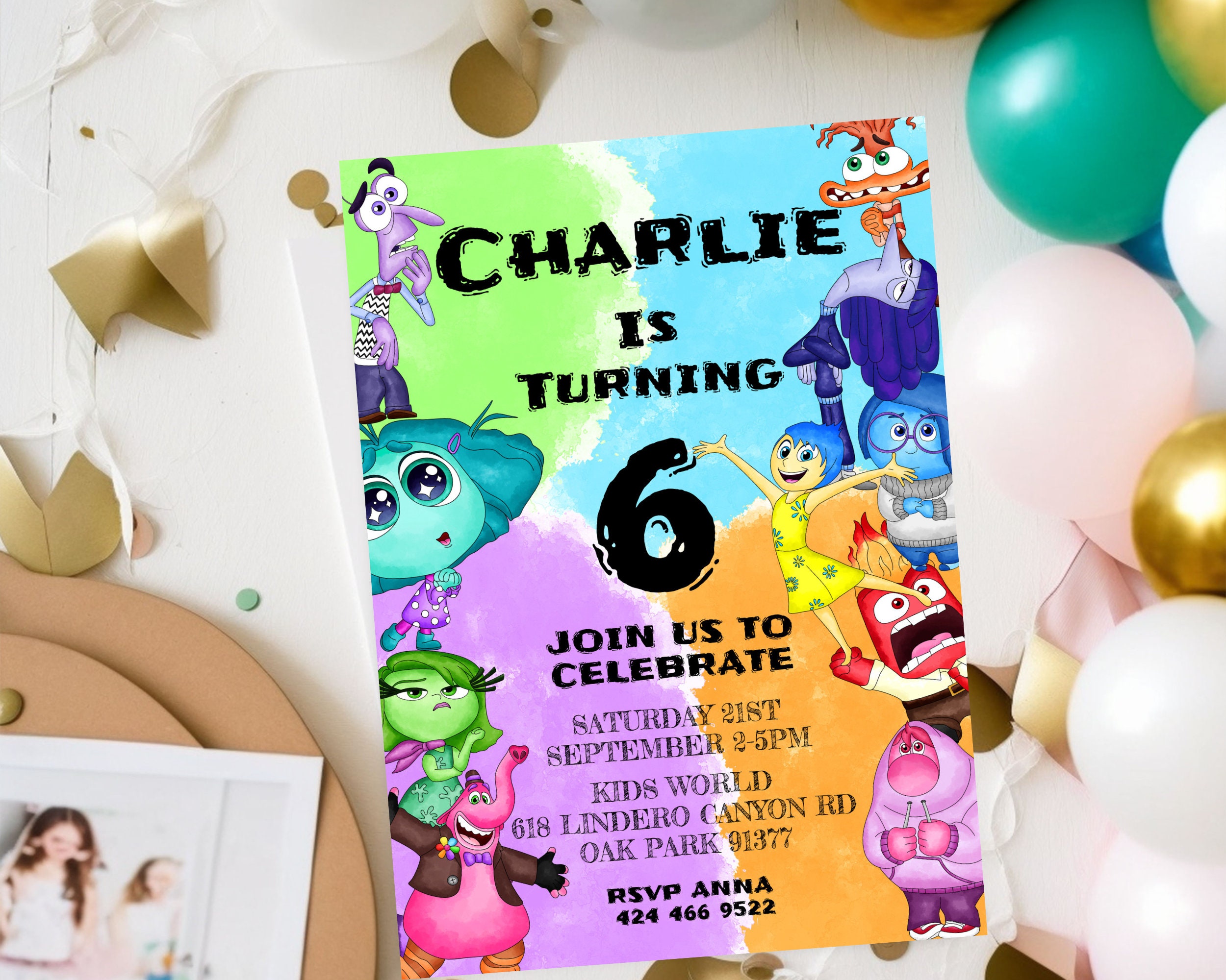 Inside Out Birthday Party Invitation. An Instant download digital file for you to edit in your web browser with Templett straight after your purchase. Once personalized you are ready to print.