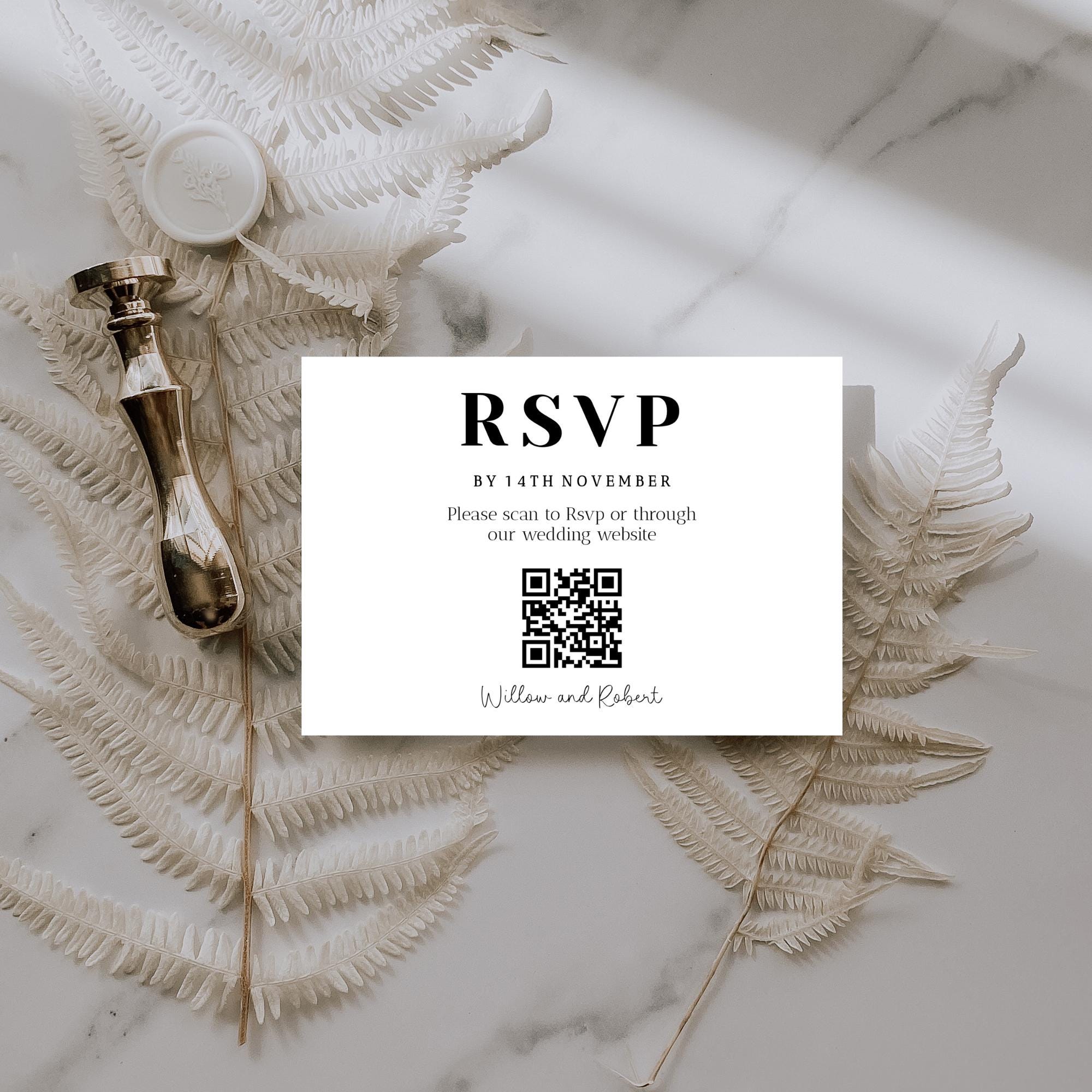 You will need to replace the QR Code by creating your own and uploading the new one that links to your wedding website. There are many websites that you can create a free custom QR code. If you don't want to use a QR Code you can easily delete this from the invitation.