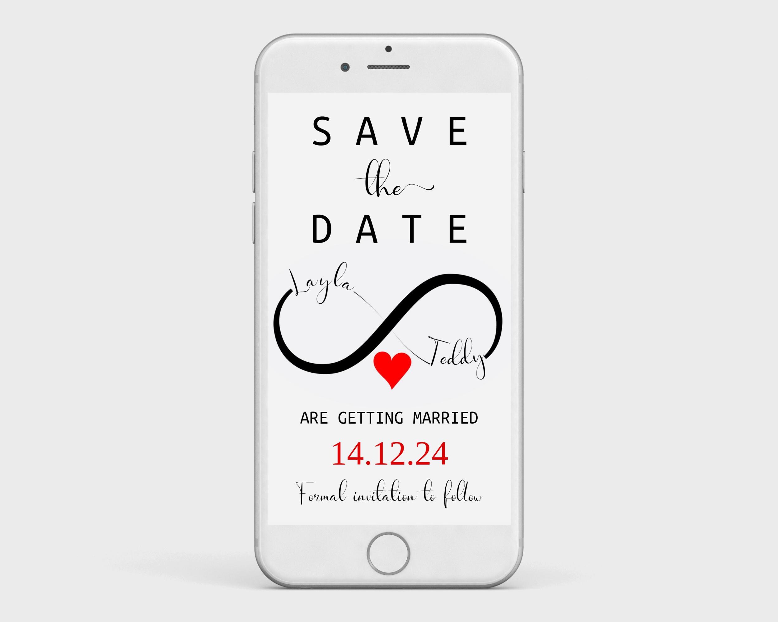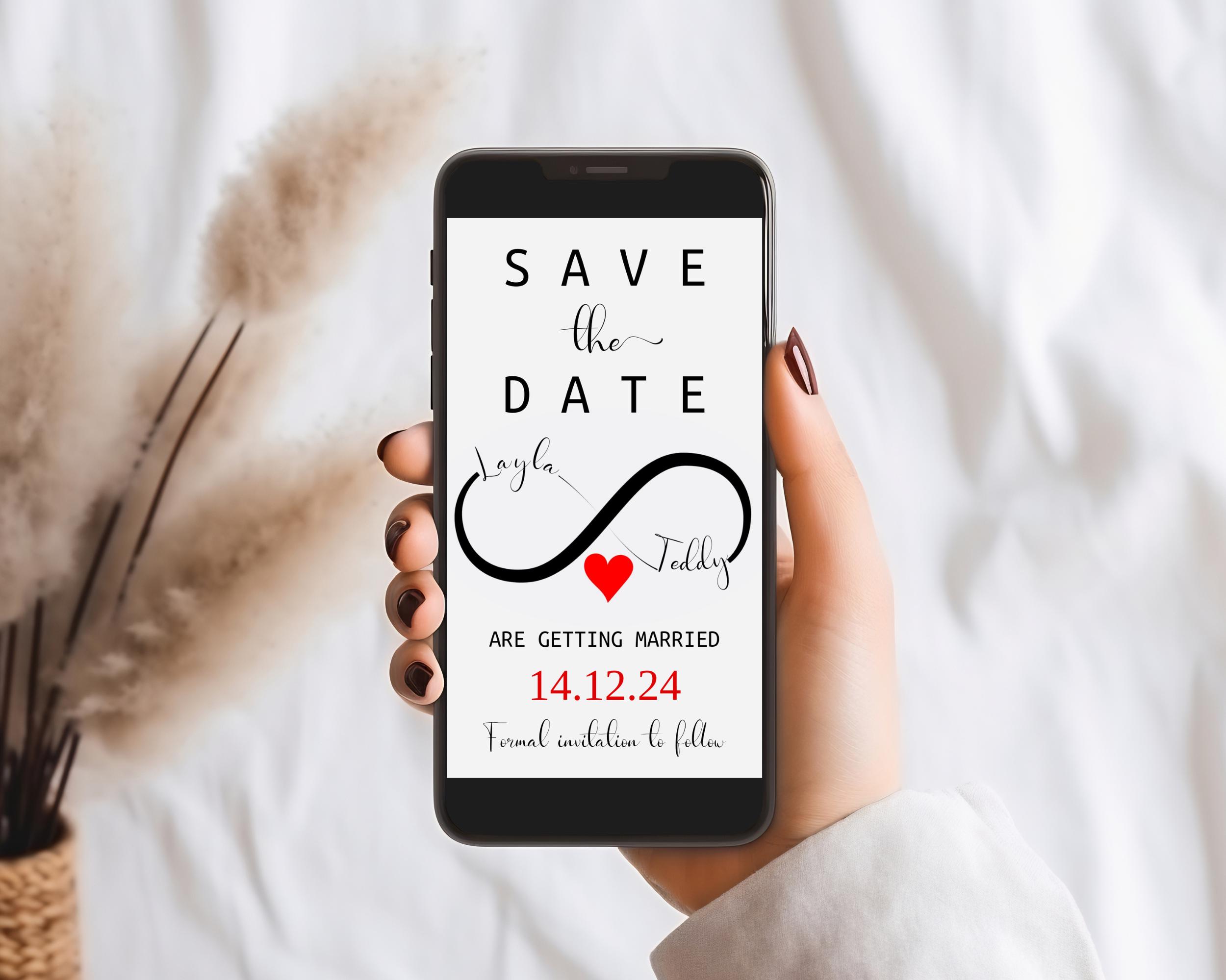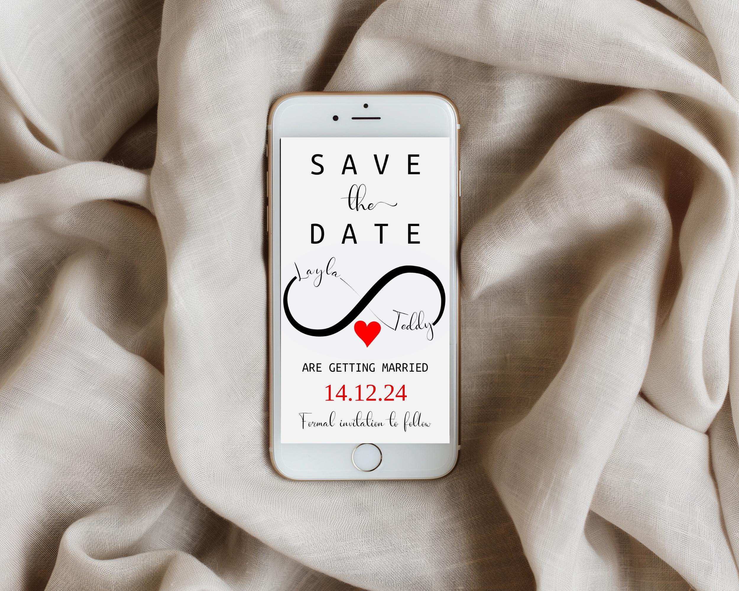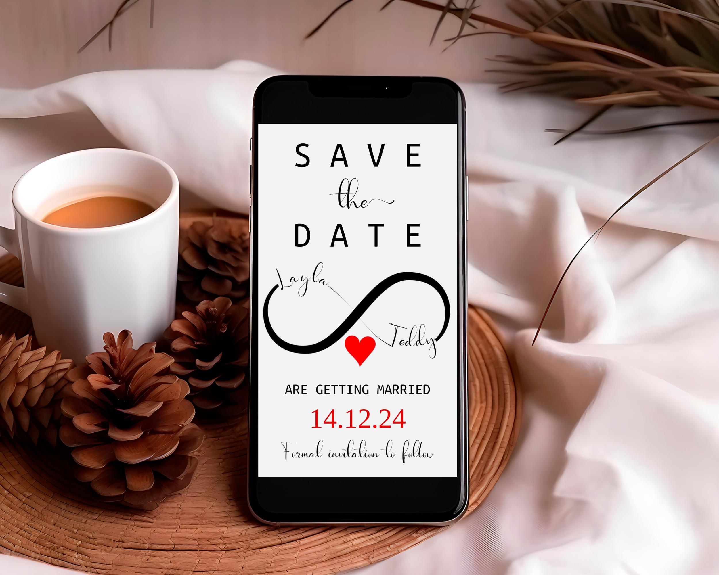 Modern Save The Date Infinity Evite. An Instant download digital file for you to edit in your web browser with Templett straight after your purchase. Once personalized you are ready to print.
