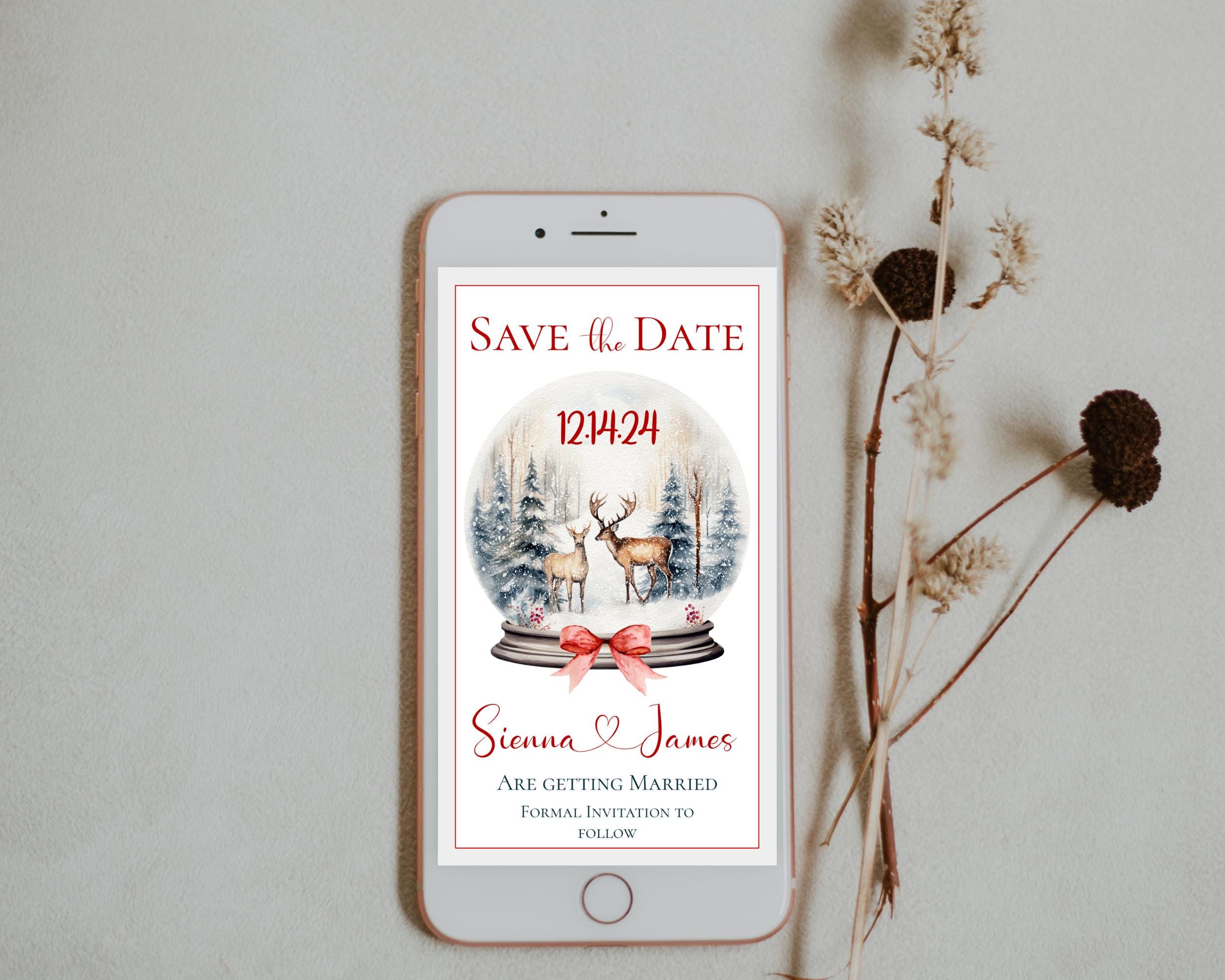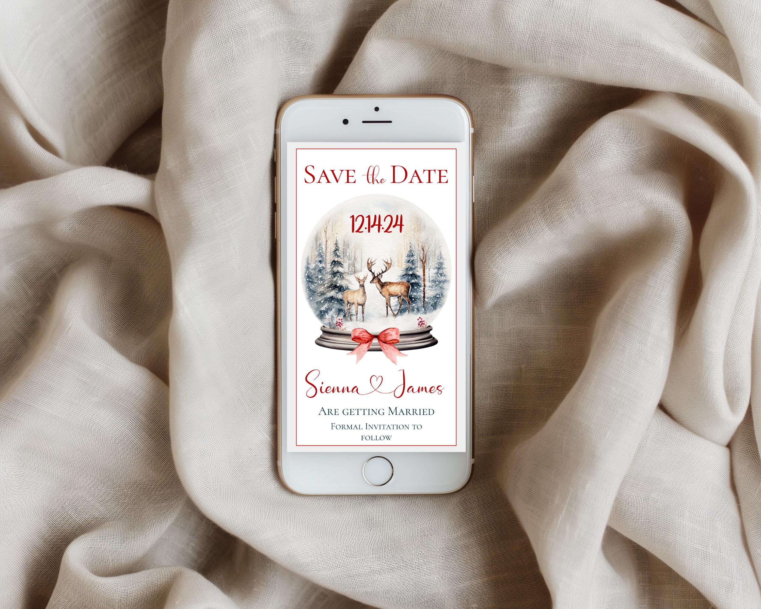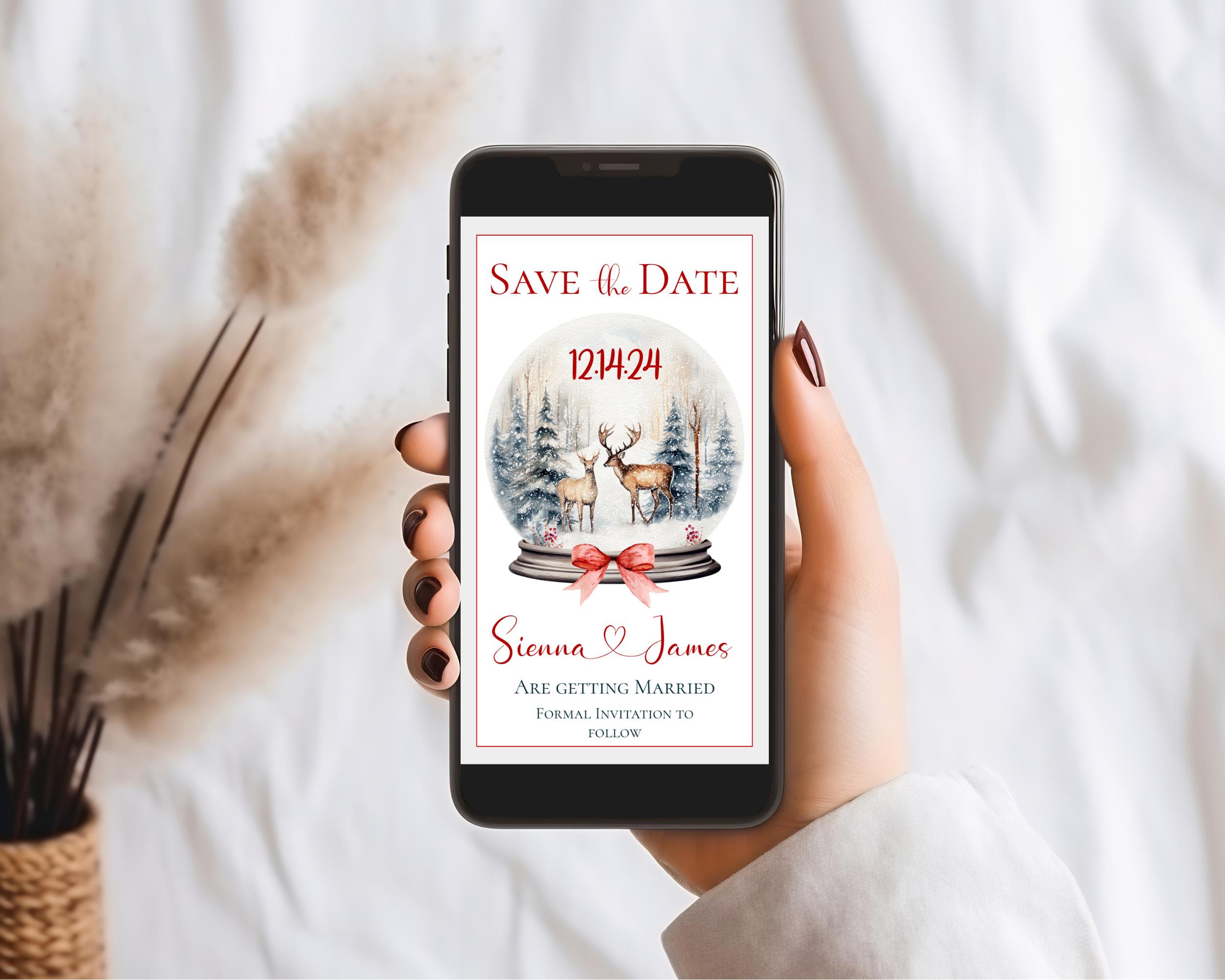 Christmas Save The Date wedding Template. An Instant download digital file for you to edit in your web browser with Templett straight after your purchase. Once personalized you are ready to send.