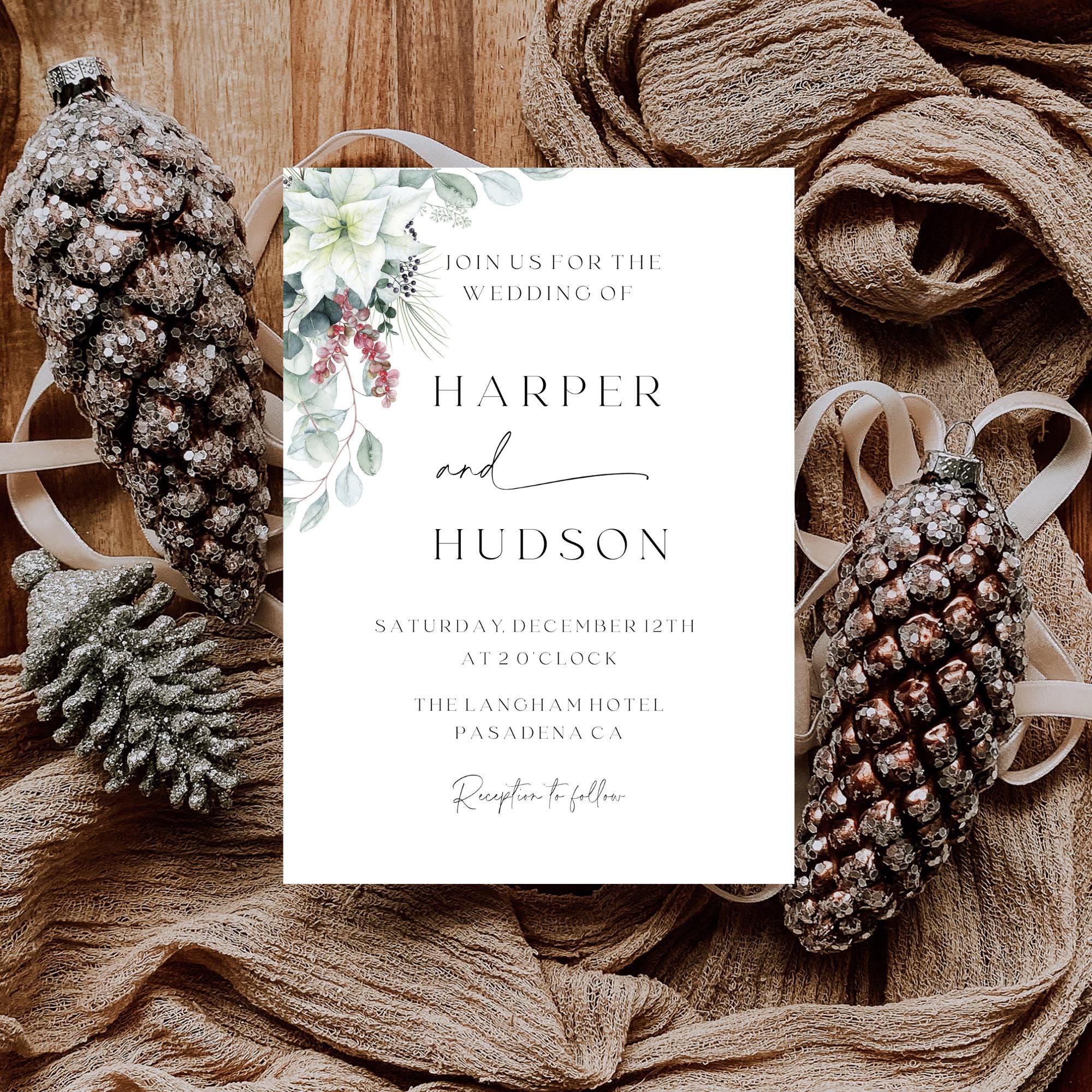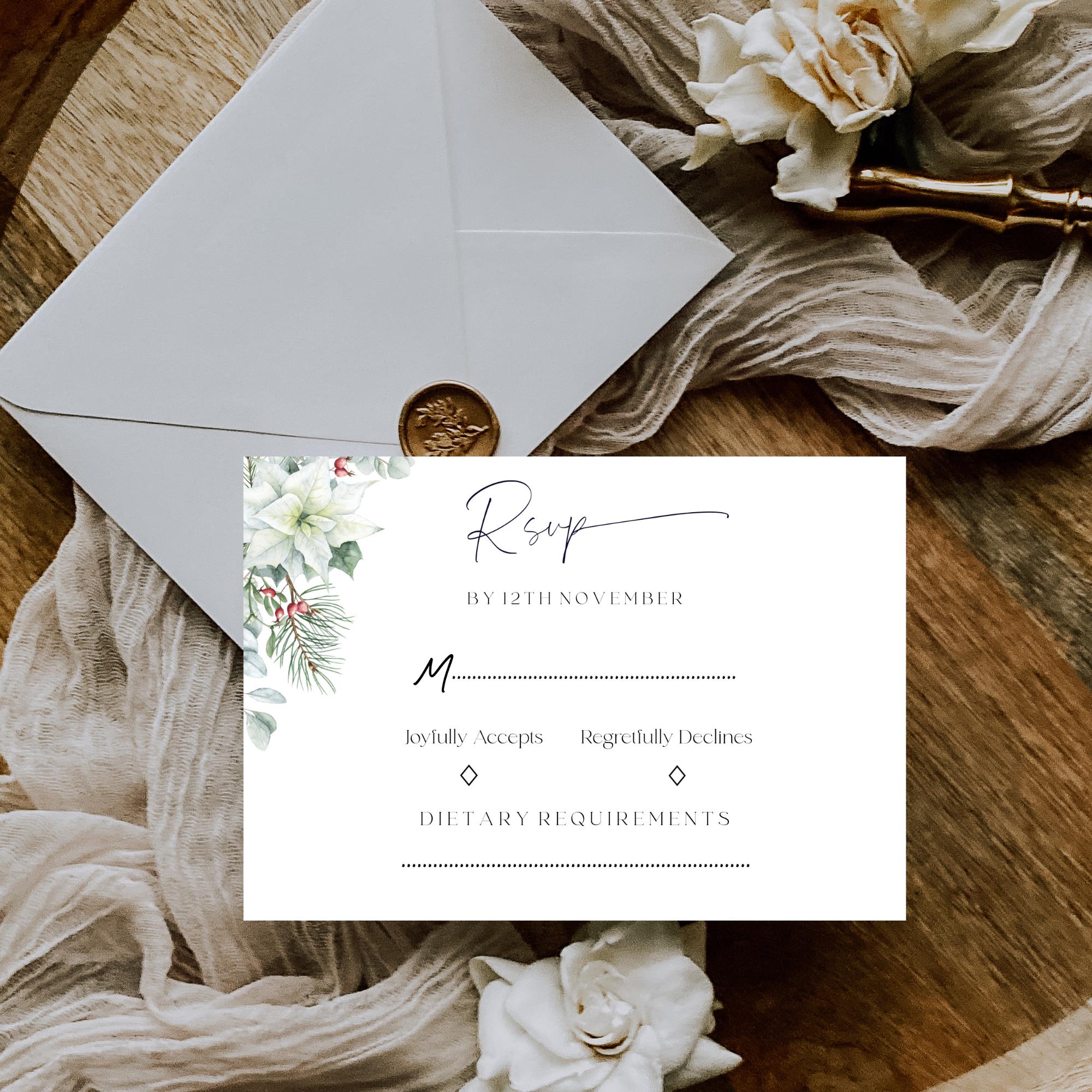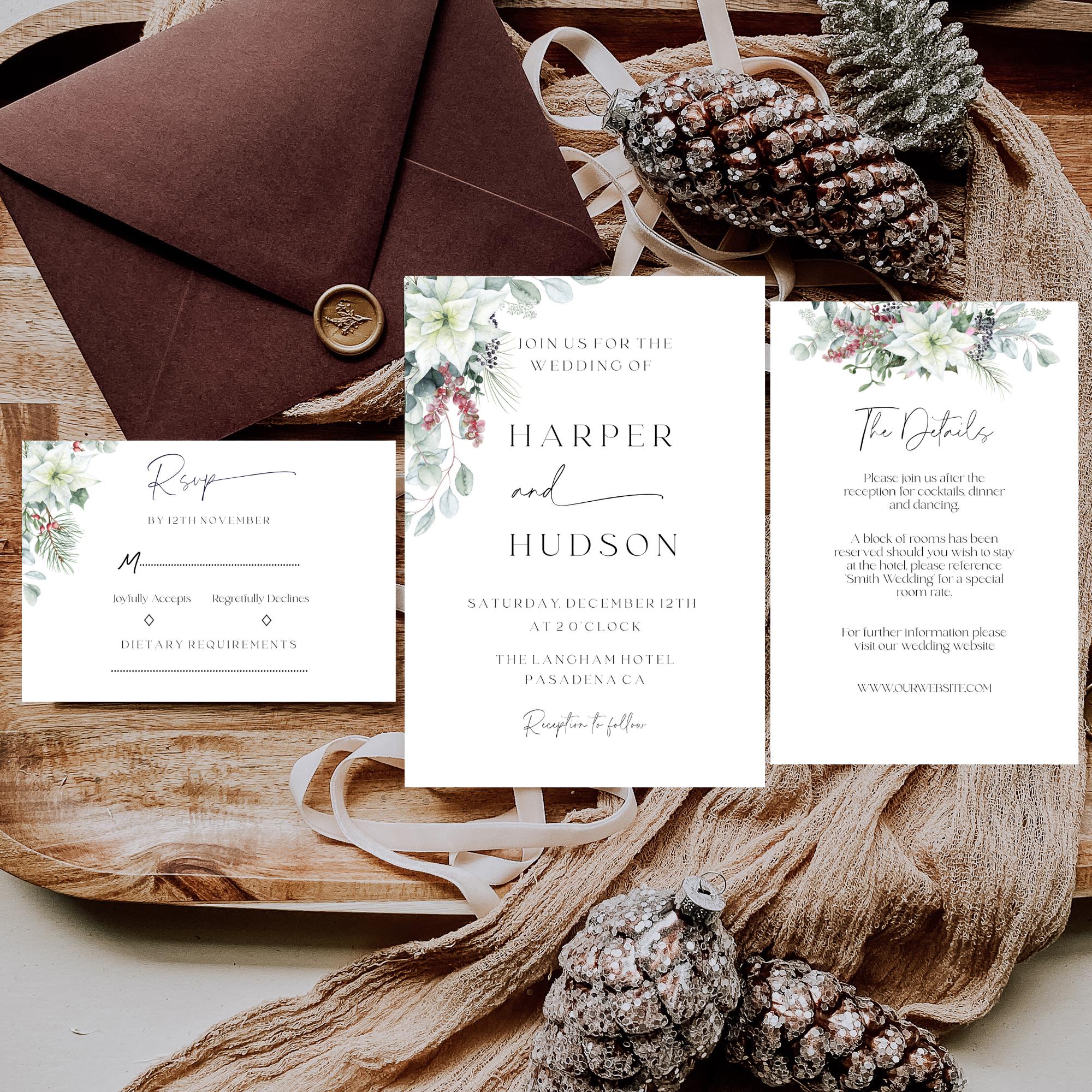 Xmas Wedding Invitation Template Set. An Instant download digital file for you to edit in your web browser with Templett straight after your purchase. Once personalized you are ready to print.