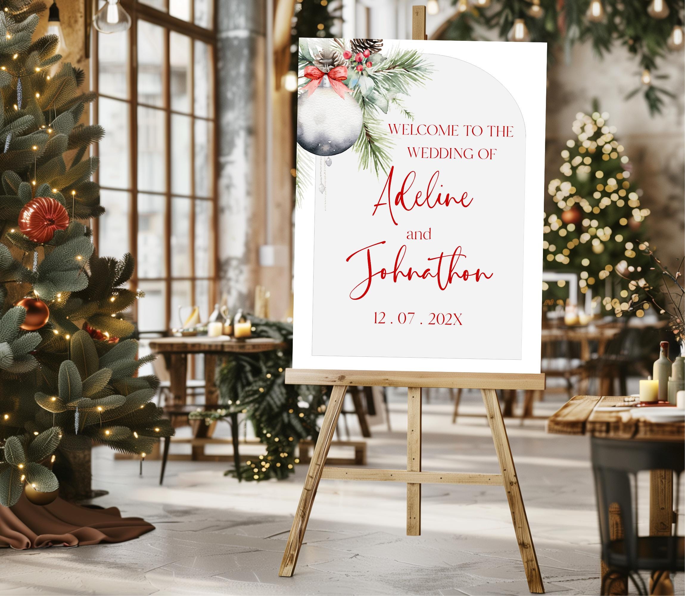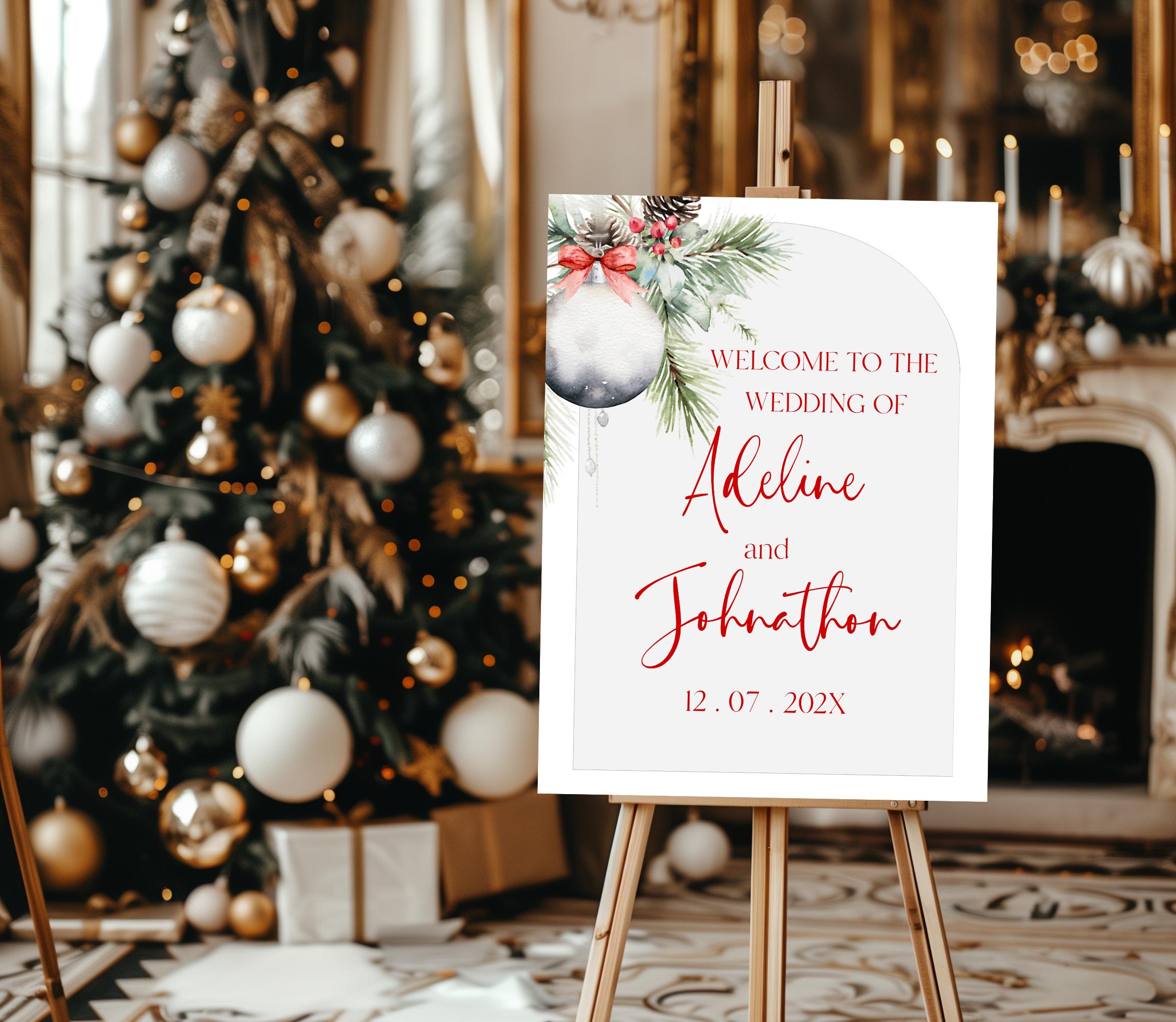 Christmas Wedding Welcome Sign Template. An Instant download digital file for you to edit in your web browser with Templett straight after your purchase. Once personalized you are ready to print.