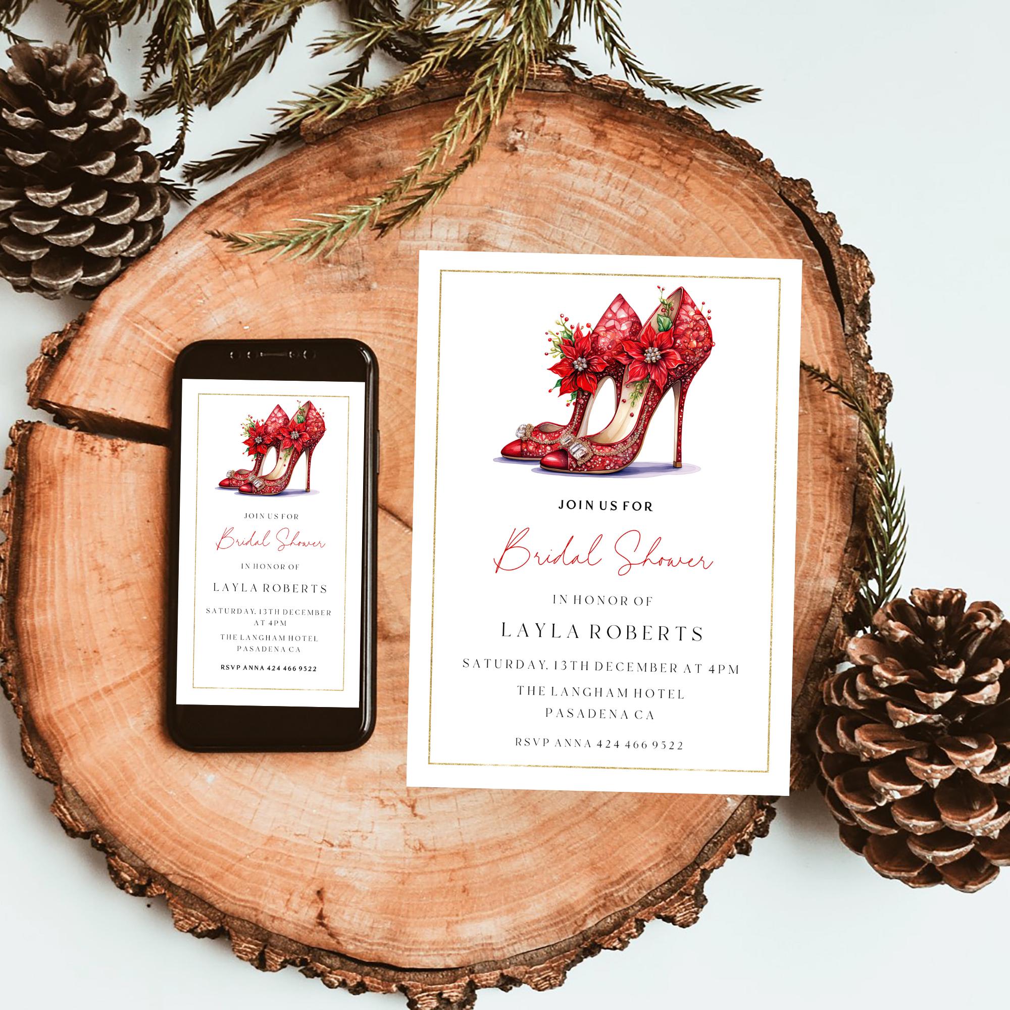 Christmas Bridal Shower Invitation Template. An Instant download digital file for you to edit in your web browser with Templett straight after your purchase. Once personalized you are ready to print.