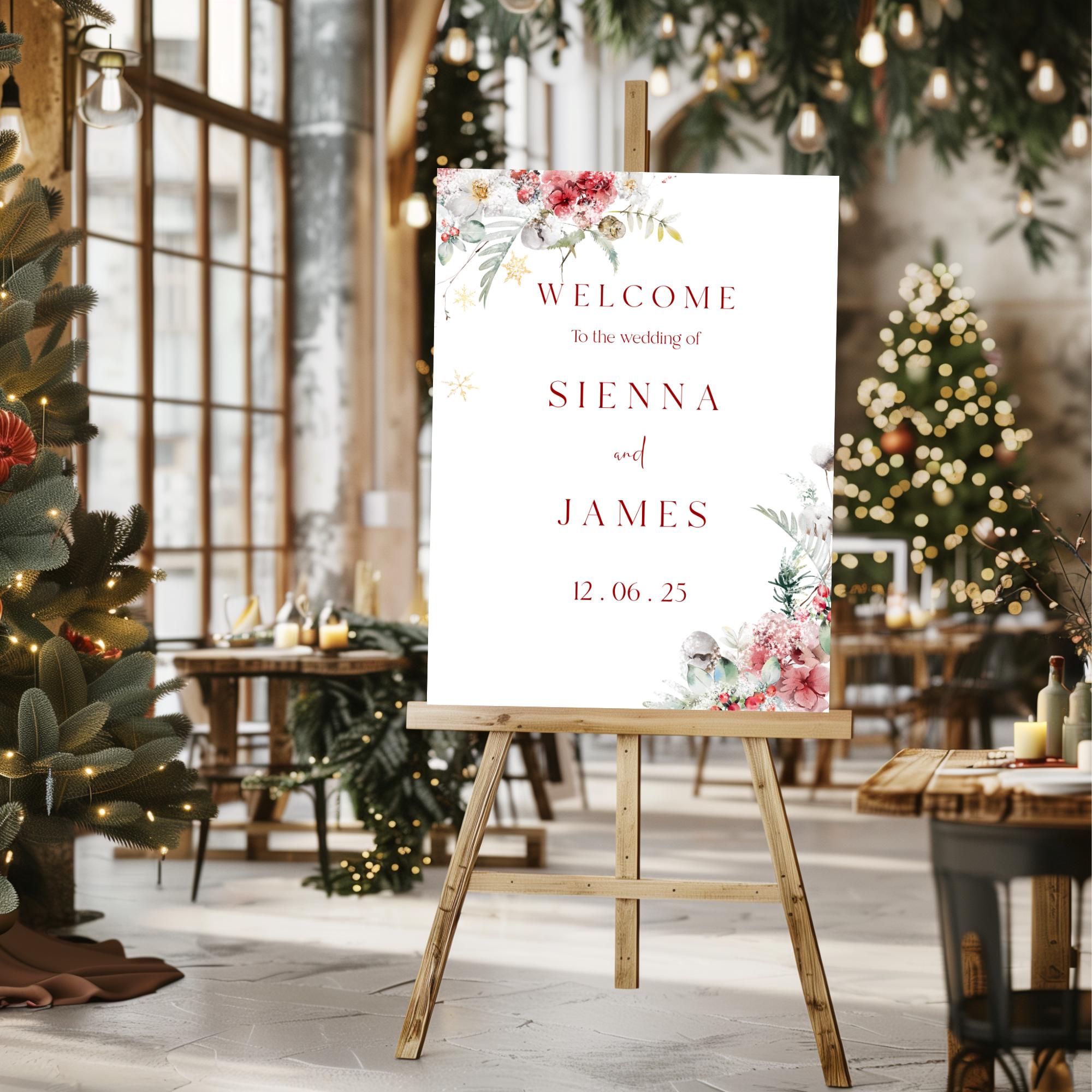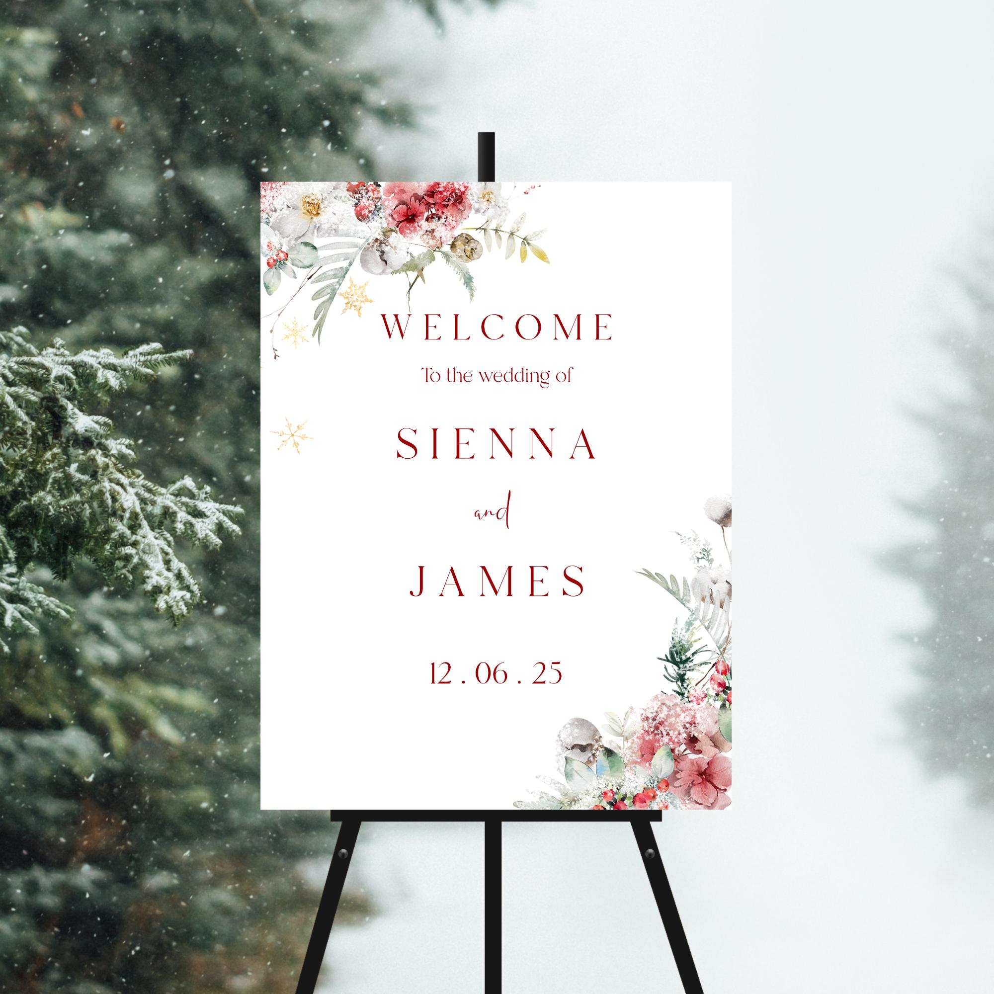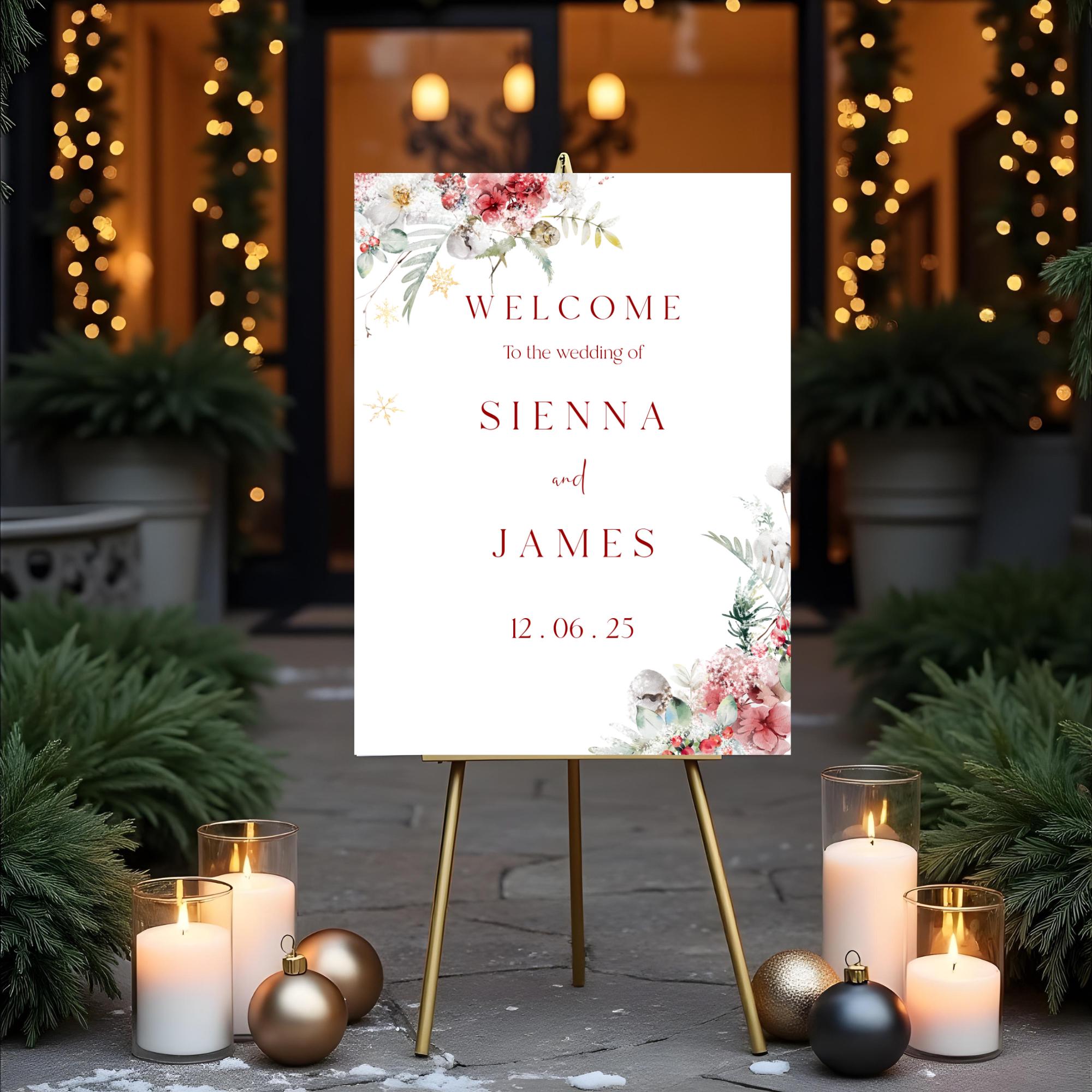 Elegant Xmas Foliage Wedding Welcome Sign Template. An Instant download digital file for you to edit in your web browser with Templett straight after your purchase. Once personalized you are ready to print.