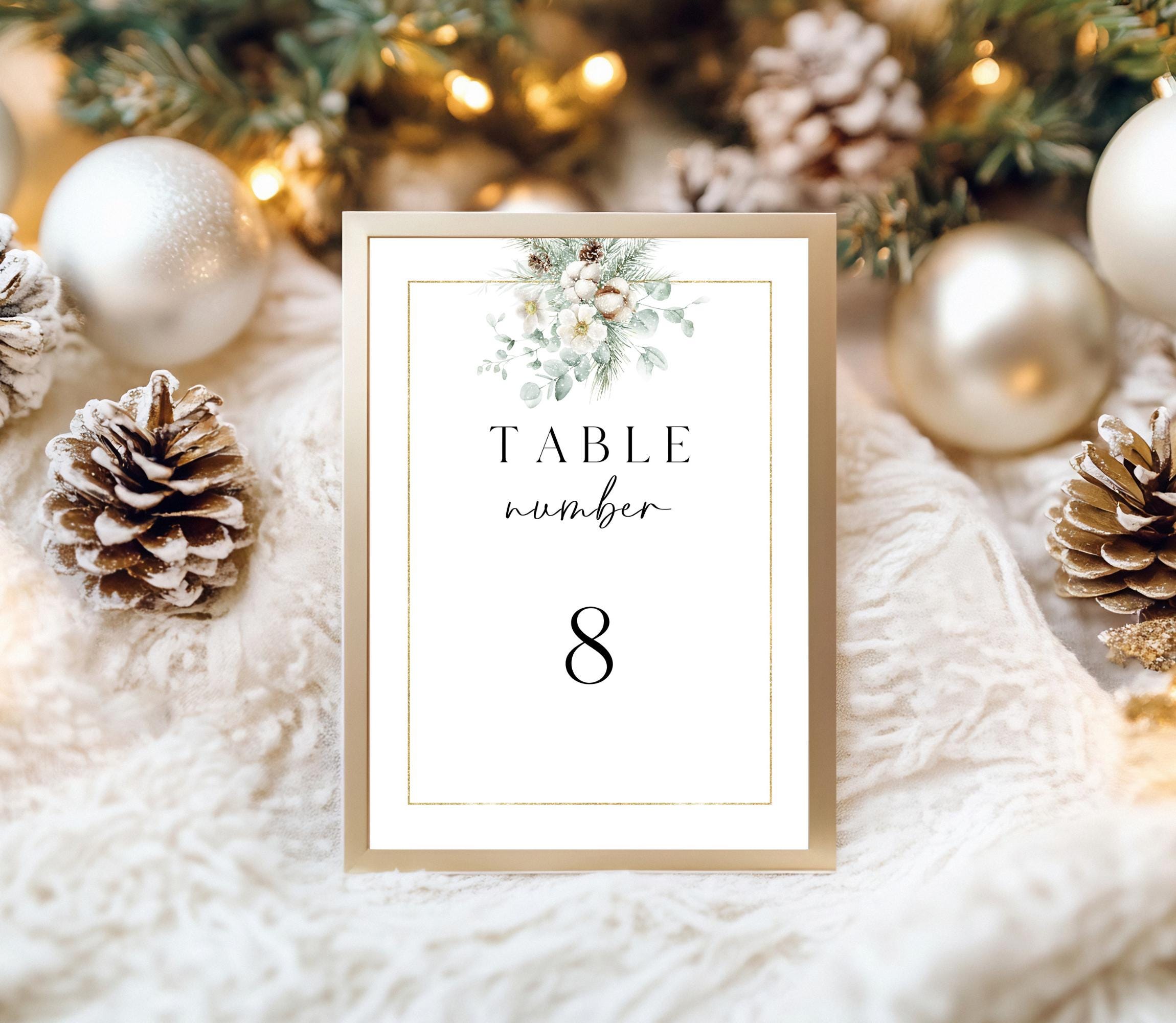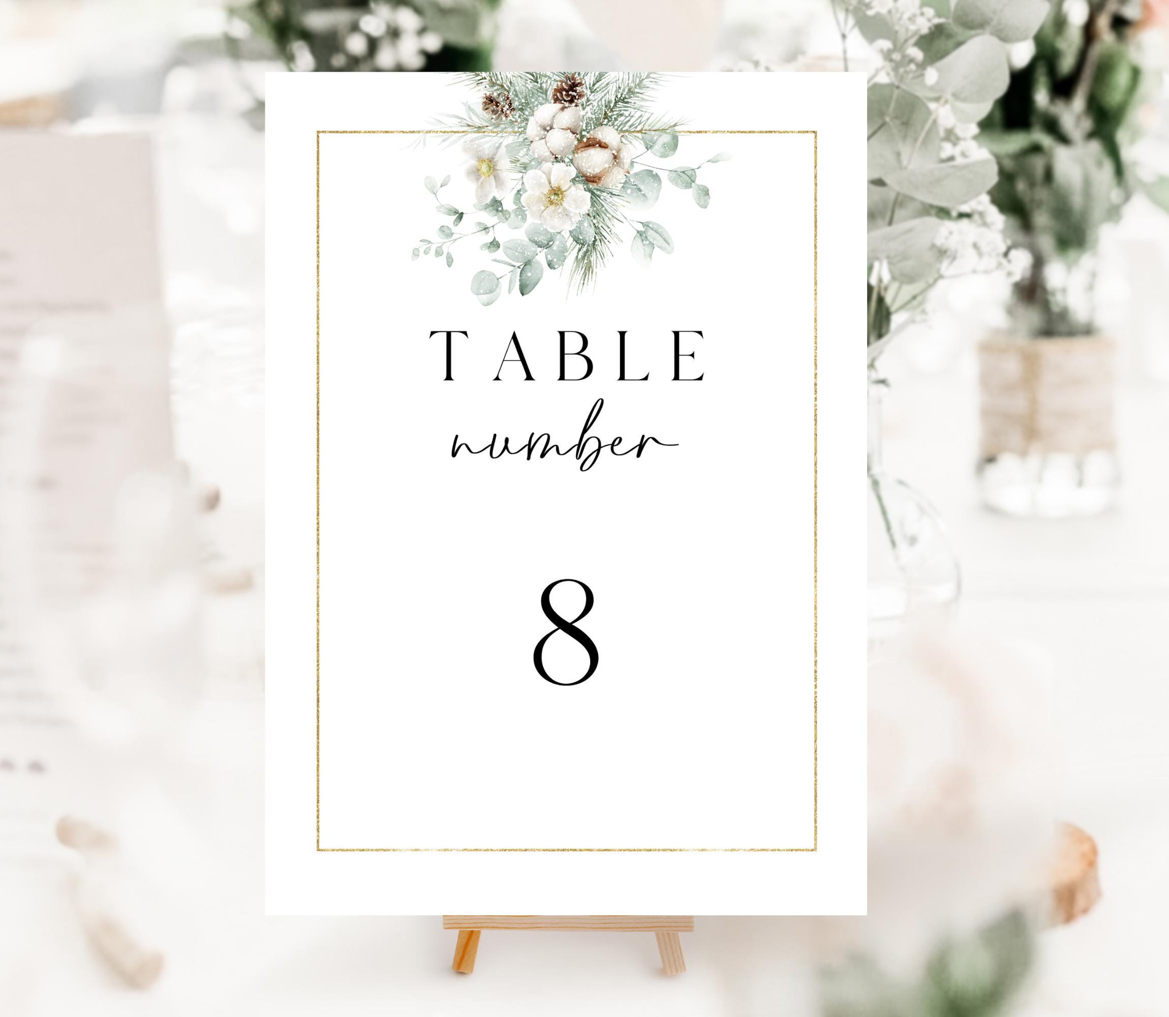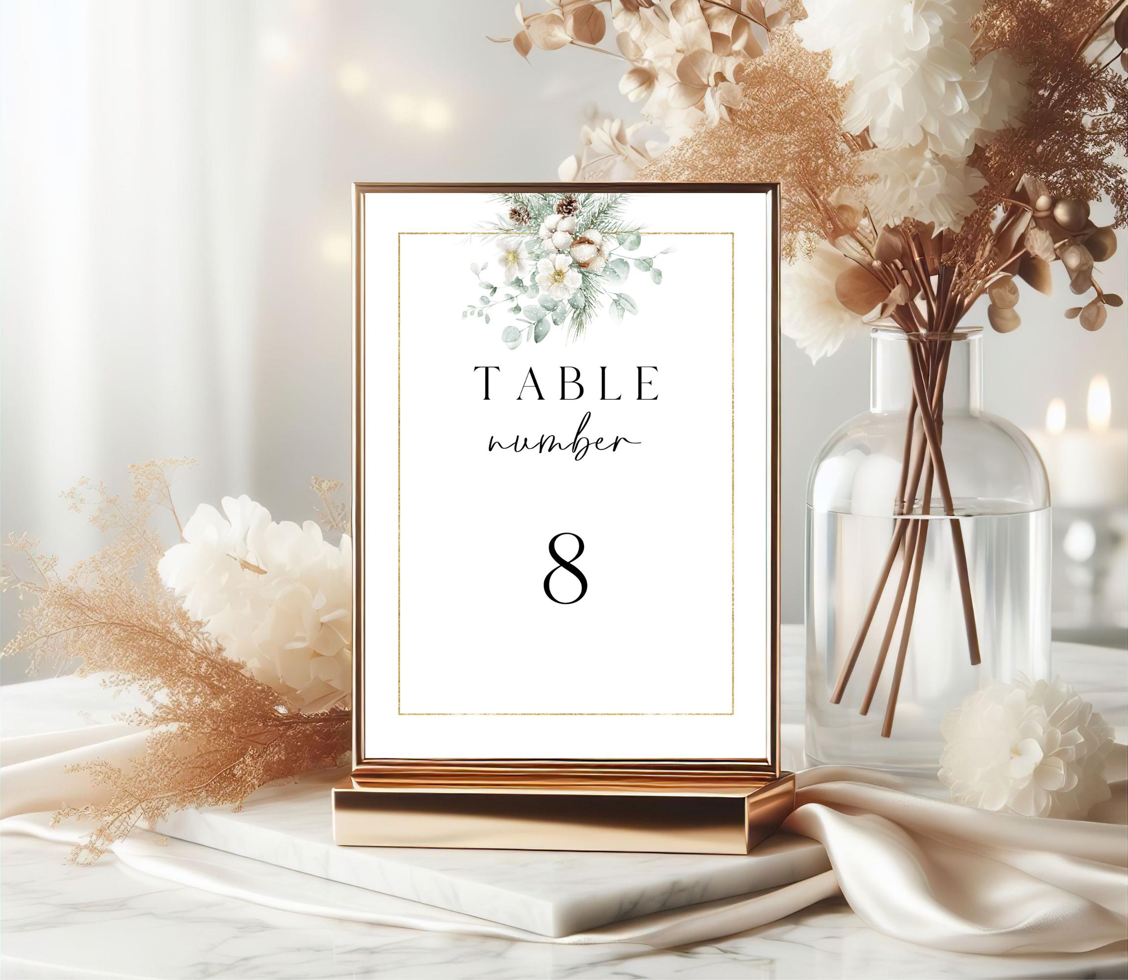 Elegant Winter Foliage Wedding Table Number Template. An Instant download digital file for you to edit in your web browser with Templett straight after your purchase. Once personalized you are ready to print.