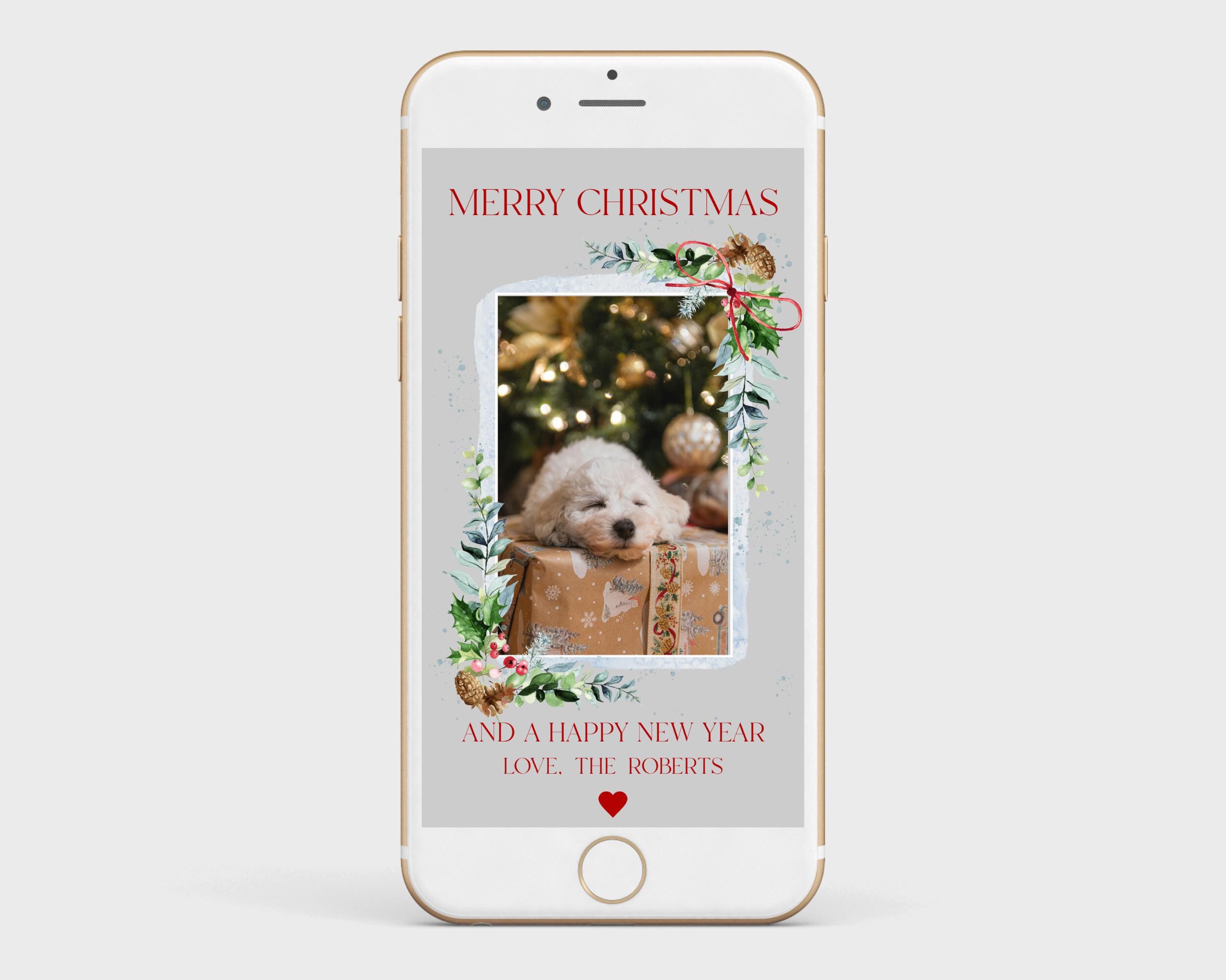 Christmas E-card personalized with photo Template. An Instant download digital file for you to edit in your web browser with Templett straight after your purchase. Once personalized you are ready to print.