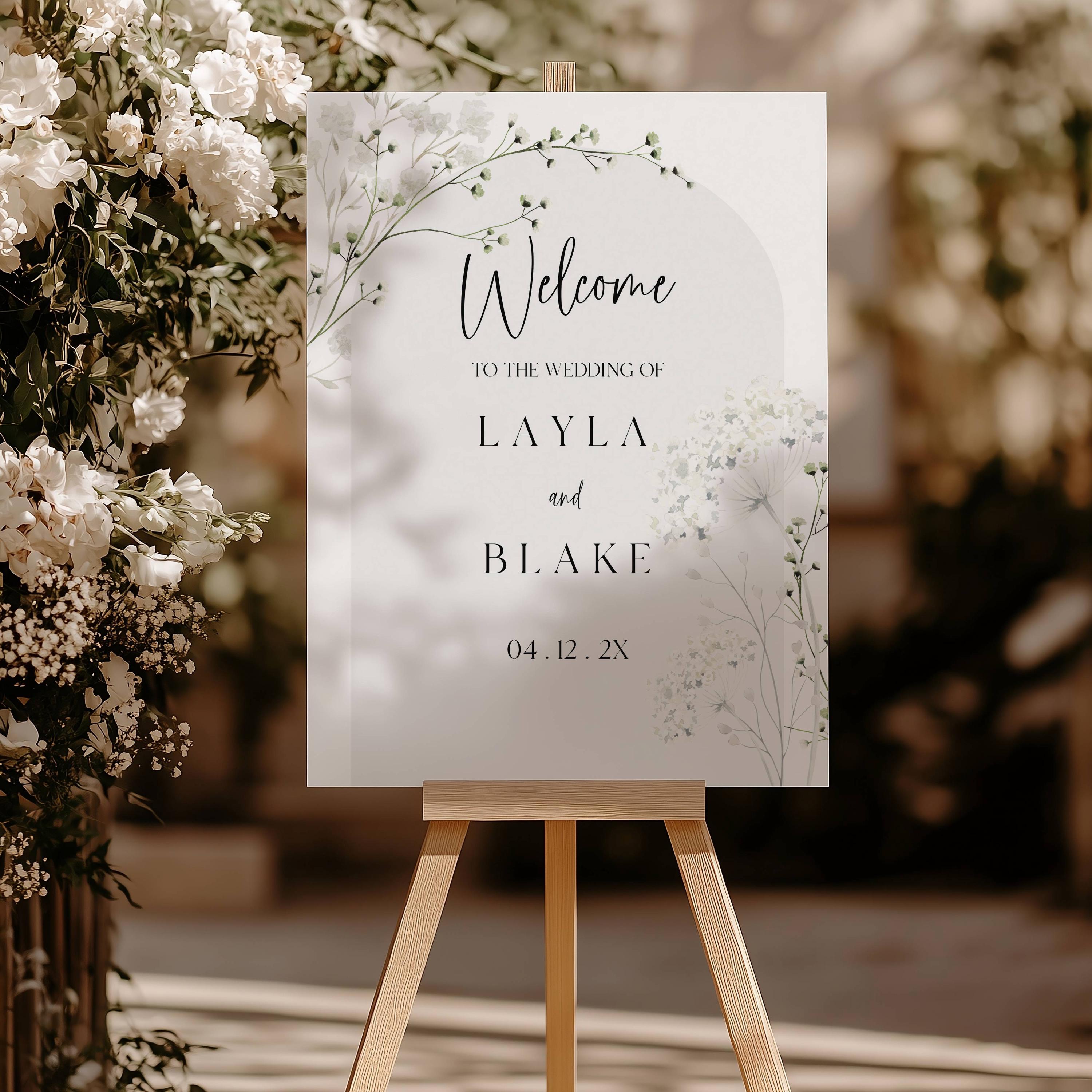 Elegant Neutral Wildflower Wedding Welcome Sign Template. An Instant download digital file for you to edit in your web browser with Templett straight after your purchase. Once personalized you are ready to print.
