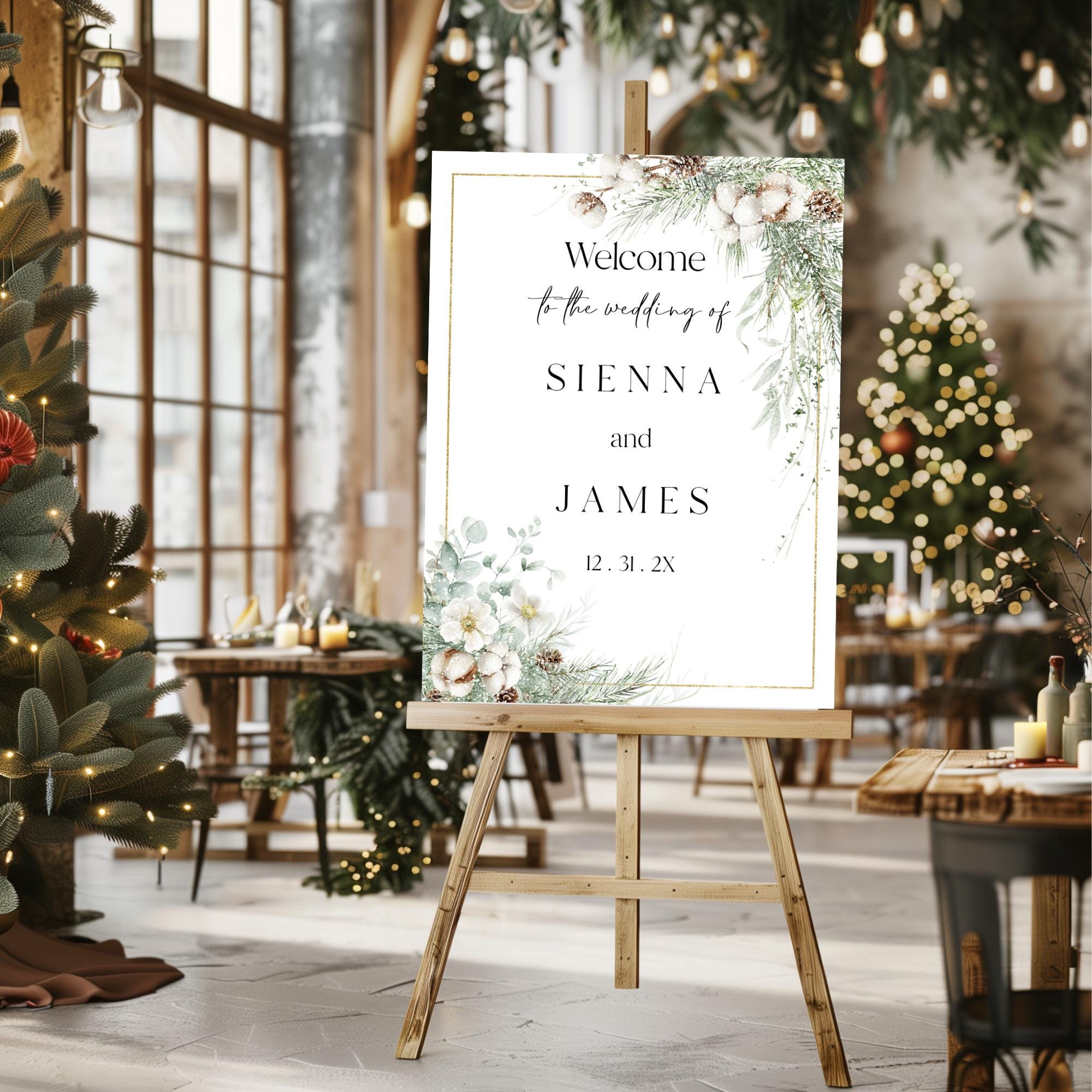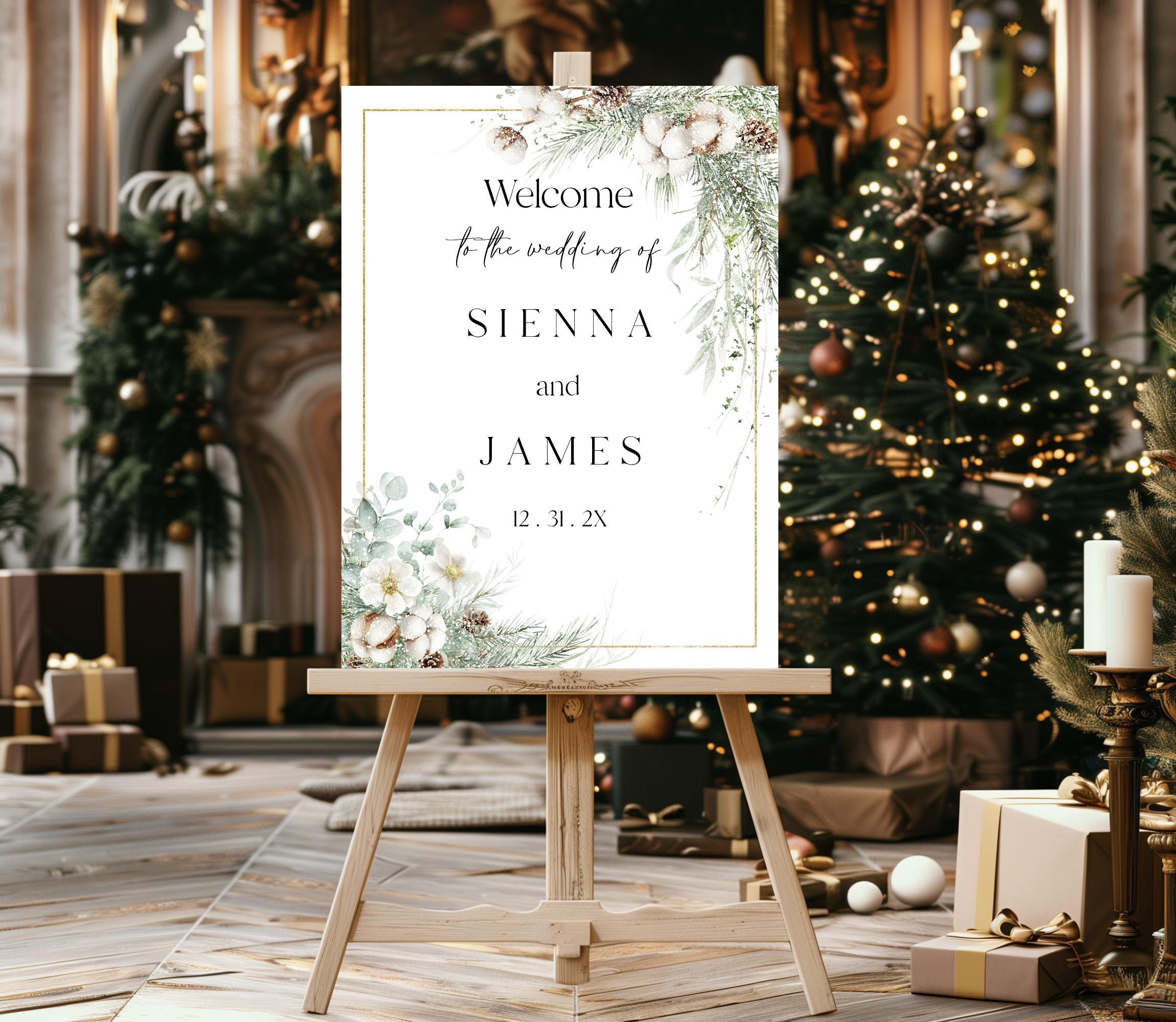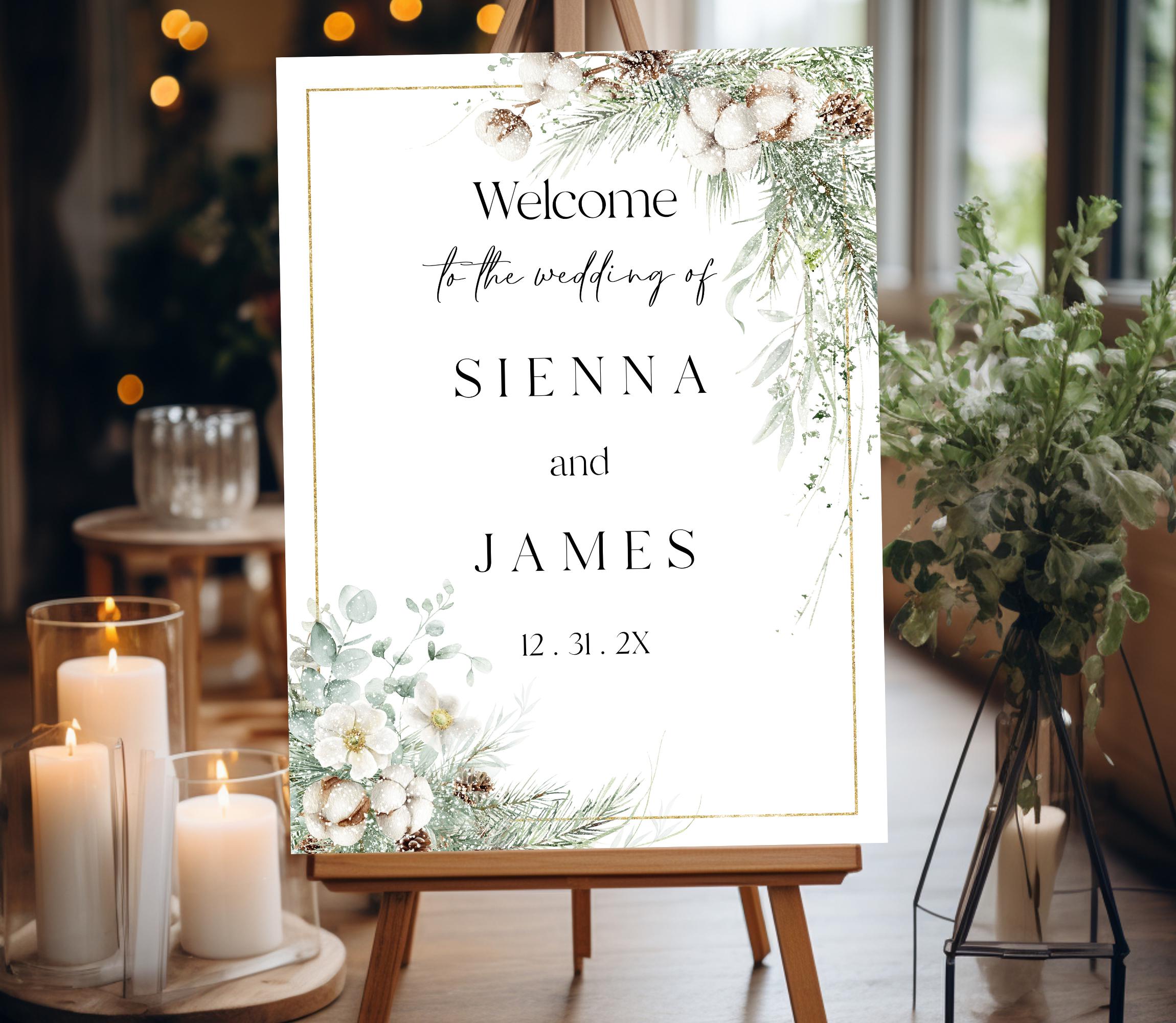 Elegant Winter Foliage Wedding Welcome Sign Template. An Instant download digital file for you to edit in your web browser with Templett straight after your purchase. Once personalized you are ready to print.