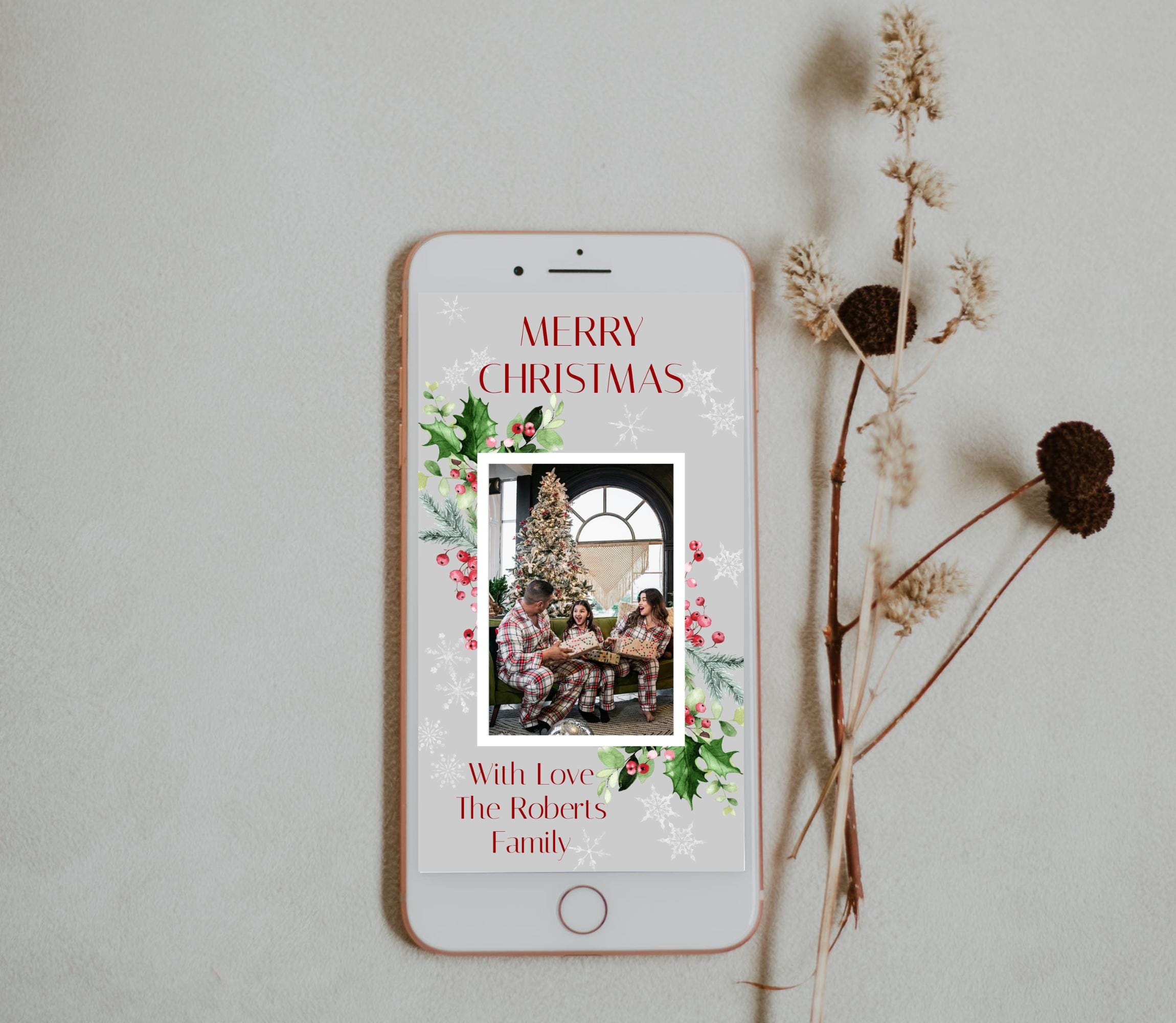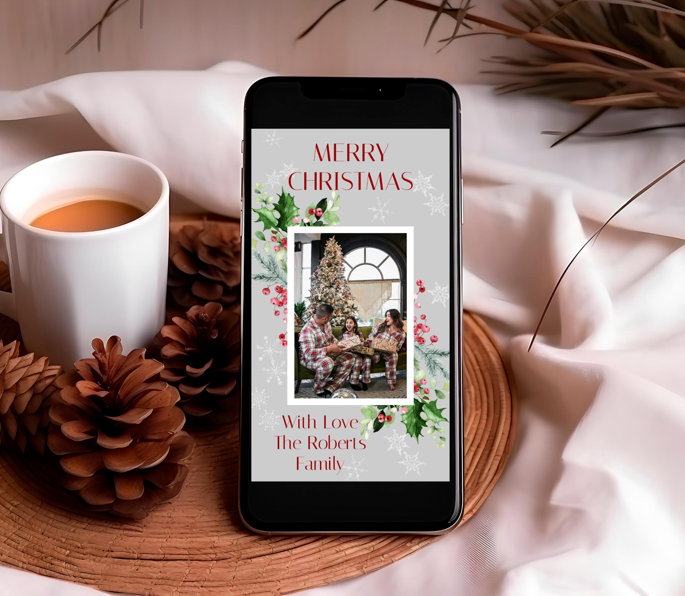 Personalized Photo Merry Christmas E-Card. An Instant download digital file for you to edit in your web browser with Templett straight after your purchase. Once personalized you are ready to send.