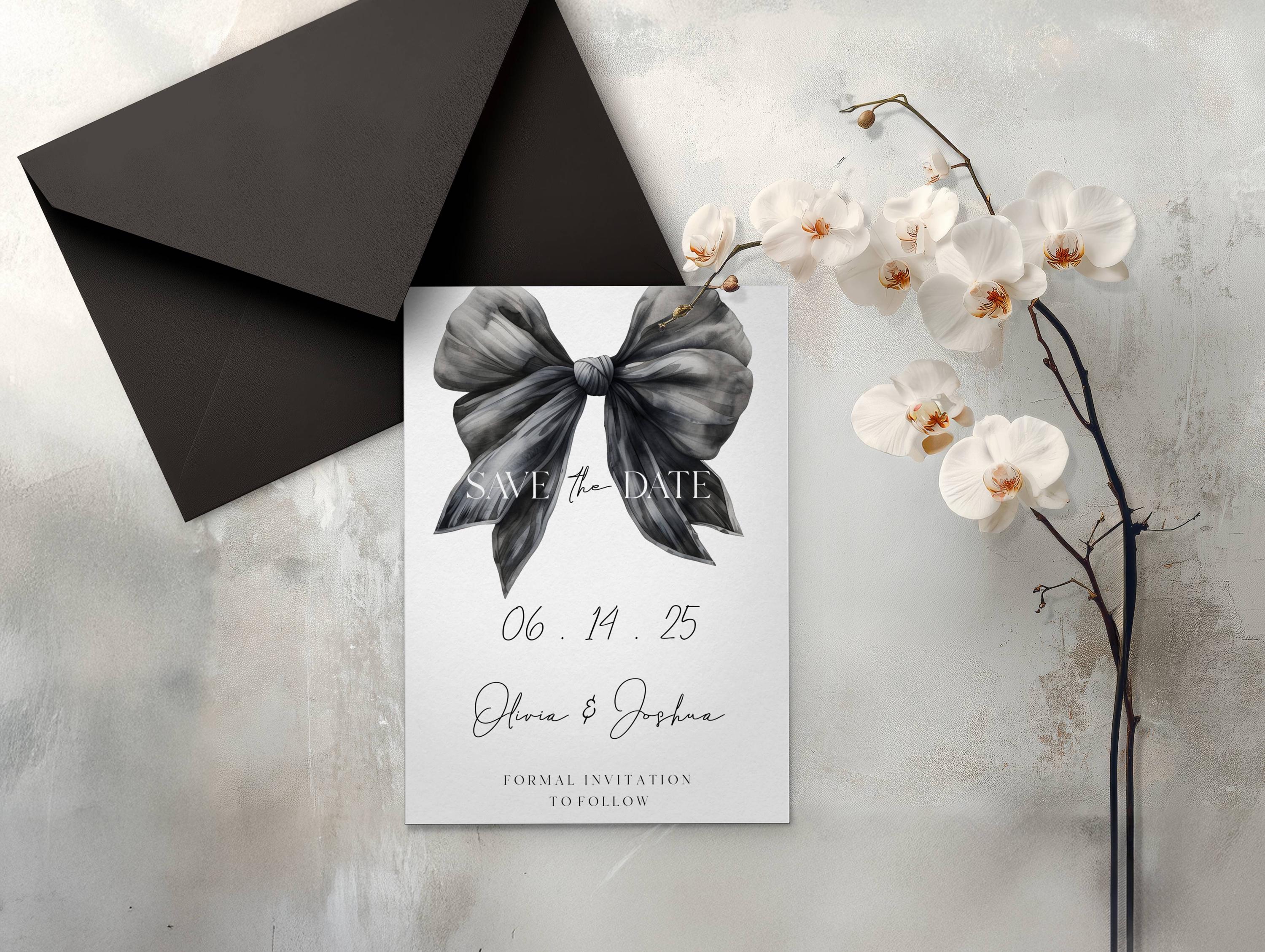 Modern Black and white Save The Date Wedding Invitation Template. An Instant download digital file for you to edit in your web browser with Templett straight after your purchase. Once personalized you are ready to print.