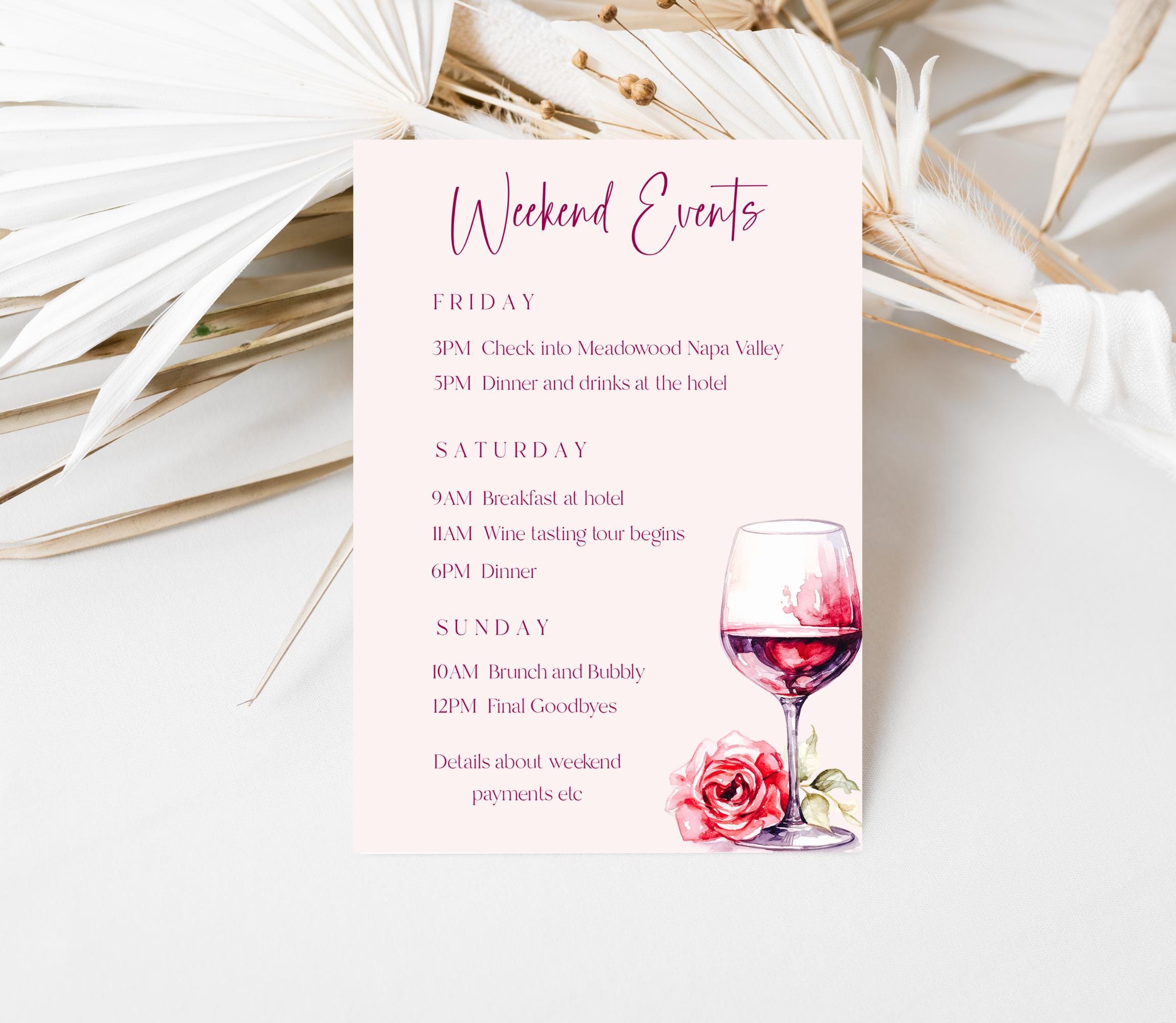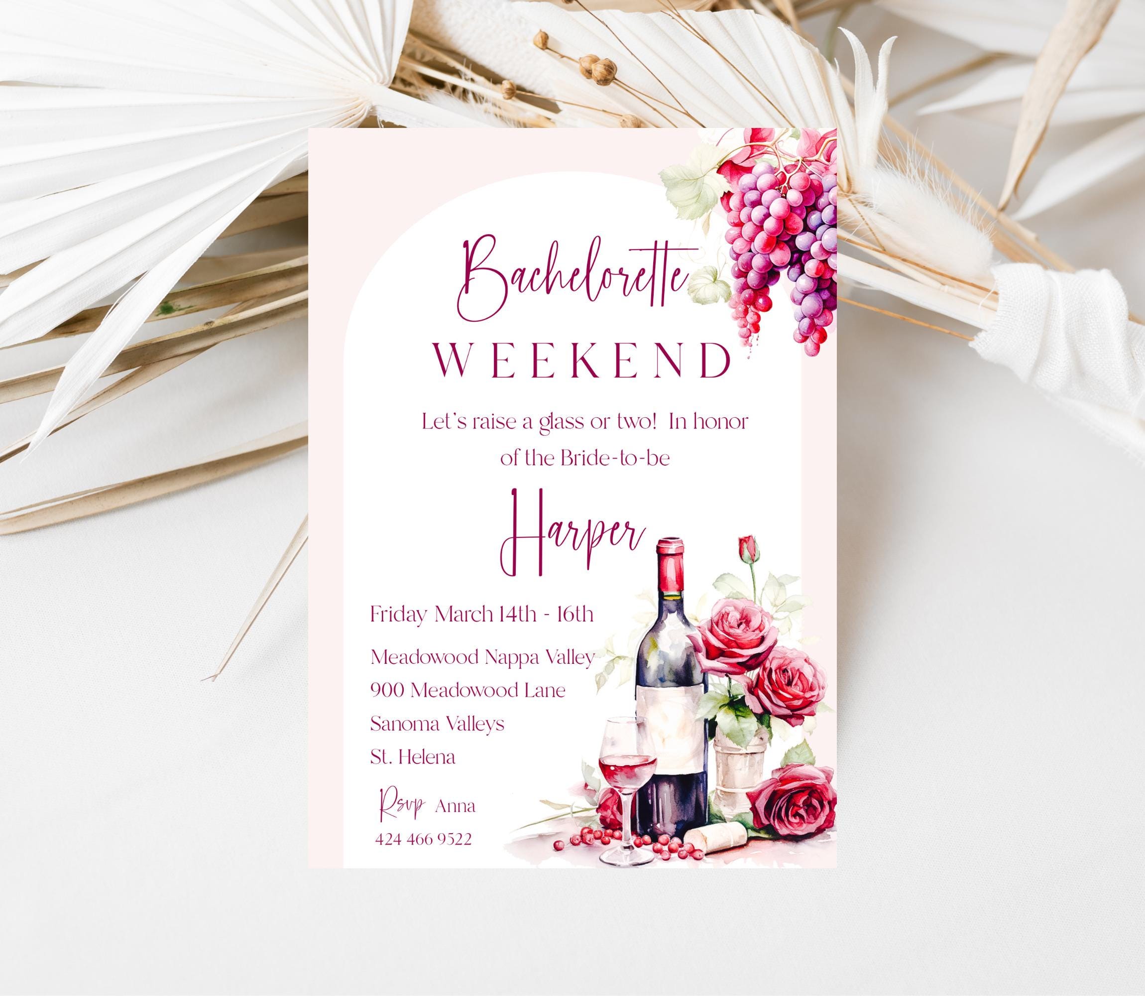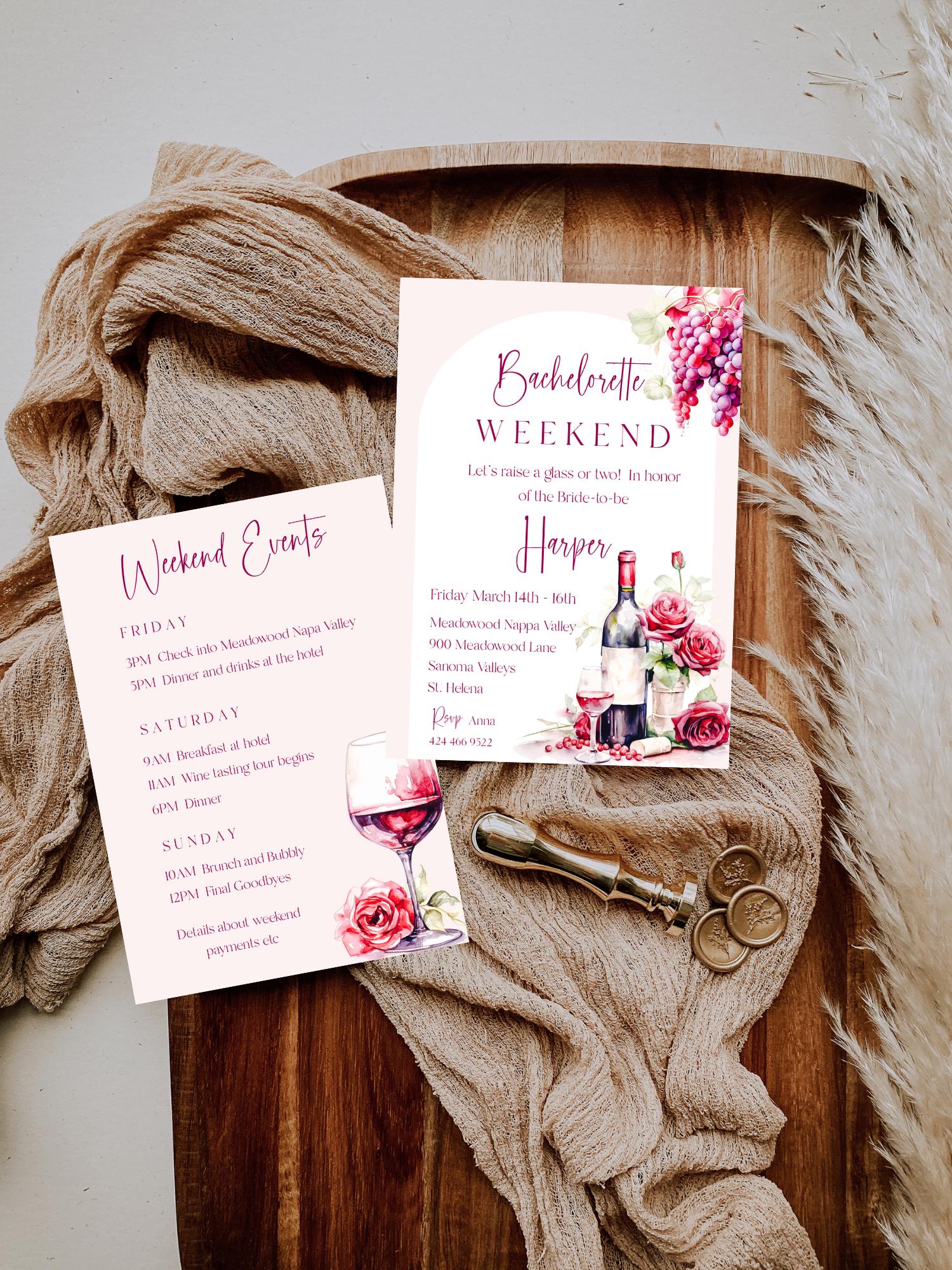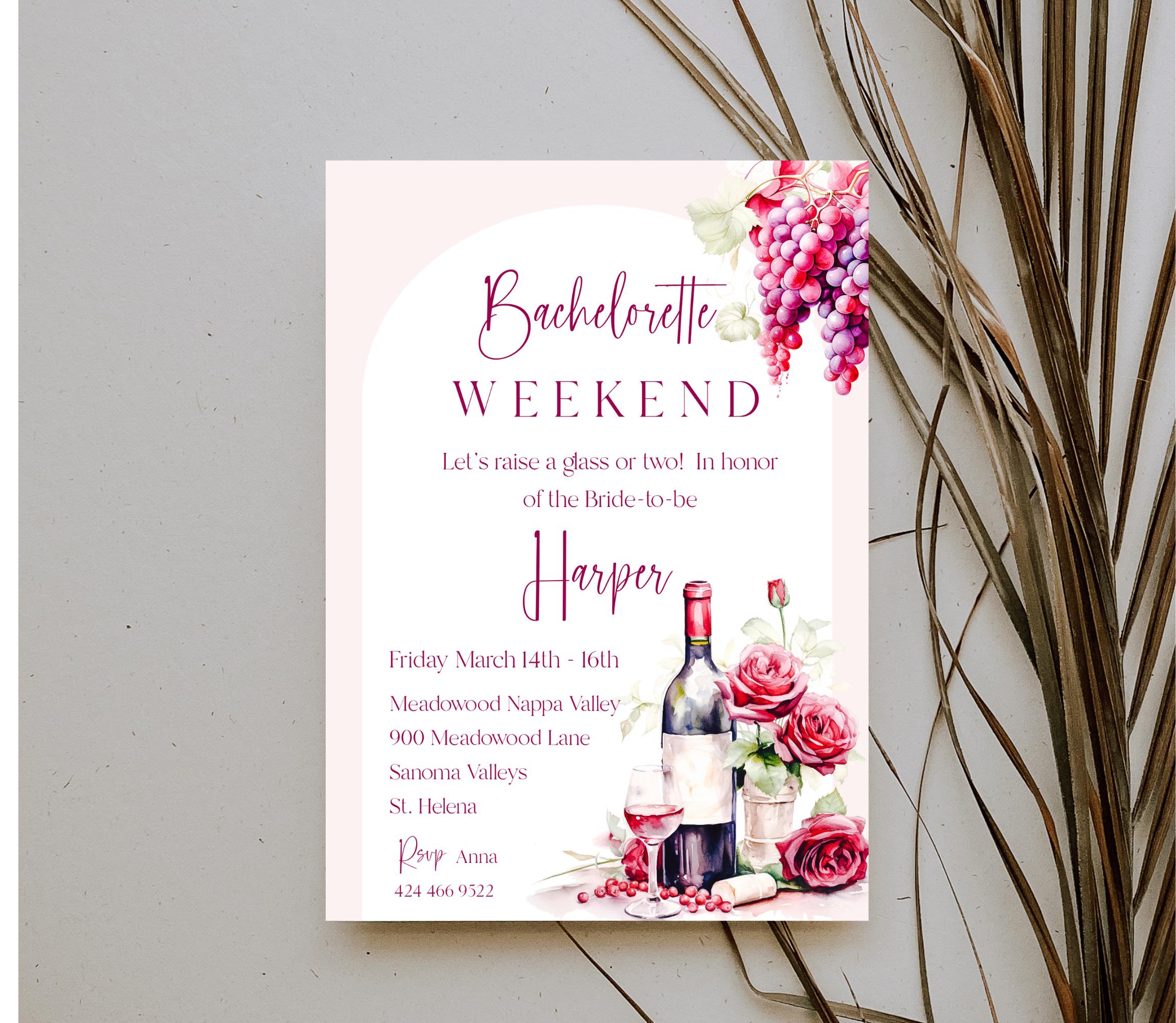 Winery Bachelorette Weekend Invitation Template. An Instant download digital file for you to edit in your web browser with Templett straight after your purchase. Once personalized you are ready to print.