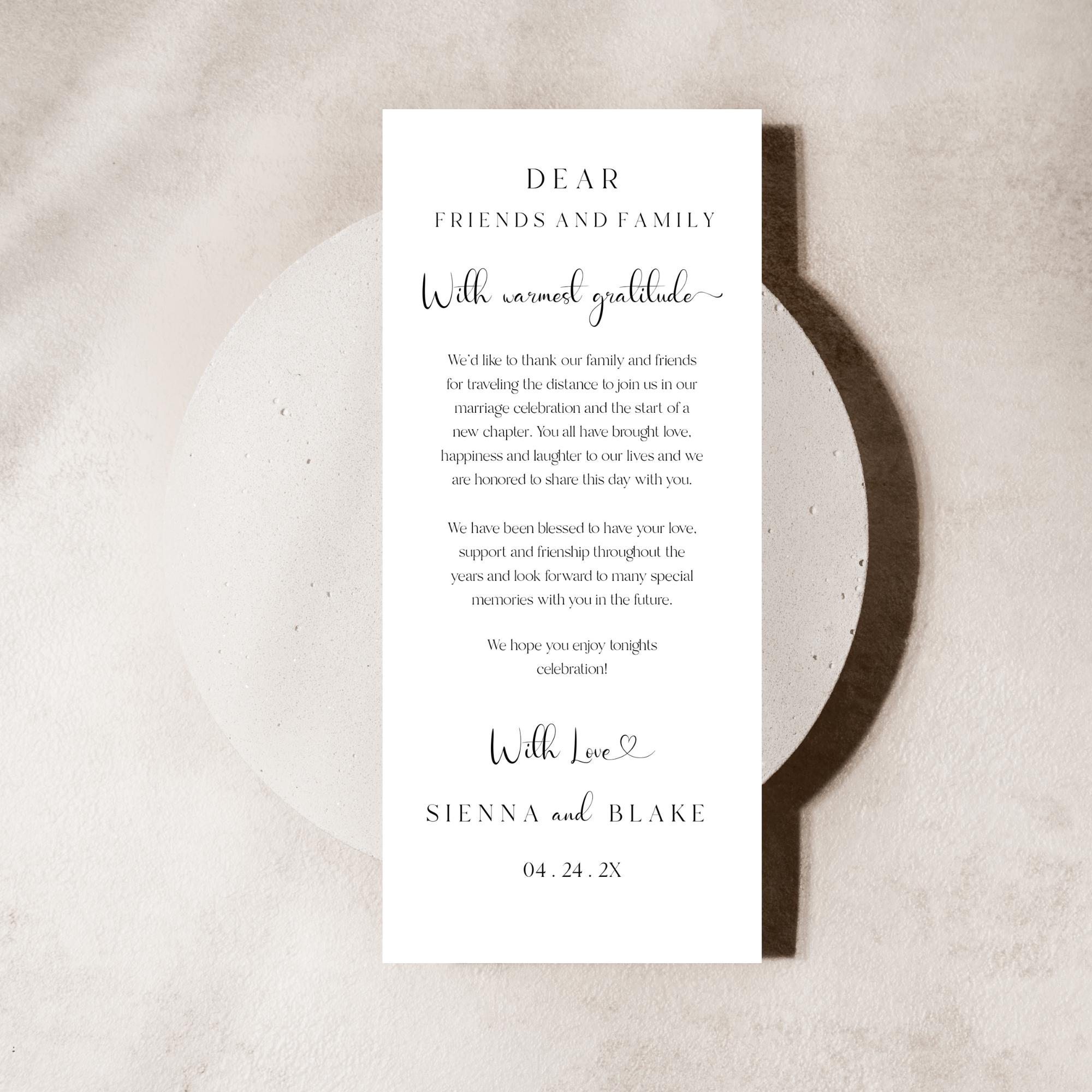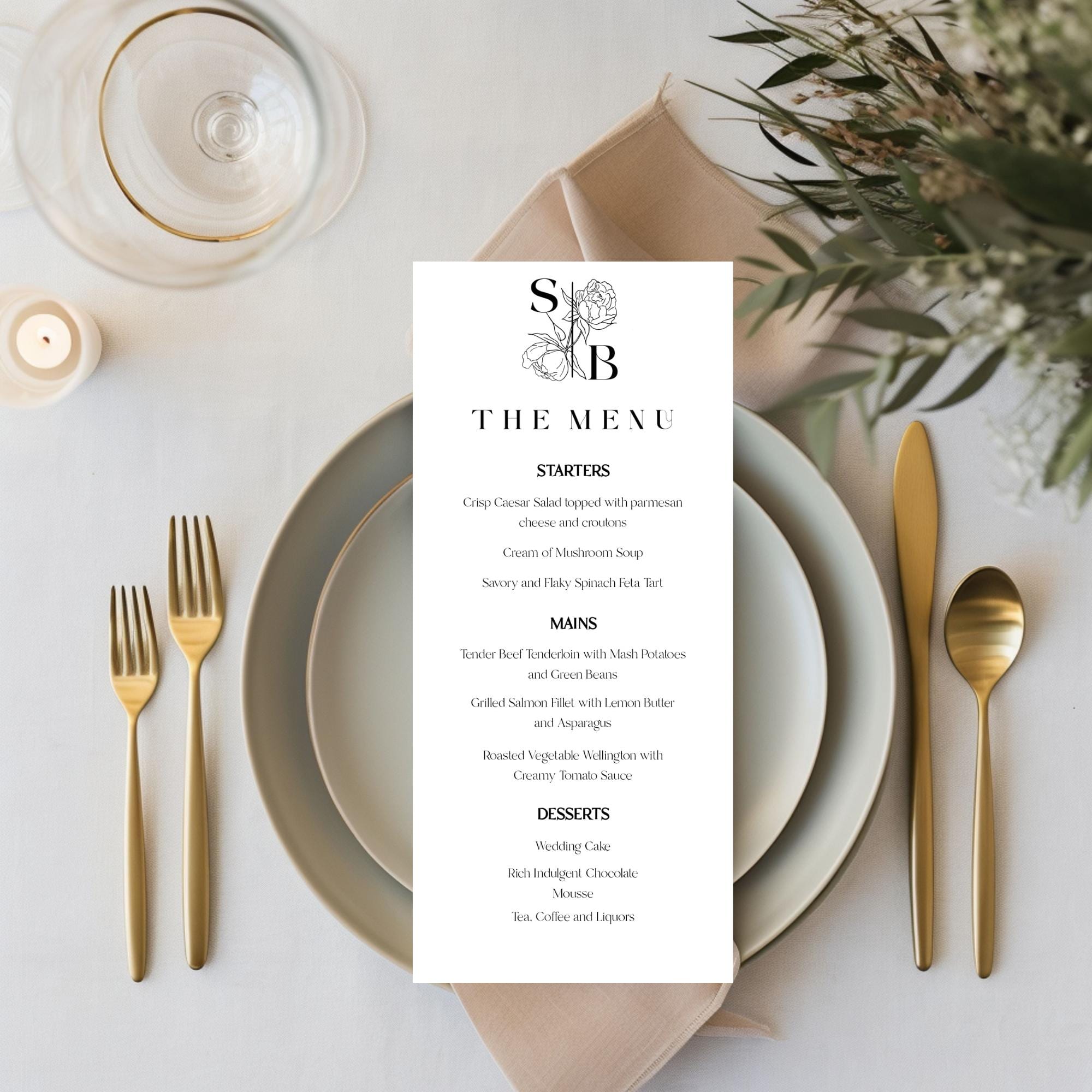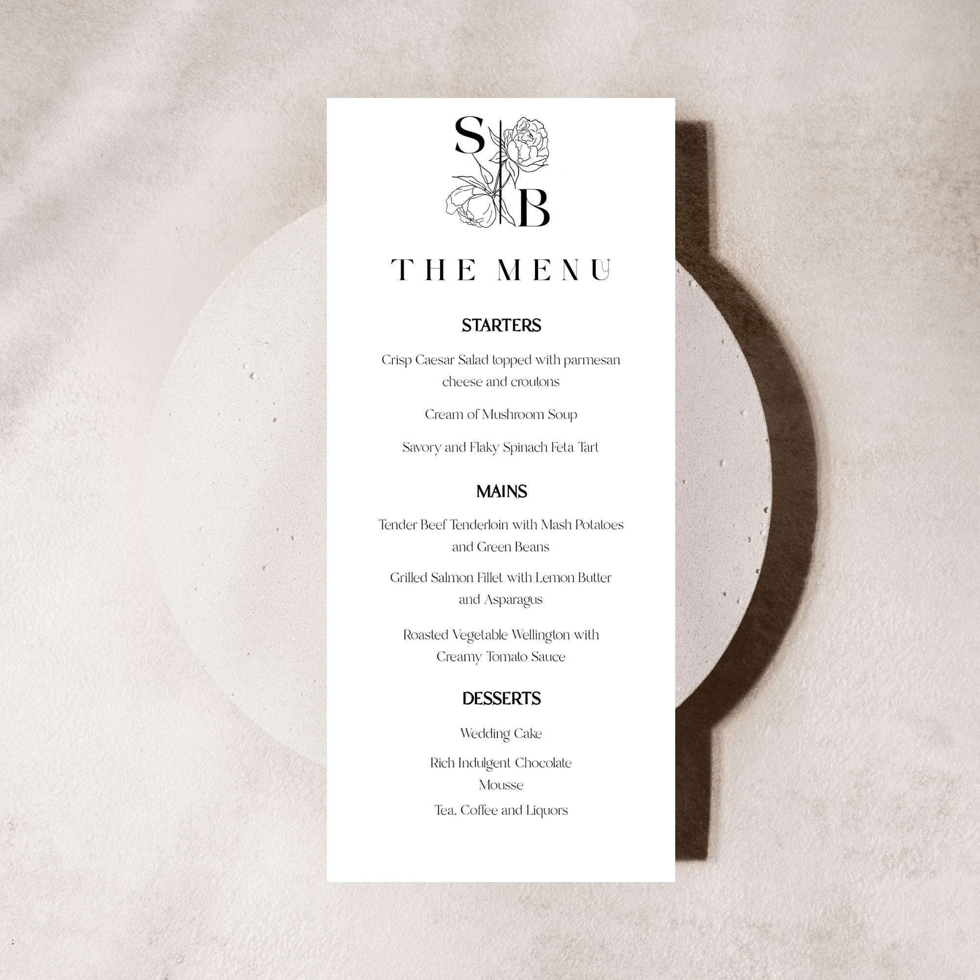 Modern Menu and Thank You Card Template. An Instant download digital file for you to edit in your web browser with Templett straight after your purchase. Once personalized you are ready to print.