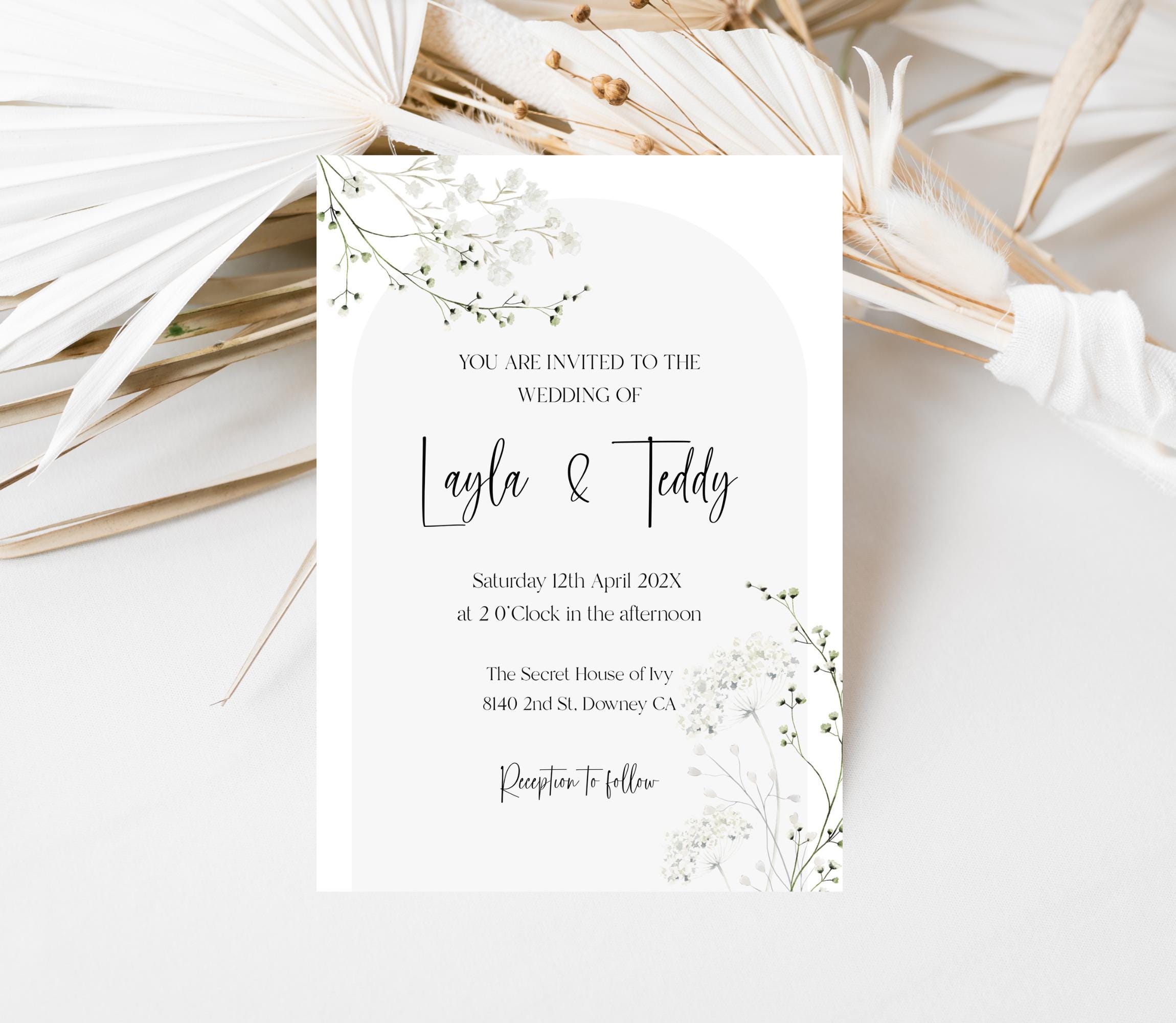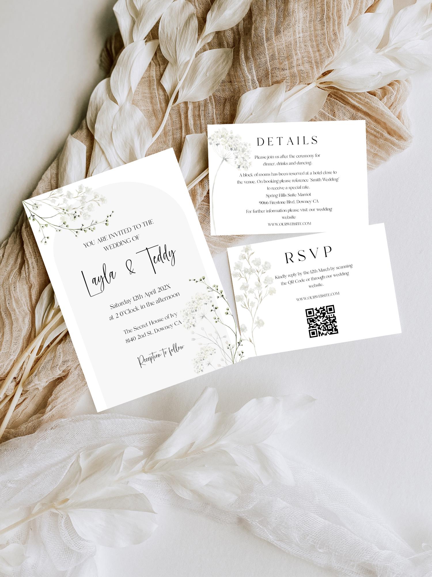 Elegant Neutral wildflower Wedding Invitation Template Set. An Instant download digital file for you to edit in your web browser with Templett straight after your purchase. Once personalized you are ready to print.