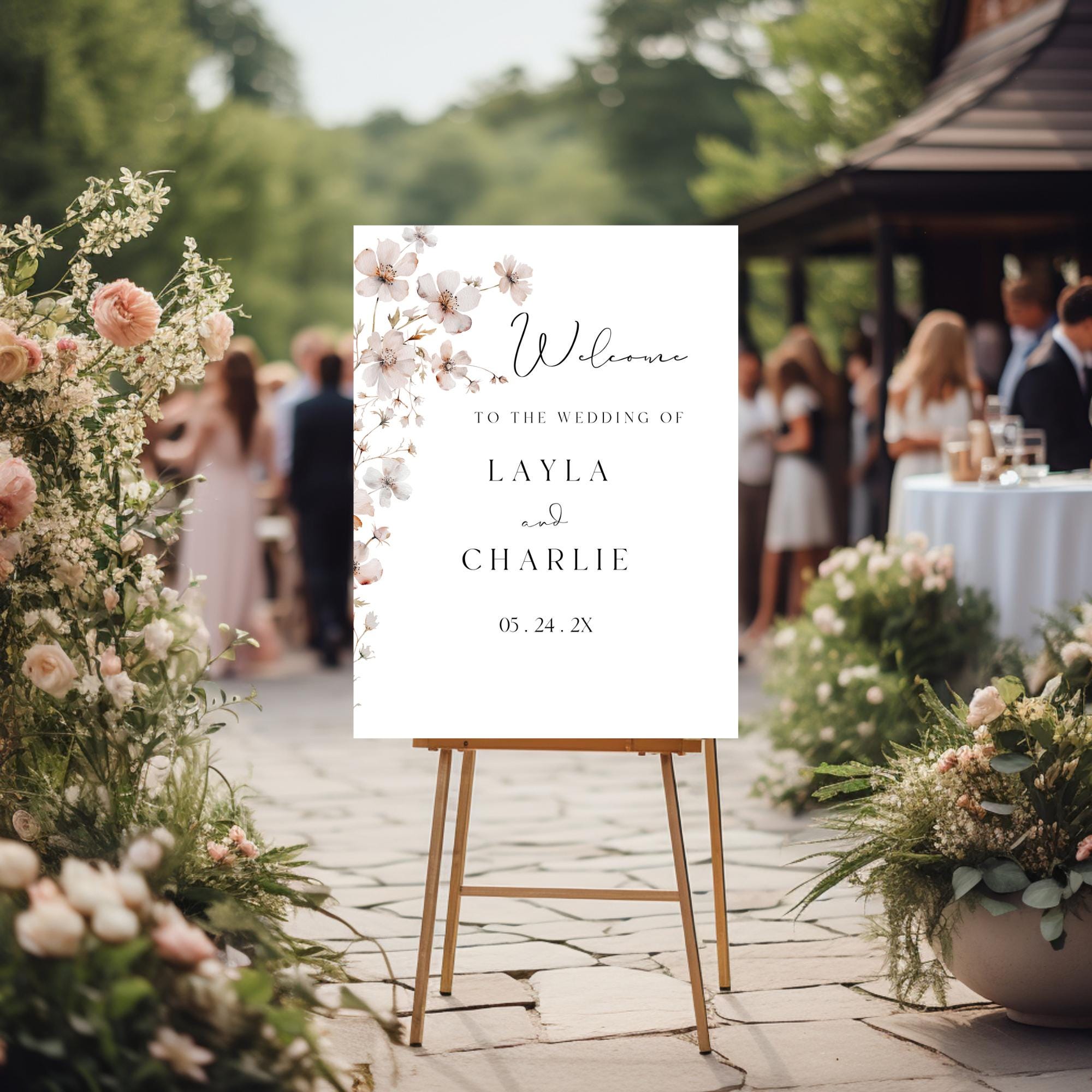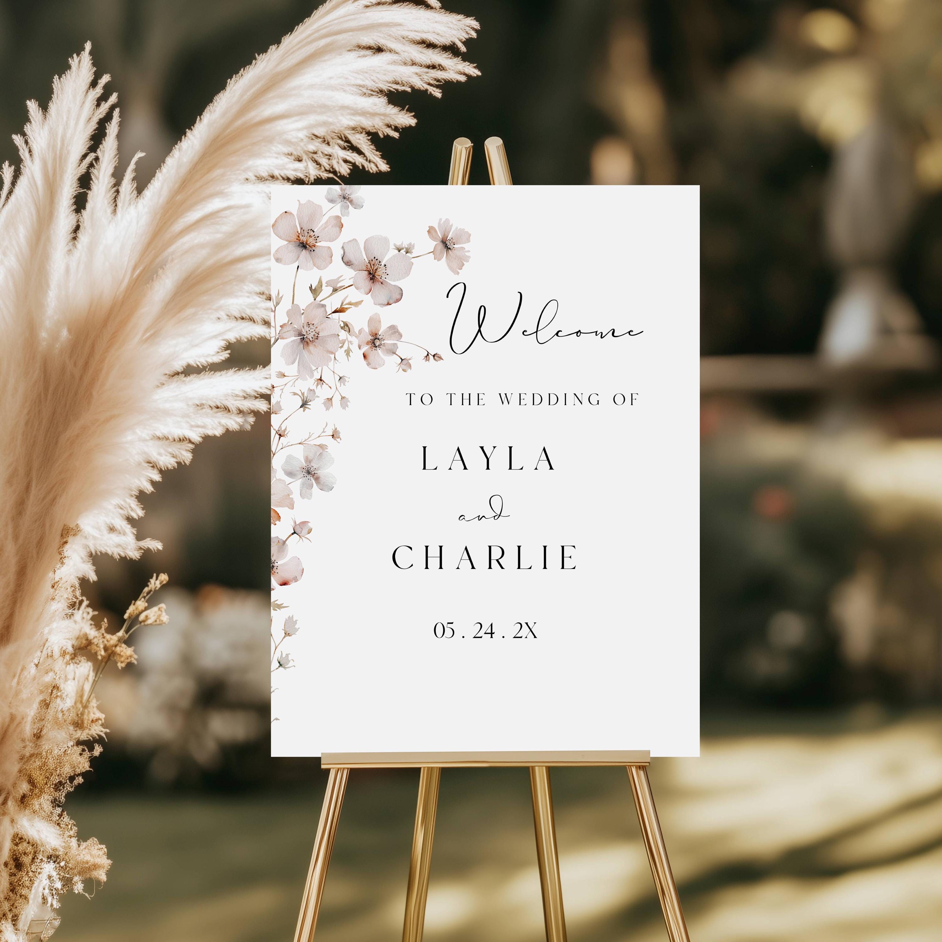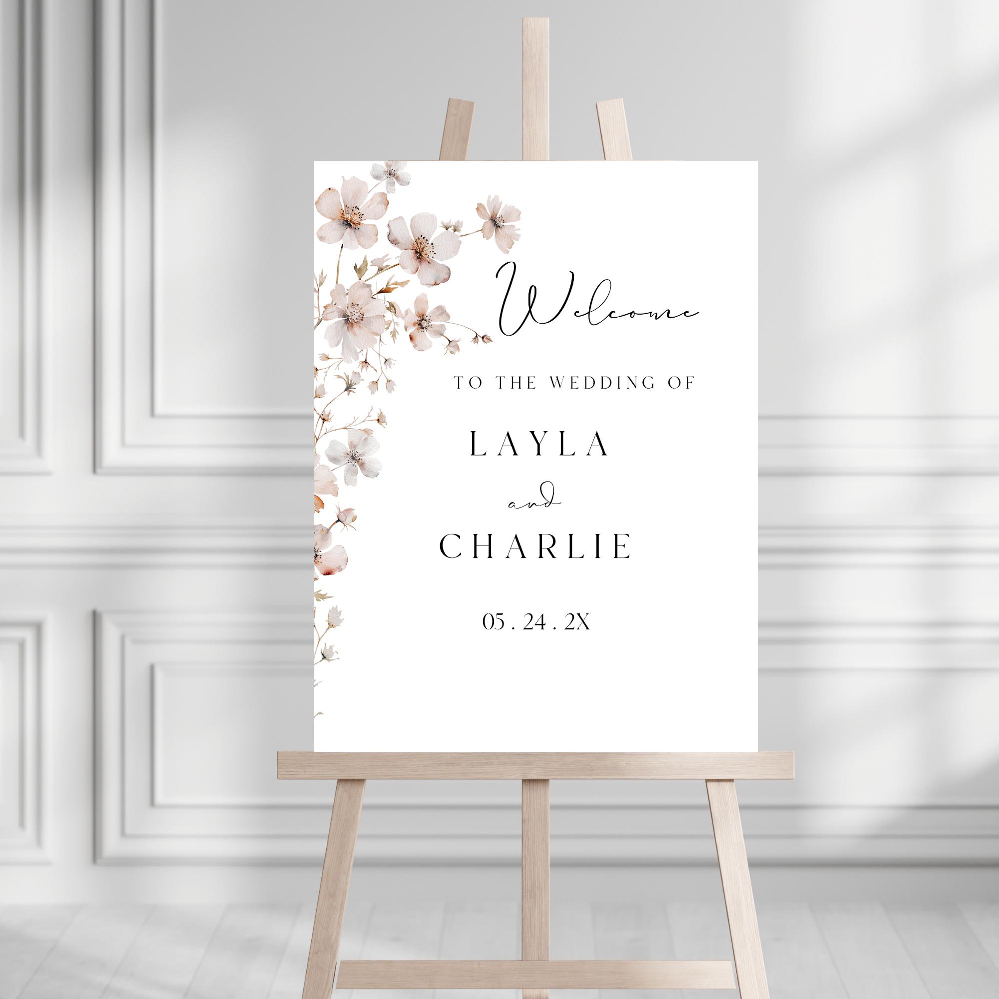 Neutral Wildflower Wedding Welcome Sign Template. An Instant download digital file for you to edit in your web browser with Templett straight after your purchase. Once personalized you are ready to print.