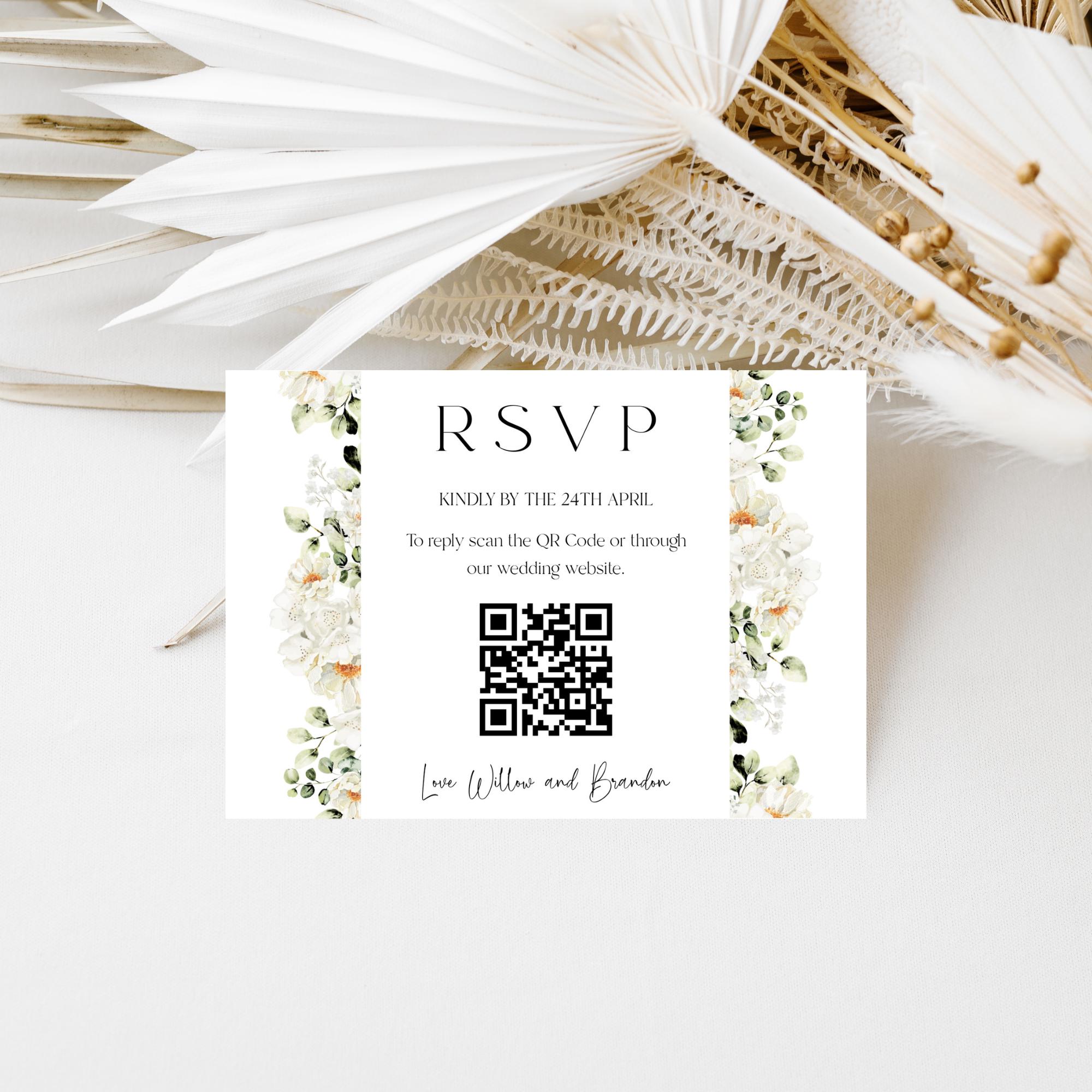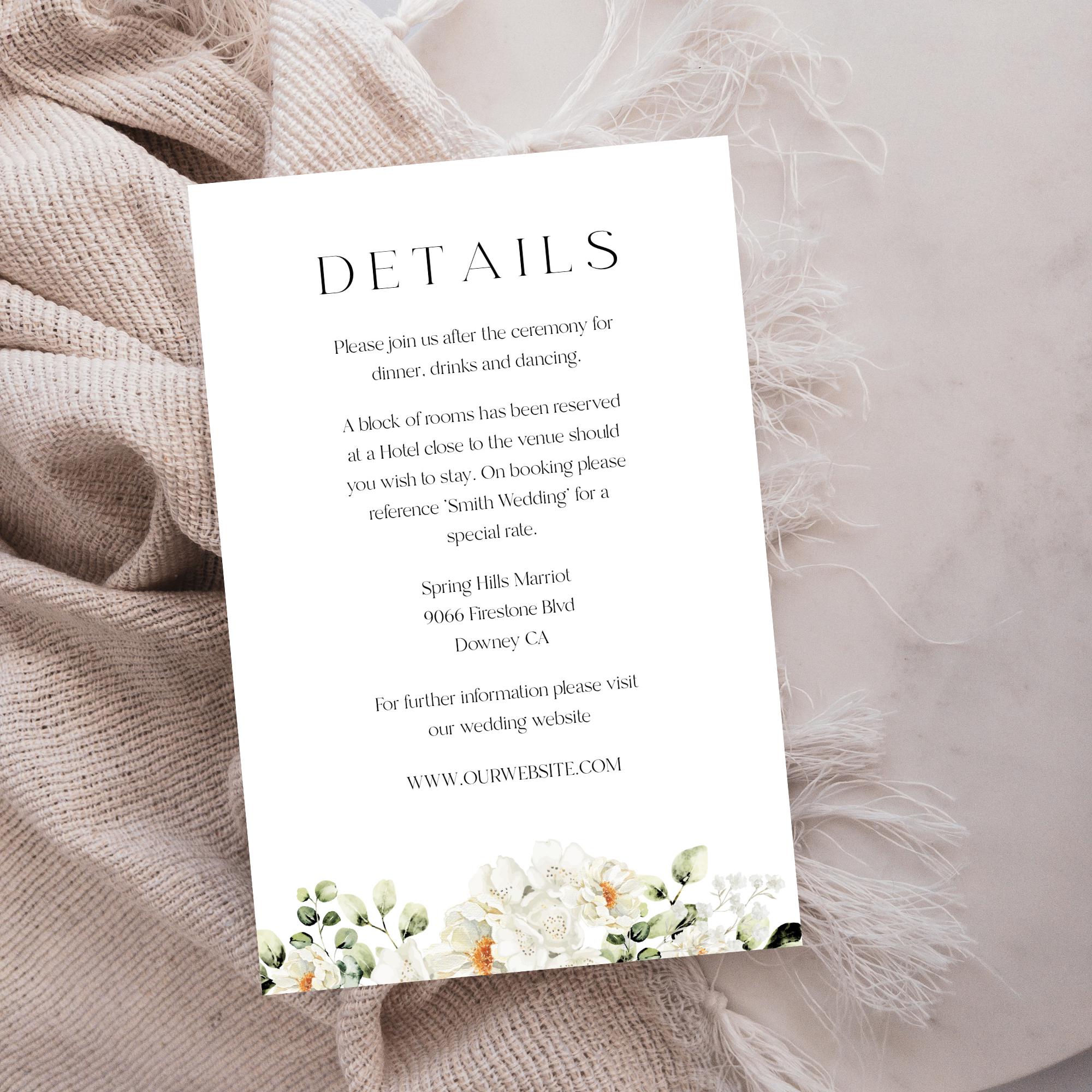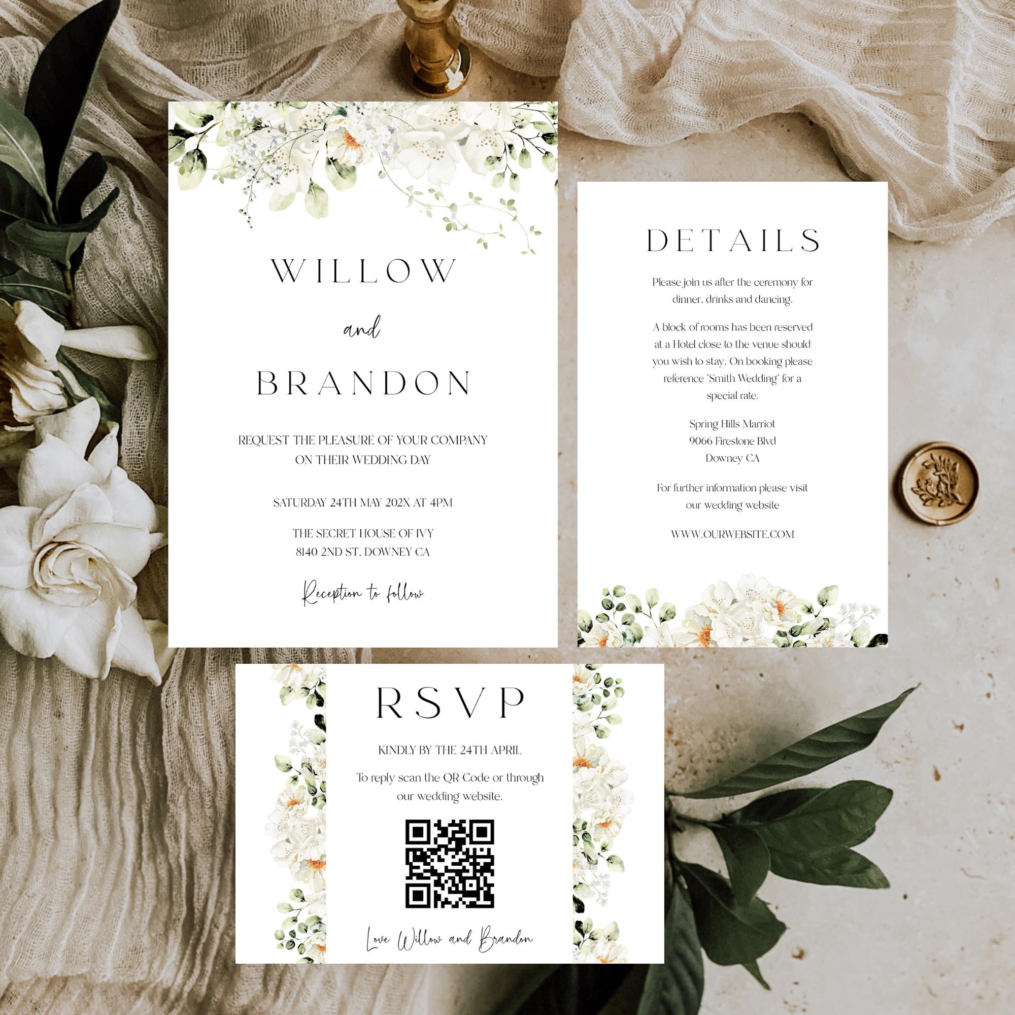 White Floral Spring Wedding Invitation Template. An Instant download digital file for you to edit in your web browser with Templett straight after your purchase. Once personalized you are ready to print.