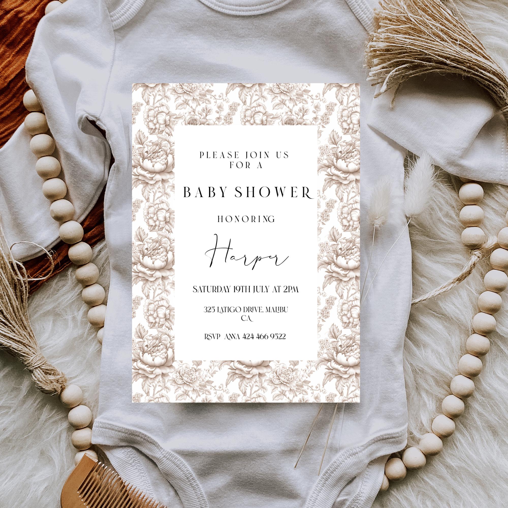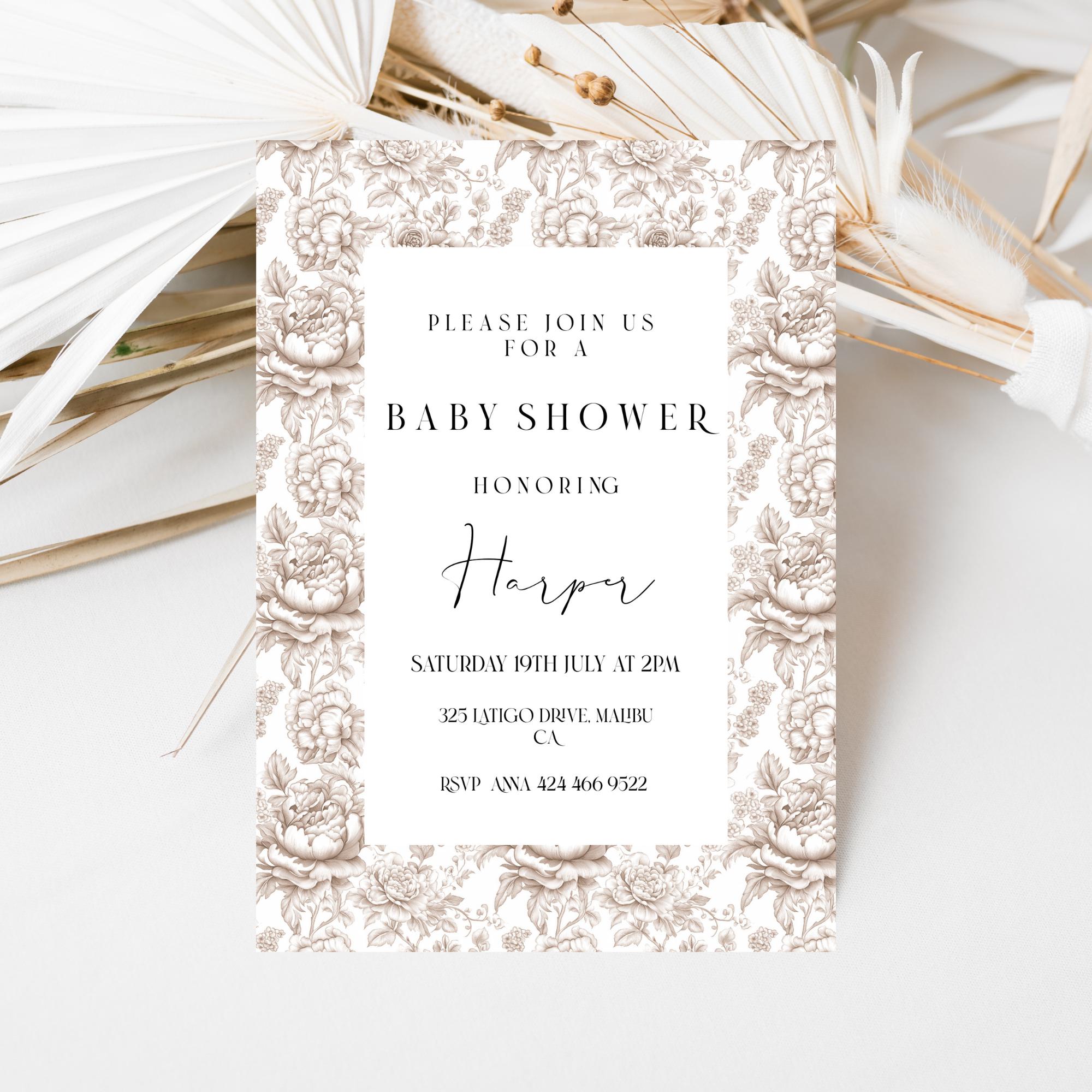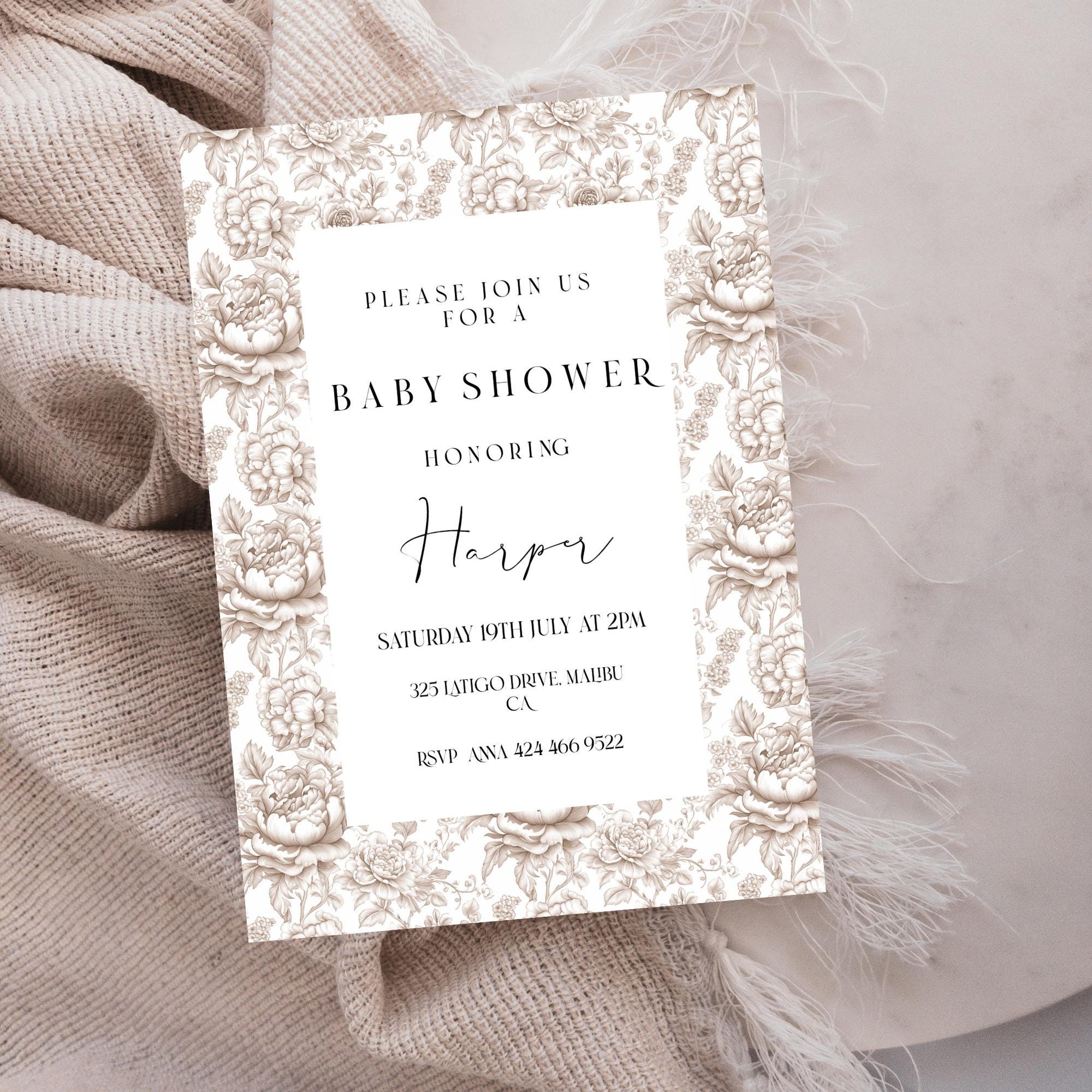 Neutral Toile Baby Shower Invitation Template. An Instant download digital file for you to edit in your web browser with Templett straight after your purchase. Once personalized you are ready to print.
