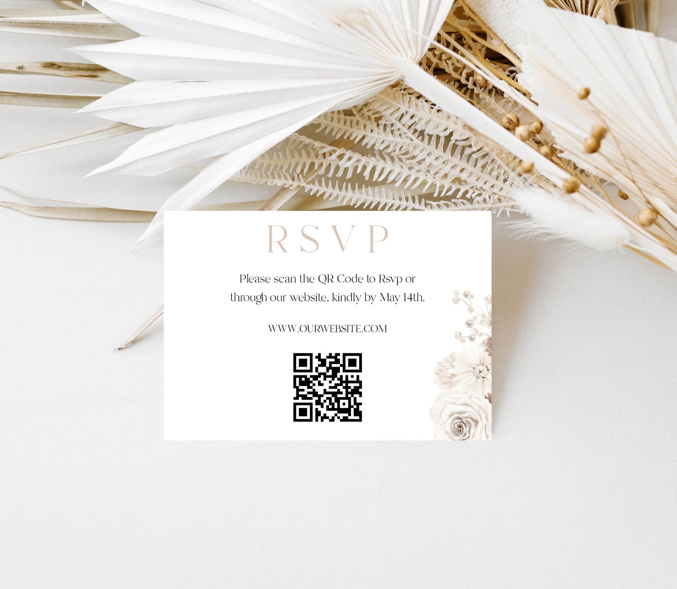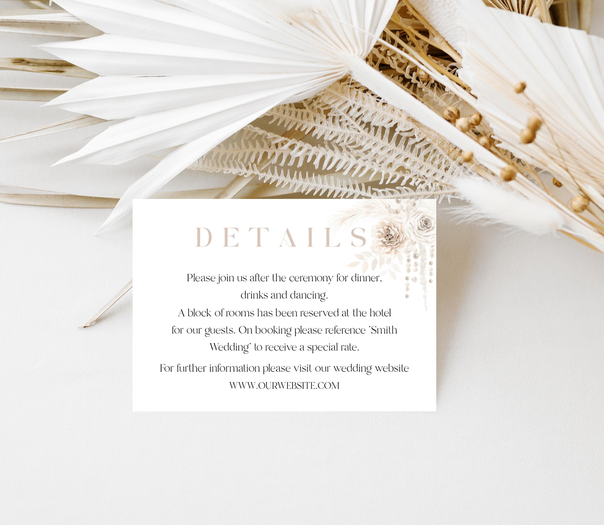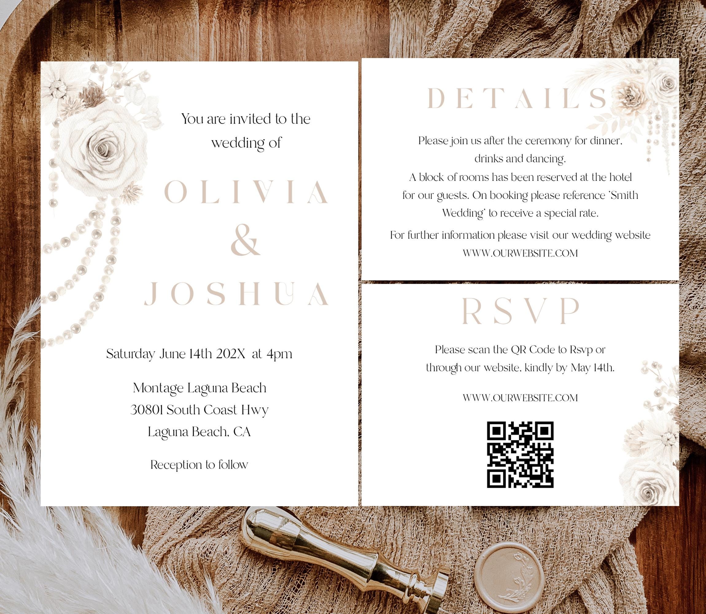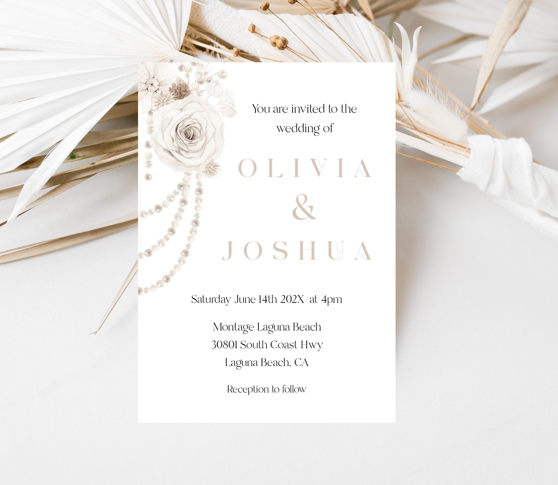 Neutral Floral Pearls Wedding Invitation Template Set. An Instant download digital file for you to edit in your web browser with Templett straight after your purchase. Once personalized you are ready to print.