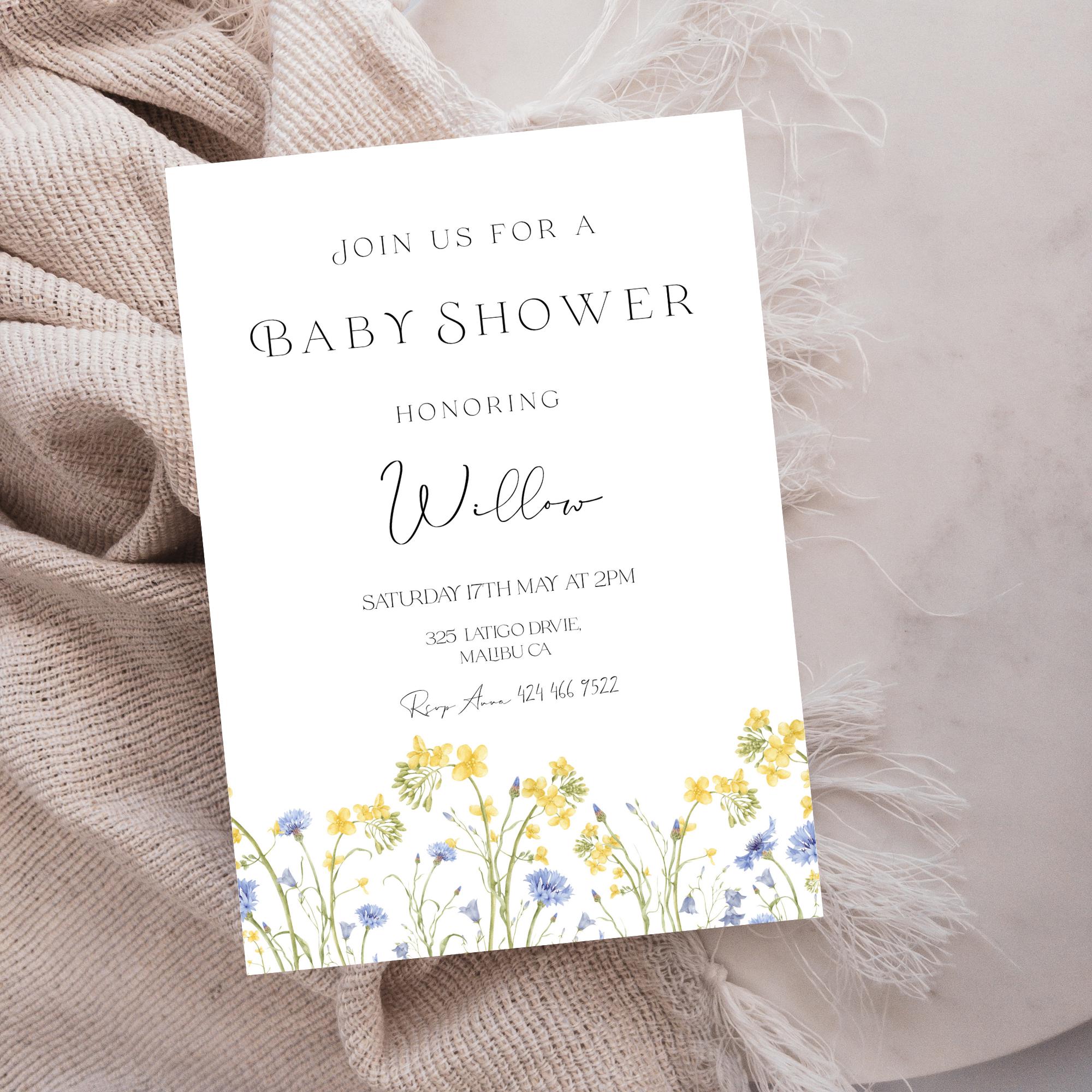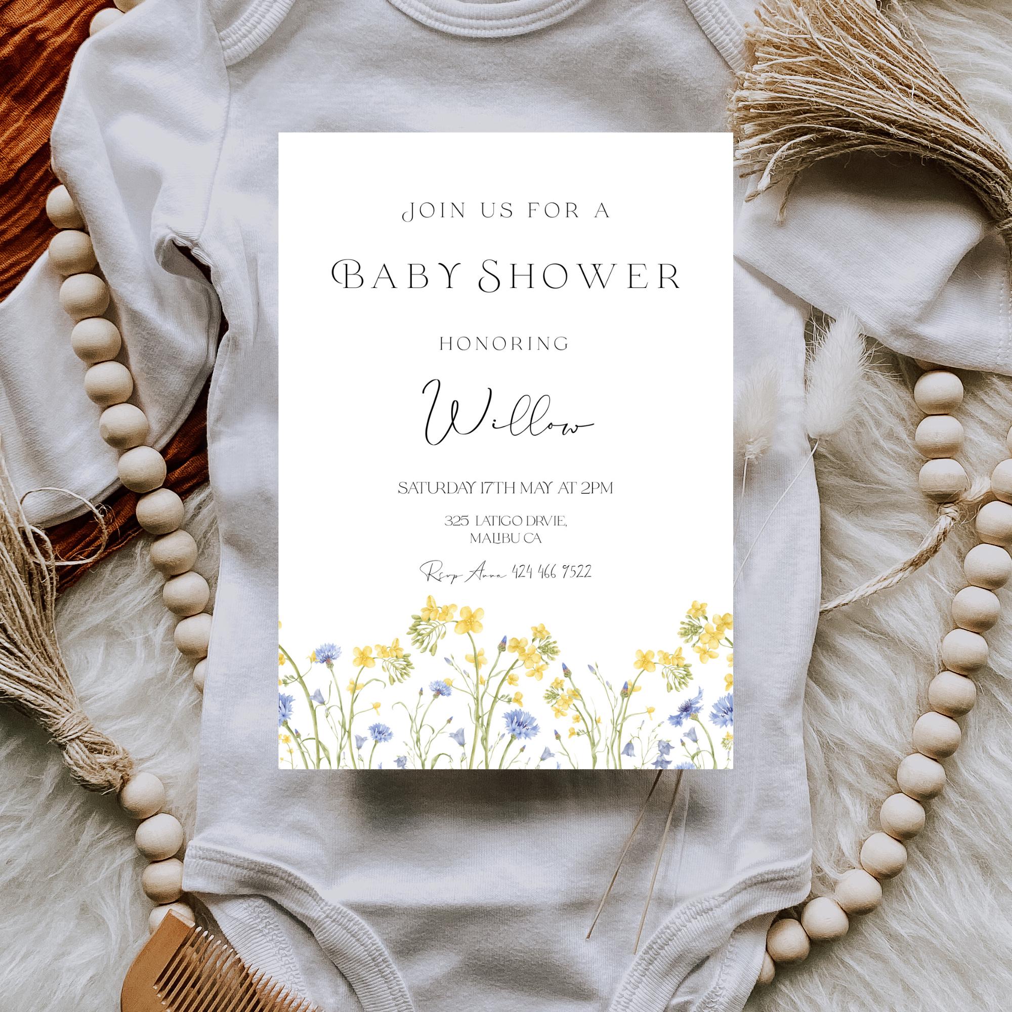Gender Neutral Wildflower Baby Shower Invitation Template. An Instant download digital file for you to edit in your web browser with Templett straight after your purchase. Once personalized you are ready to print.