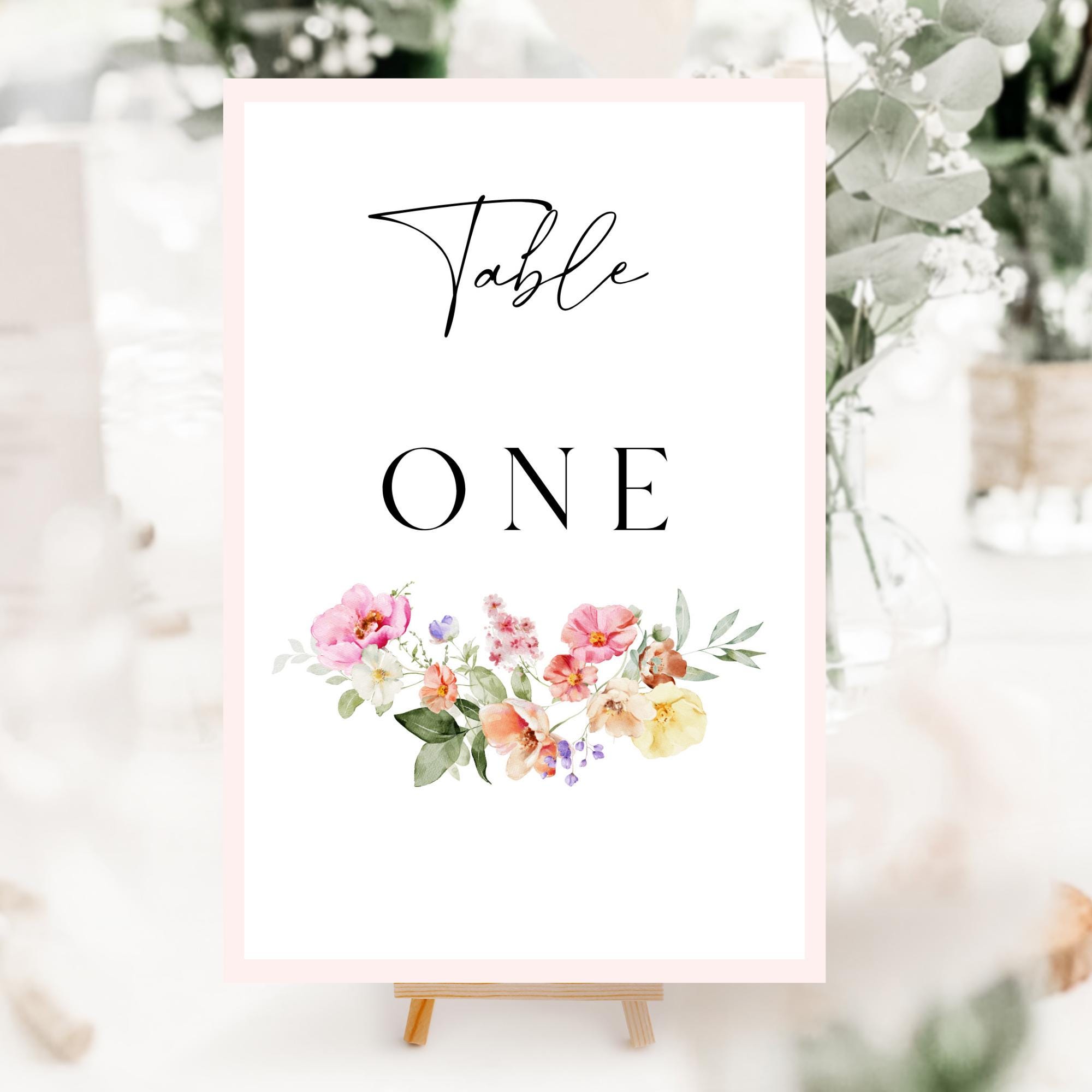 Bright Blooms Table Number Sign Template. An Instant download digital file for you to edit in your web browser with Templett straight after your purchase. Once personalized you are ready to print.