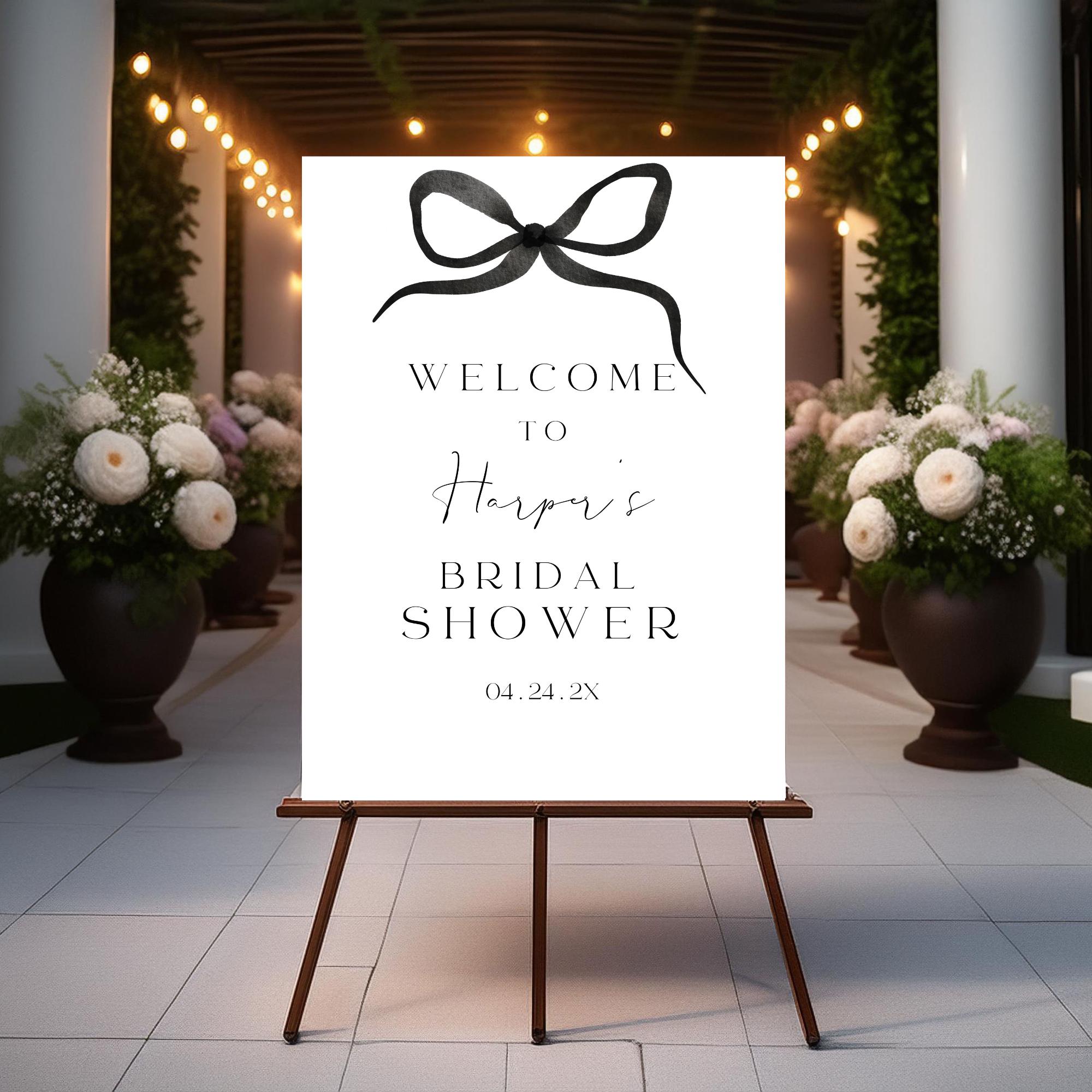 Modern Black and white Bridal Shower Welcome Sign Template. An Instant download digital file for you to edit in your web browser with Templett straight after your purchase. Once personalized you are ready to print.