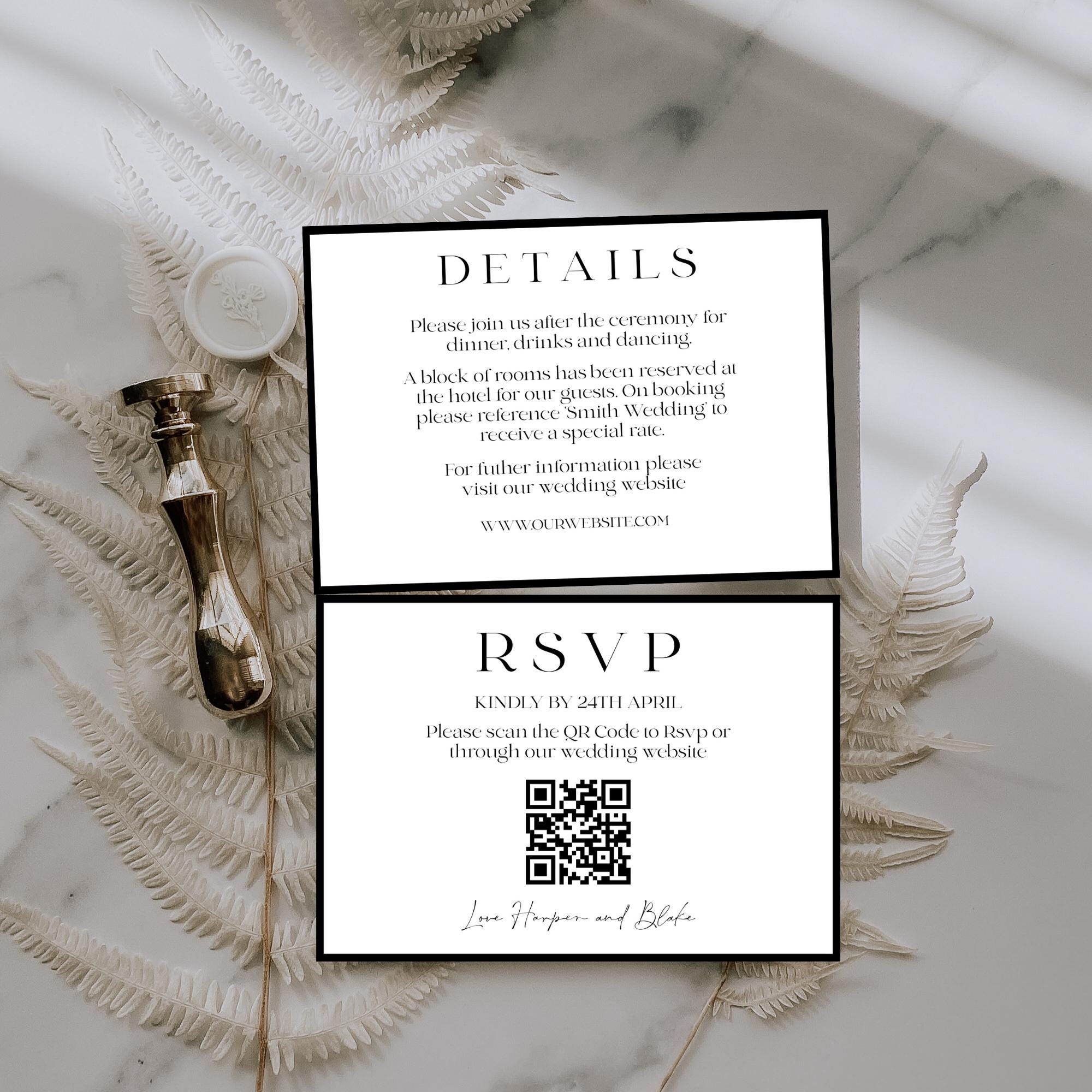You will need to replace the QR Code by creating your own and uploading the new one that links to your wedding website. There are many websites that you can create a free custom QR code. If you don't want to use a QR Code you can easily delete this from the invitation.