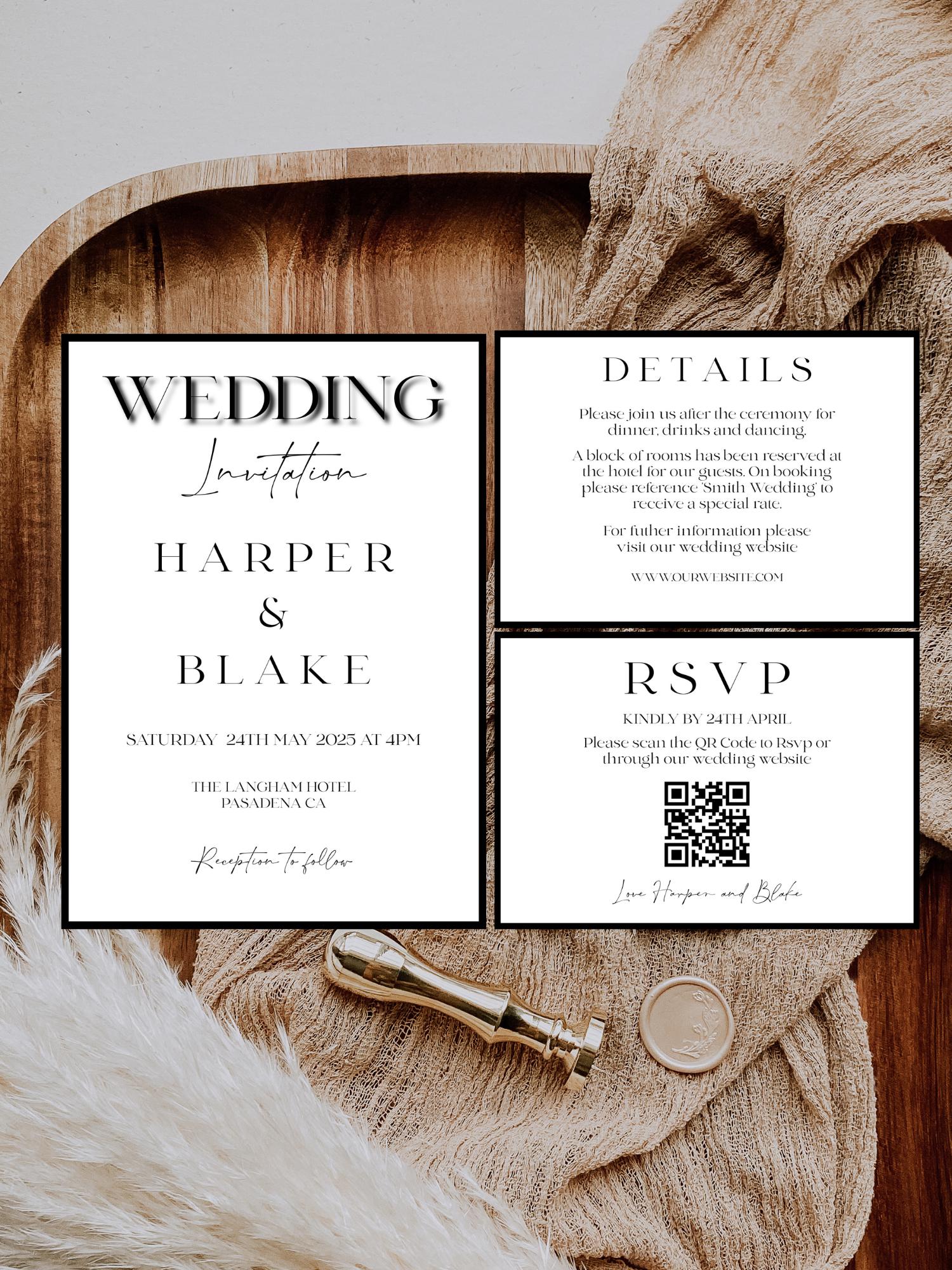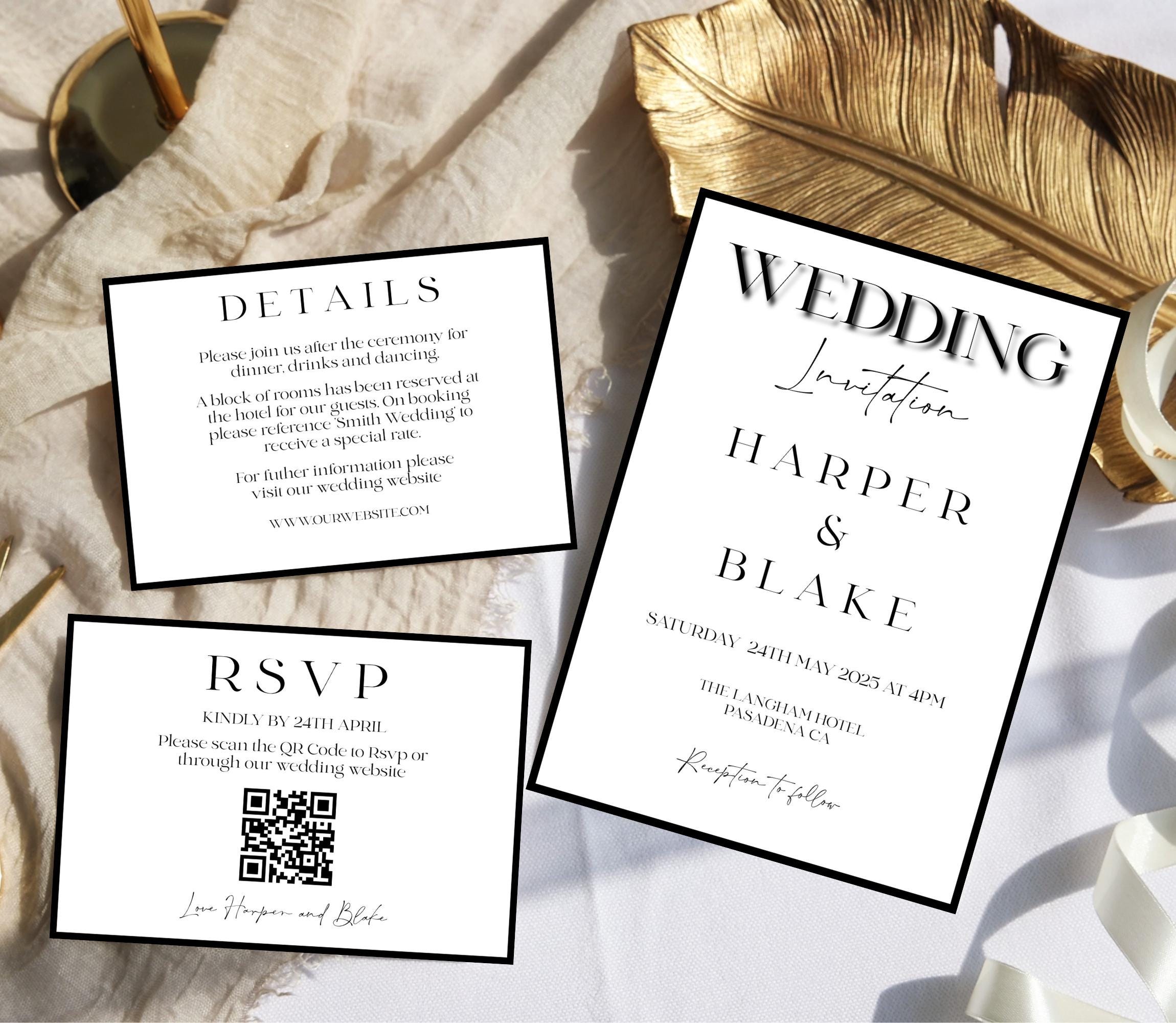 Modern WEDDING Invitation Template Suite. An Instant download digital file for you to edit in your web browser with Templett straight after your purchase. Once personalized you are ready to print.