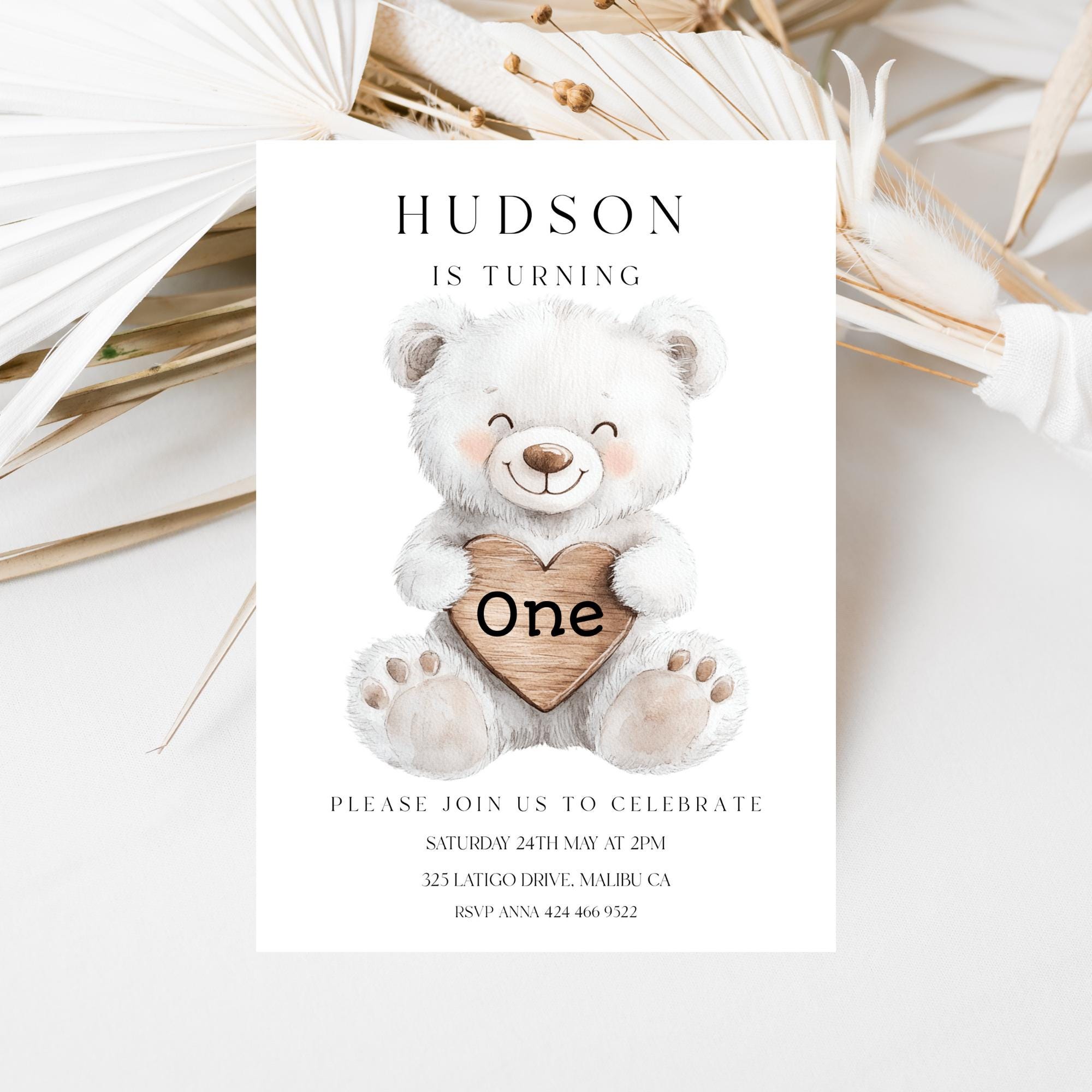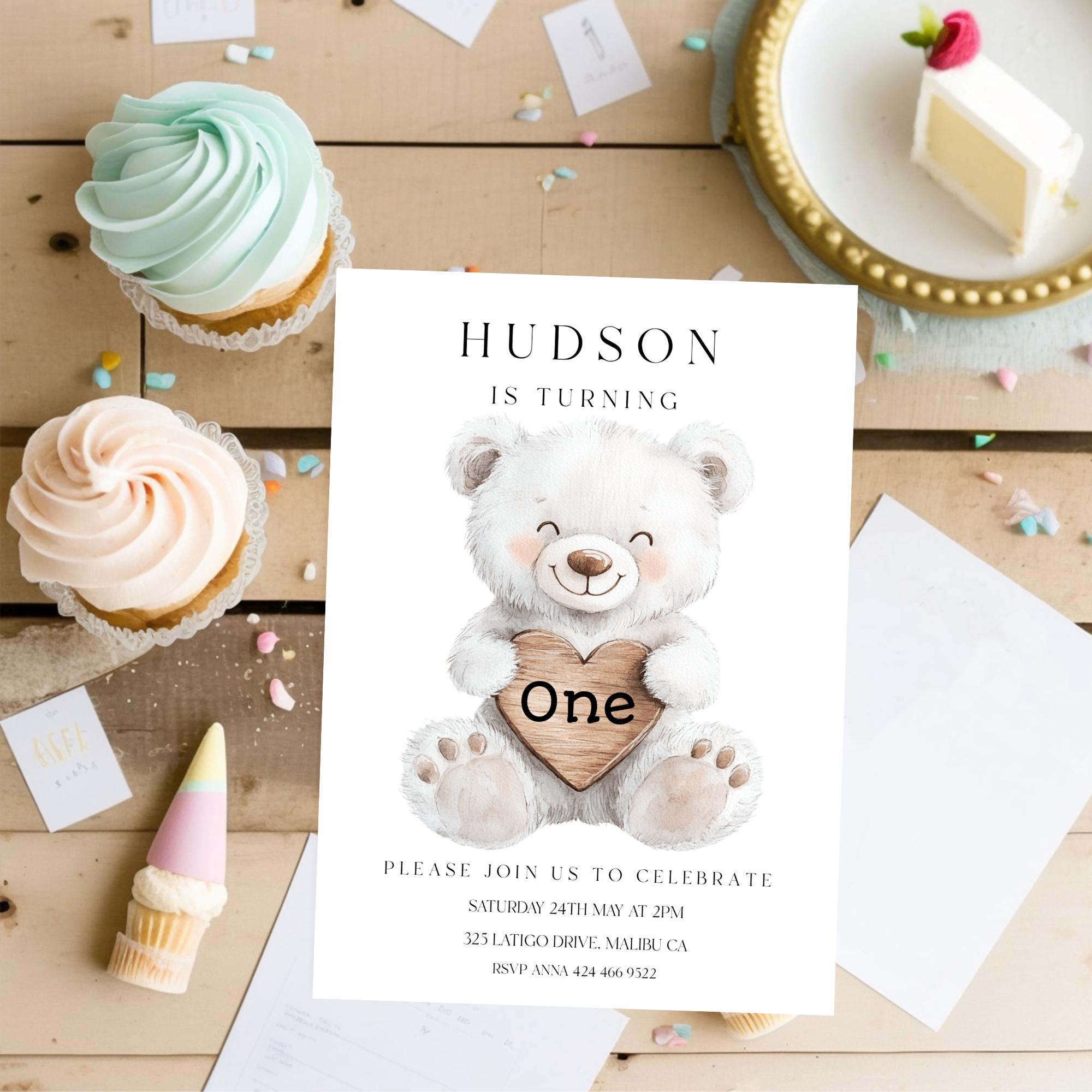 Neutral Any Age Bear Invitation Template. An Instant download digital file for you to edit in your web browser with Templett straight after your purchase. Once personalized you are ready to print.