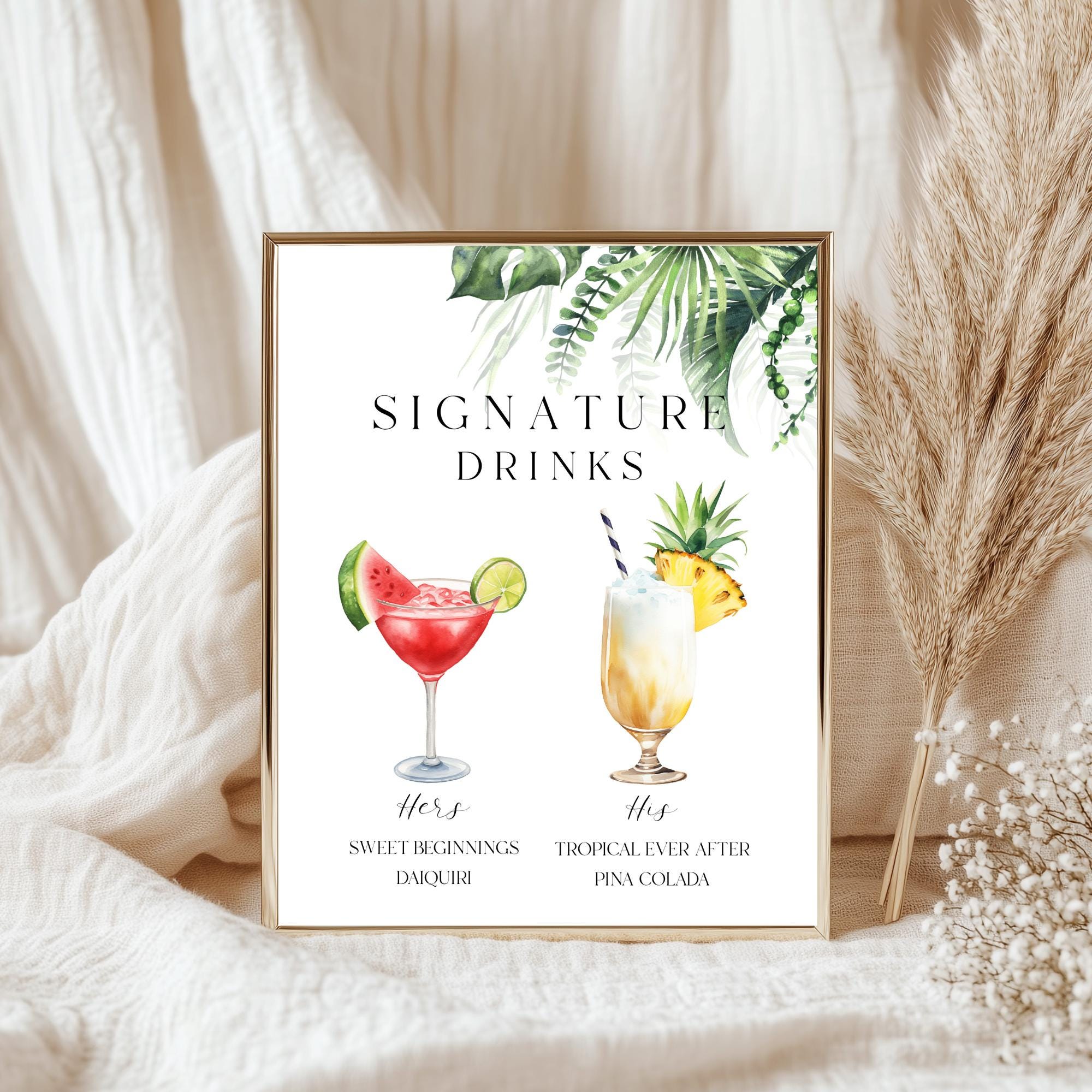 Tropical Signature Drinks Sign Template. An Instant download digital file for you to edit in your web browser with Templett straight after your purchase. Once personalized you are ready to print.