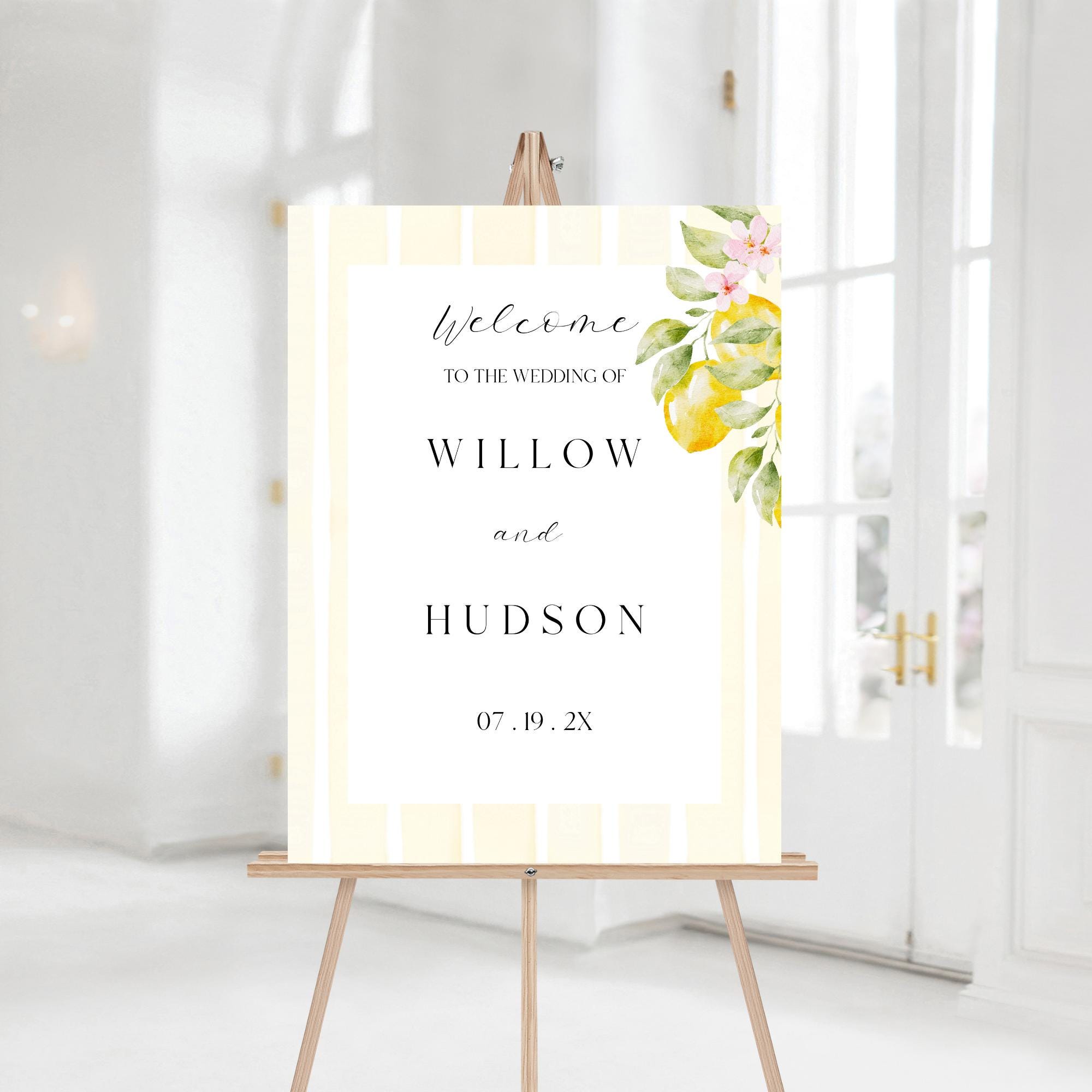 Lemons Wedding Welcome Sign Template. An Instant download digital file for you to edit in your web browser with Templett straight after your purchase. Once personalized you are ready to print.