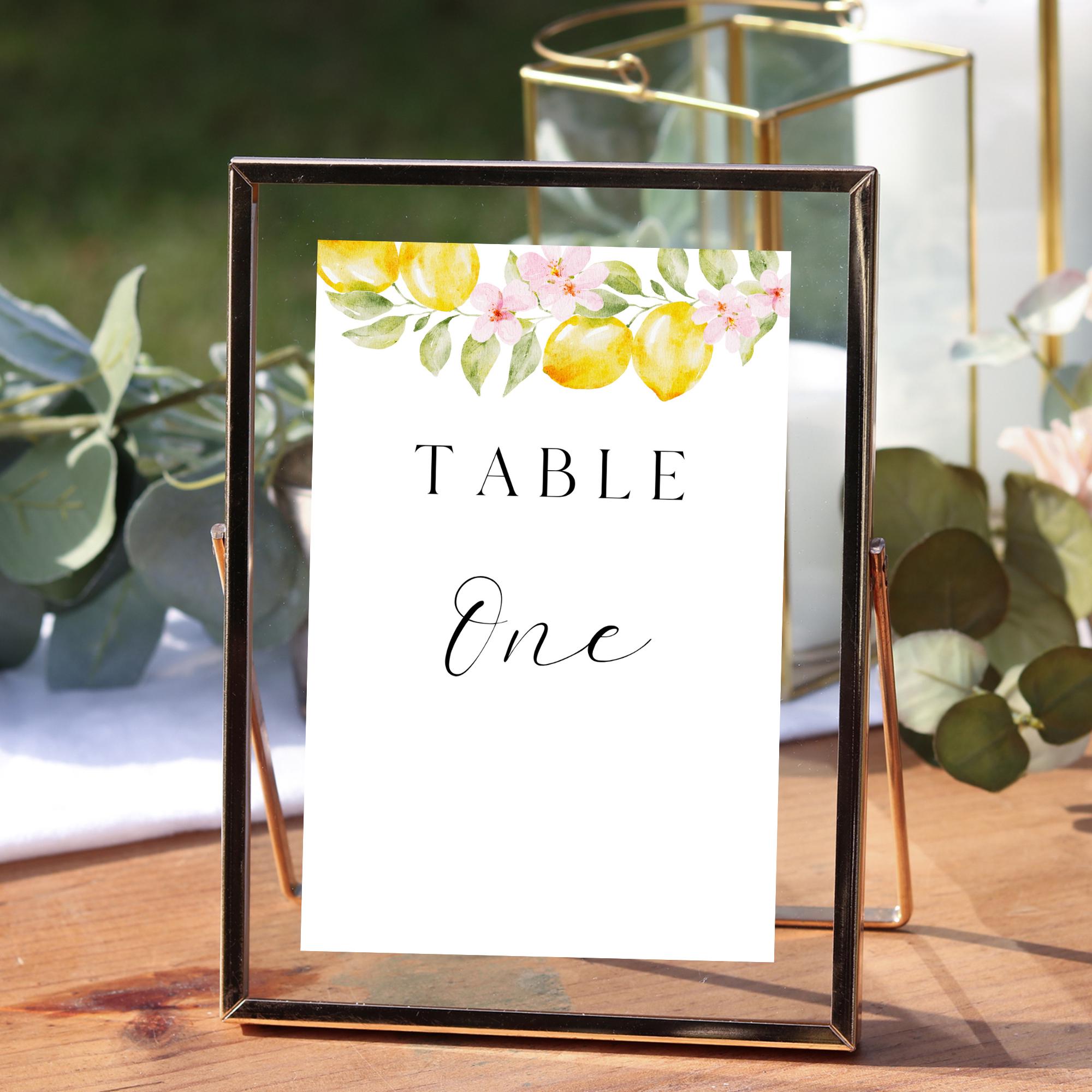 Lemons Wedding Table Number Sign Template. An Instant download digital file for you to edit in your web browser with Templett straight after your purchase. Once personalized you are ready to print.