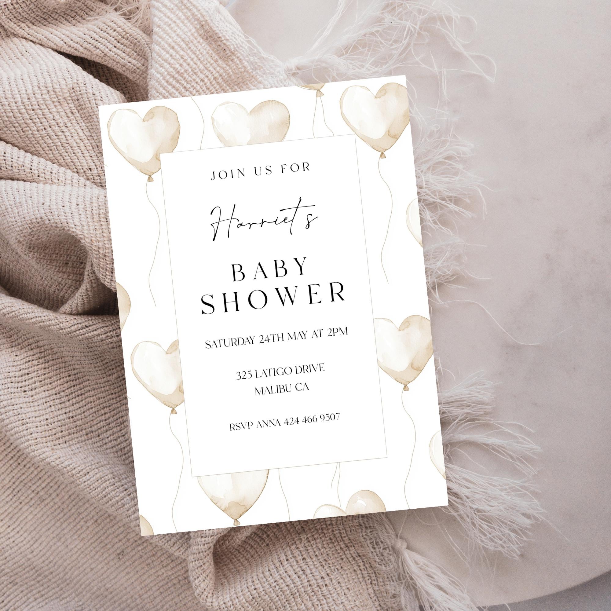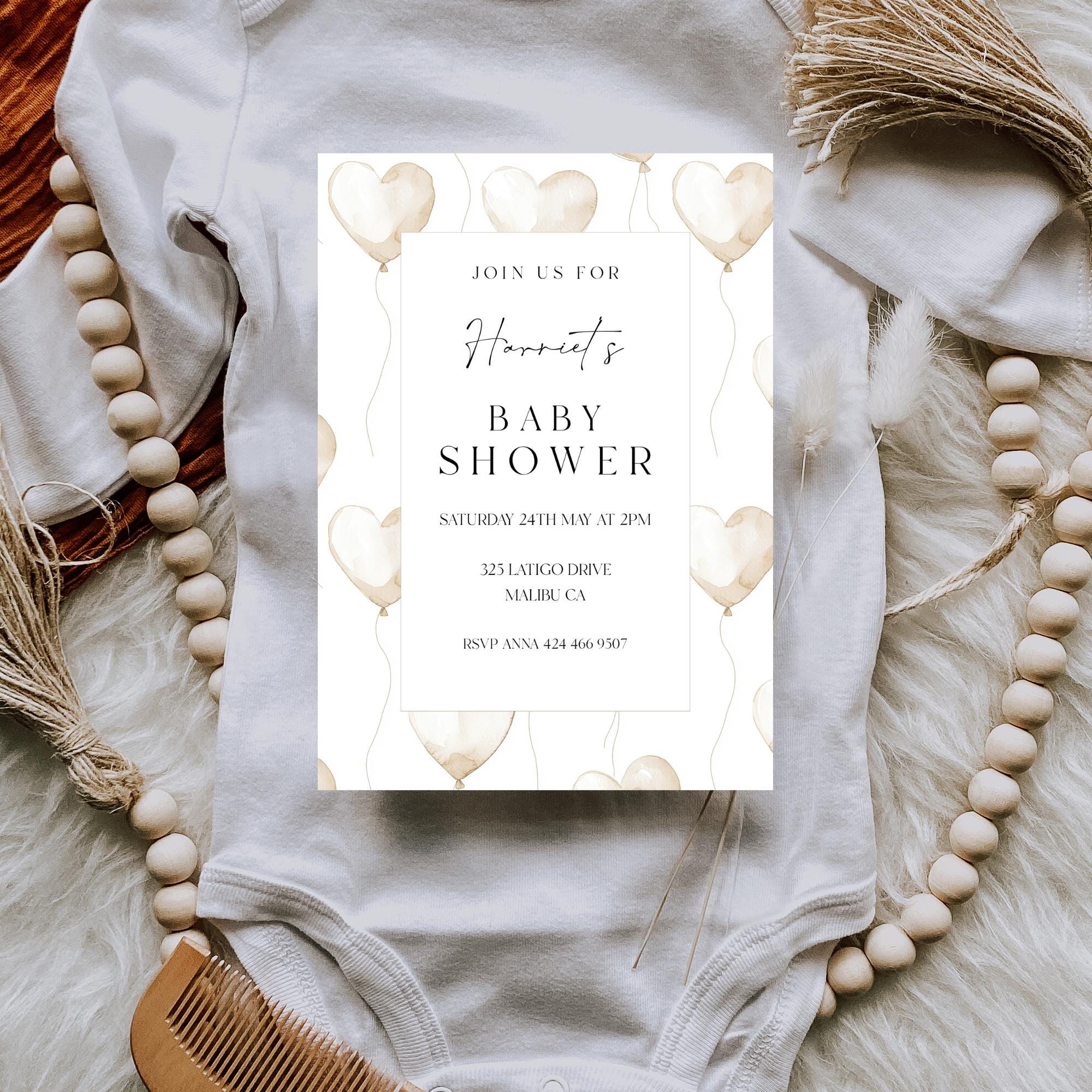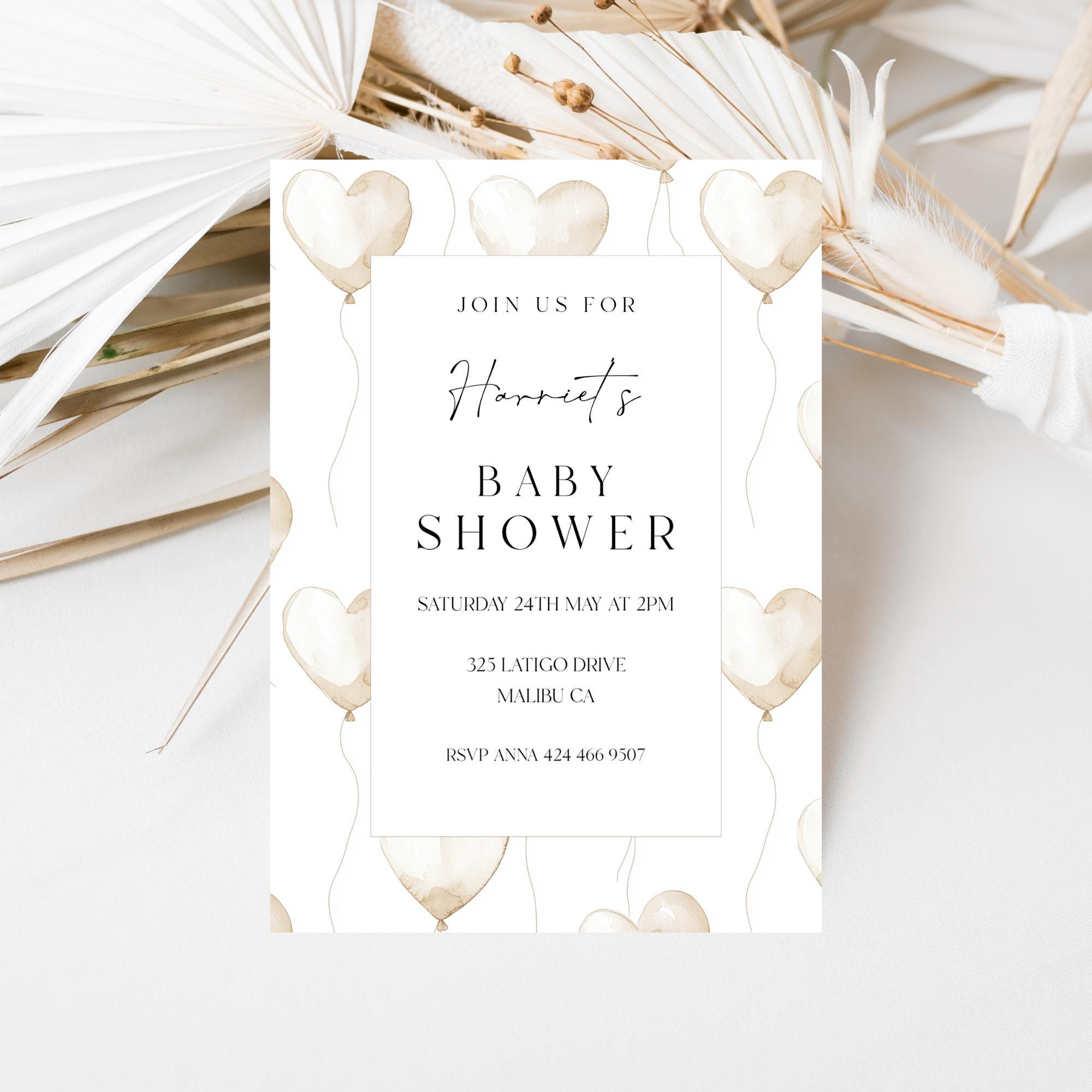 Neutral Hearts Baby Shower Invitation Template. An Instant download digital file for you to edit in your web browser with Templett straight after your purchase. Once personalized you are ready to print.