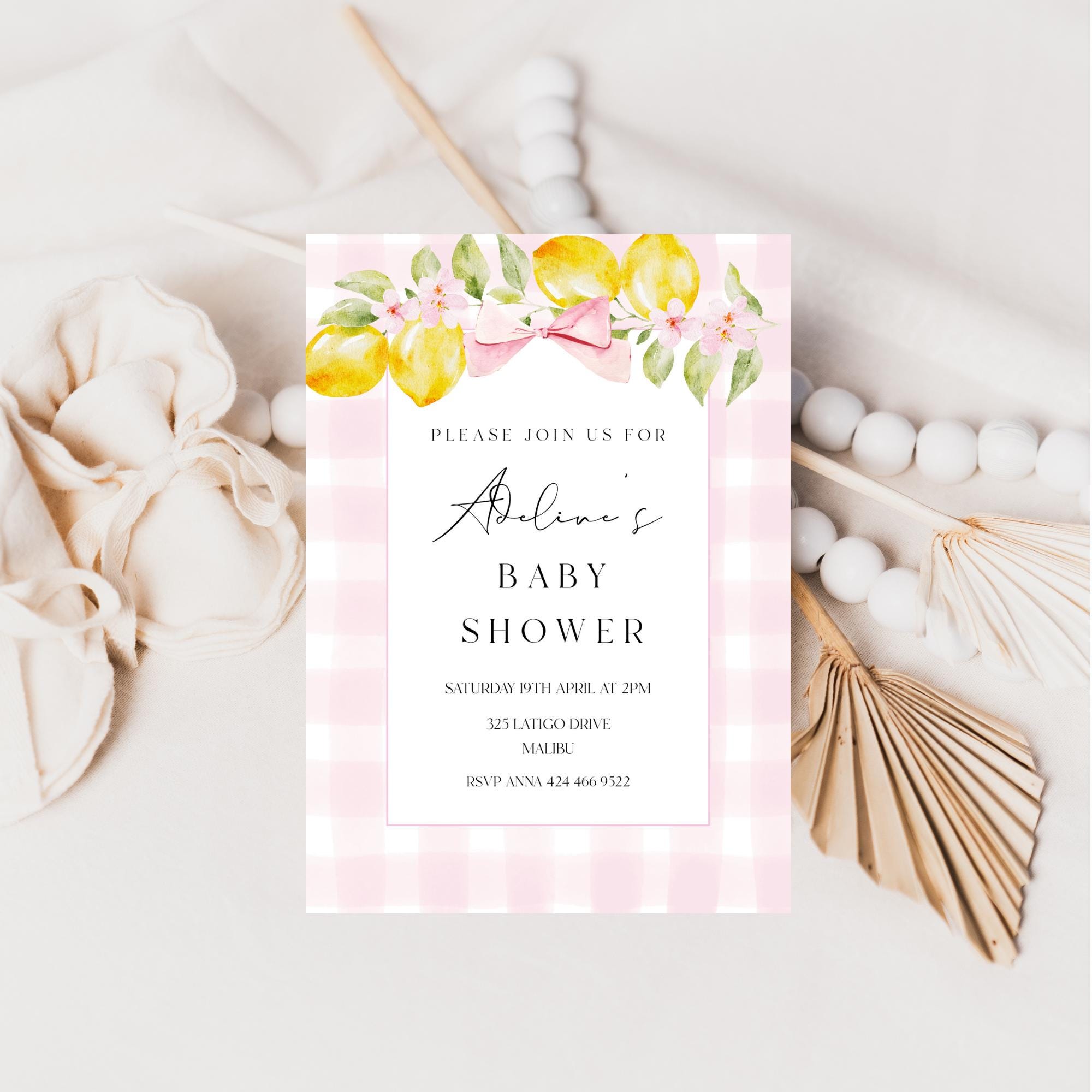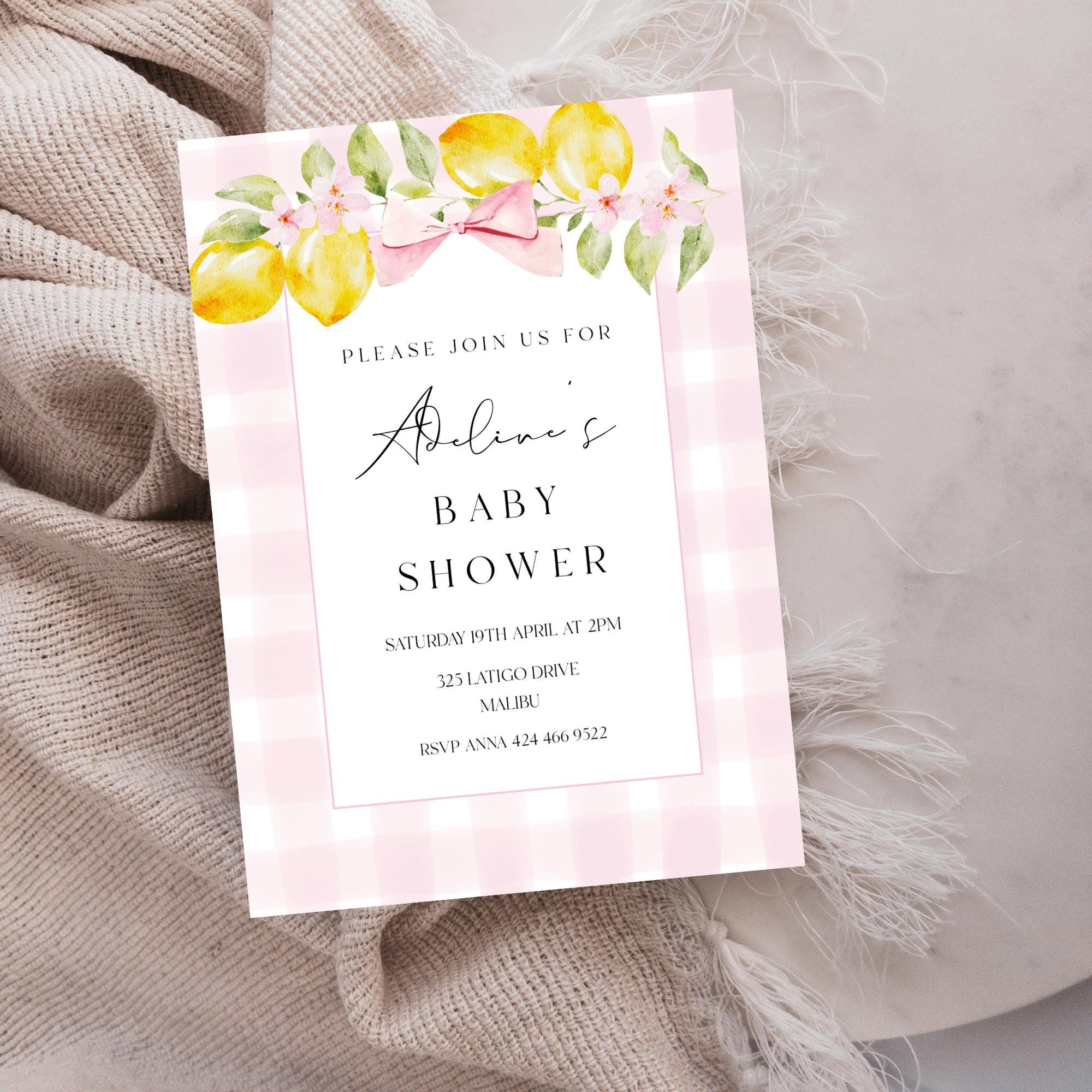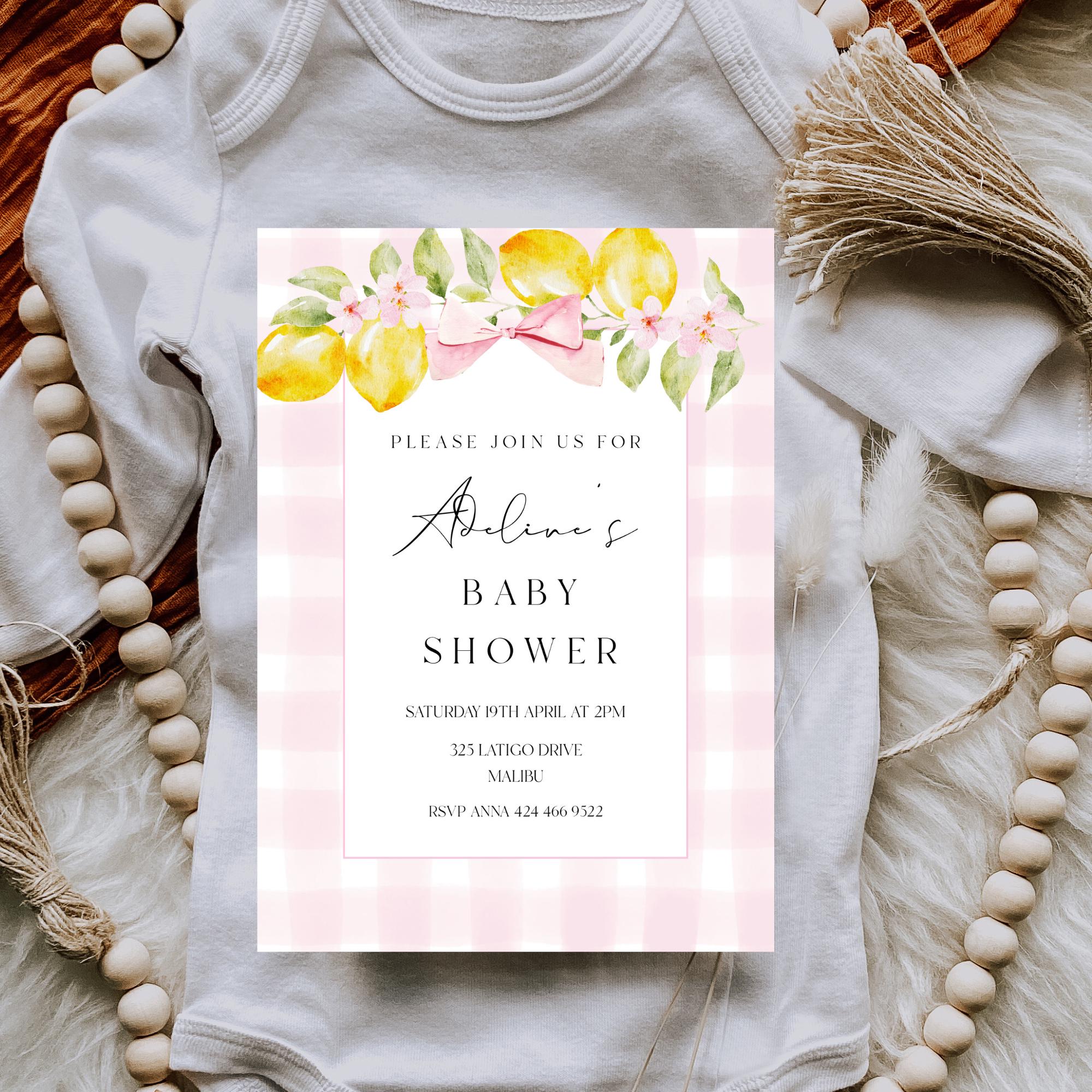 Lemons Baby Shower Invitation Template. An Instant download digital file for you to edit in your web browser with Templett straight after your purchase. Once personalized you are ready to print.
