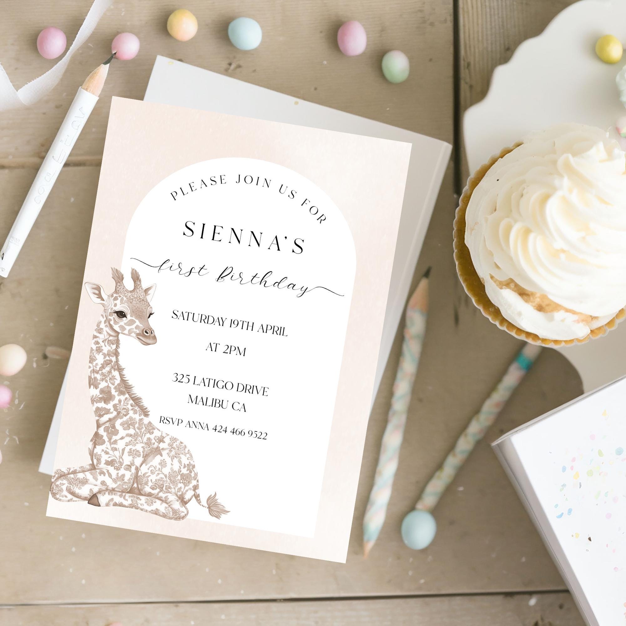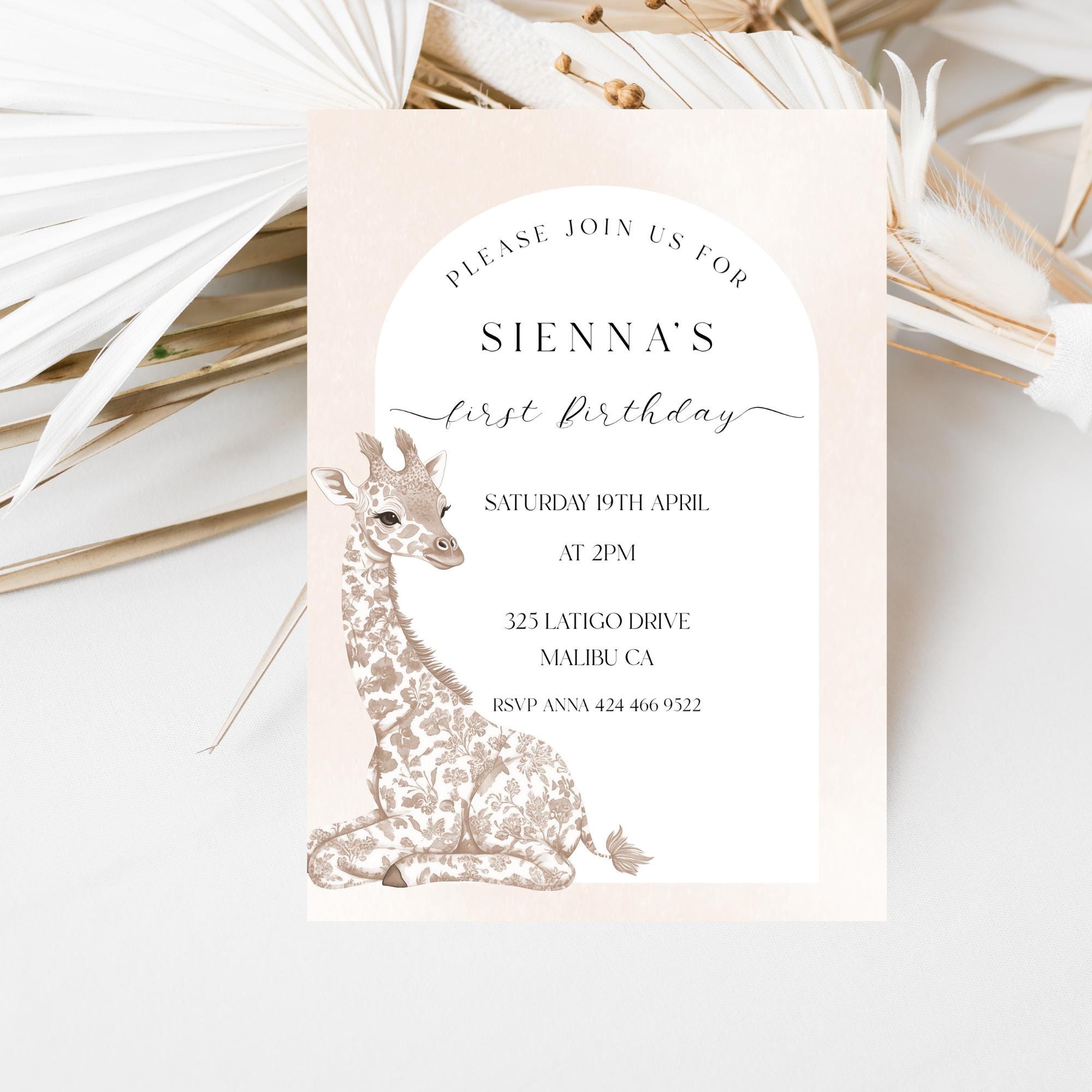 Neutral Safari Birthday Party Invitation Template. An Instant download digital file for you to edit in your web browser with Templett straight after your purchase. Once personalized you are ready to print.