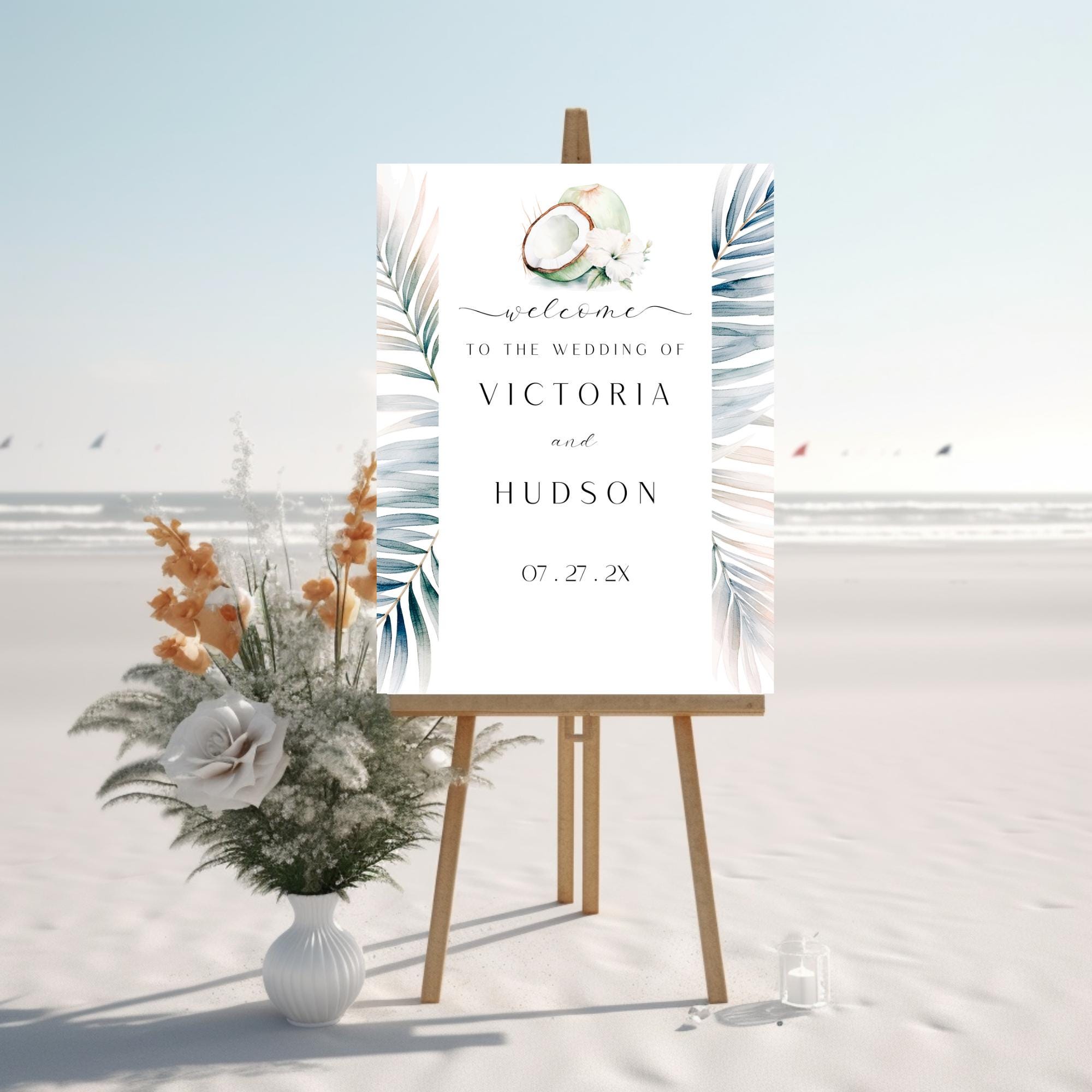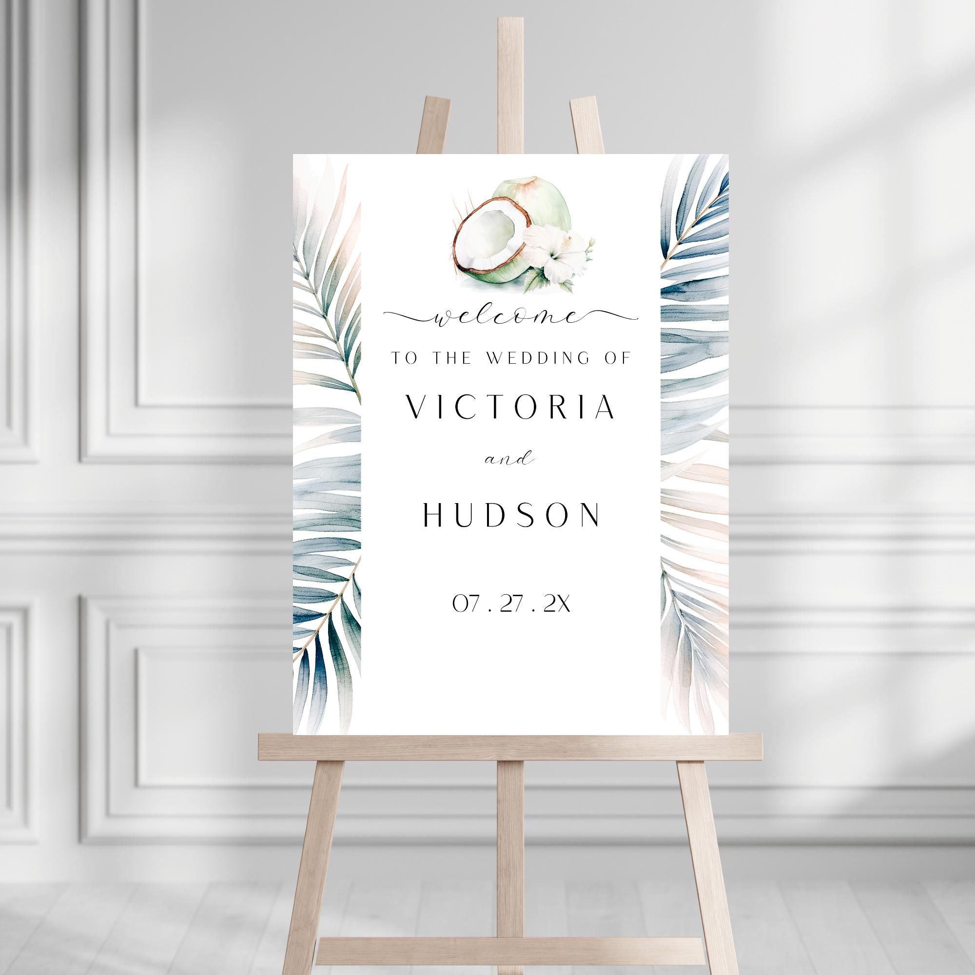 Modern Tropical Wedding Welcome Sign Template. An Instant download digital file for you to edit in your web browser with Templett straight after your purchase. Once personalized you are ready to print.