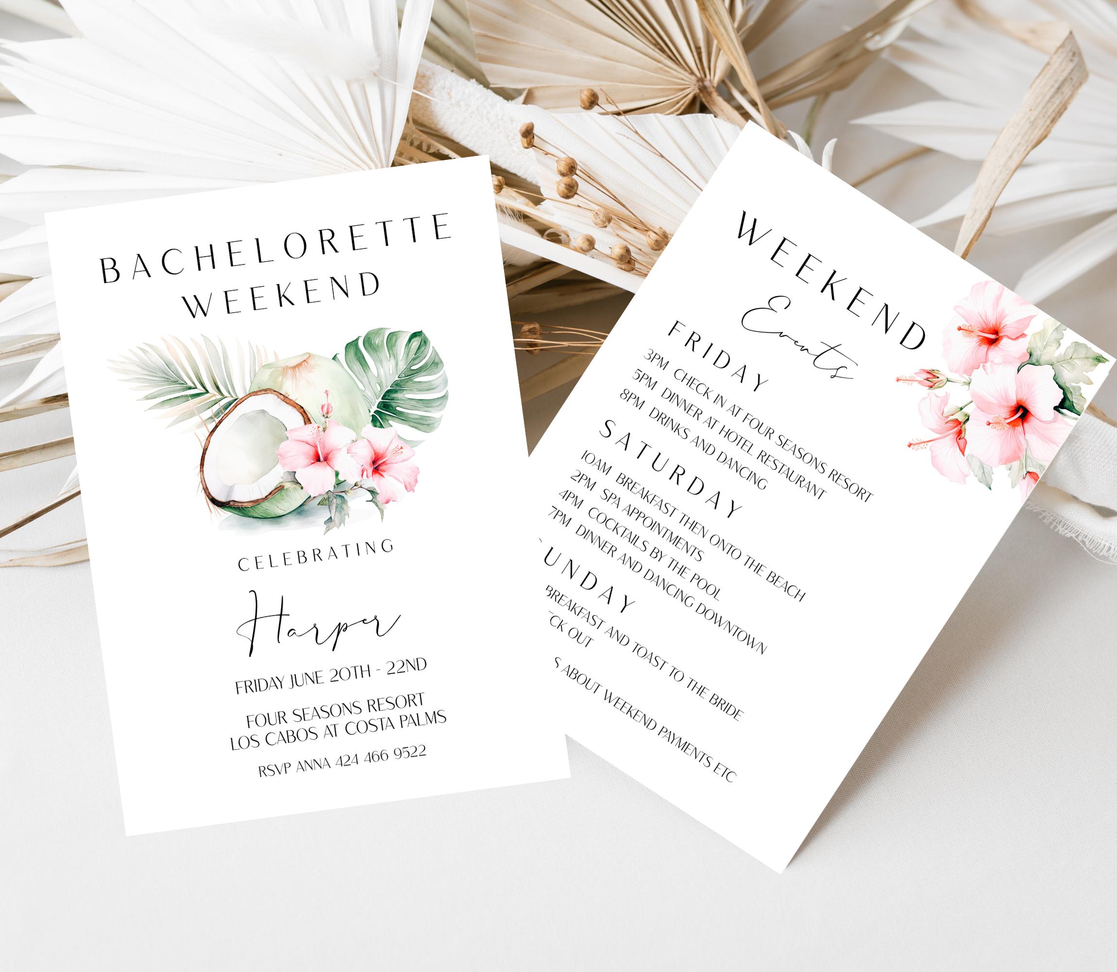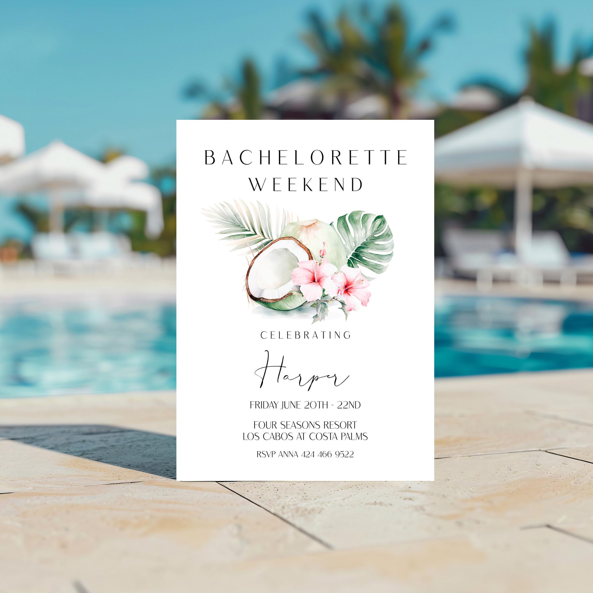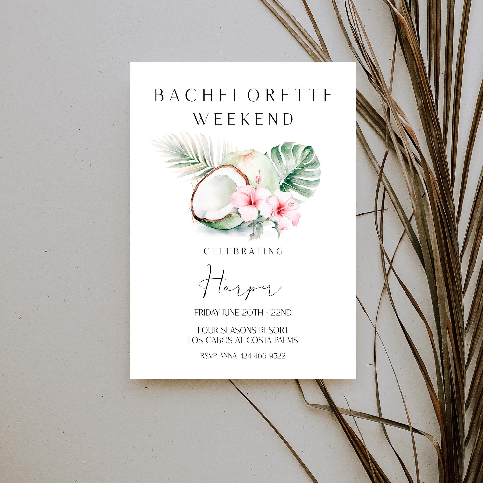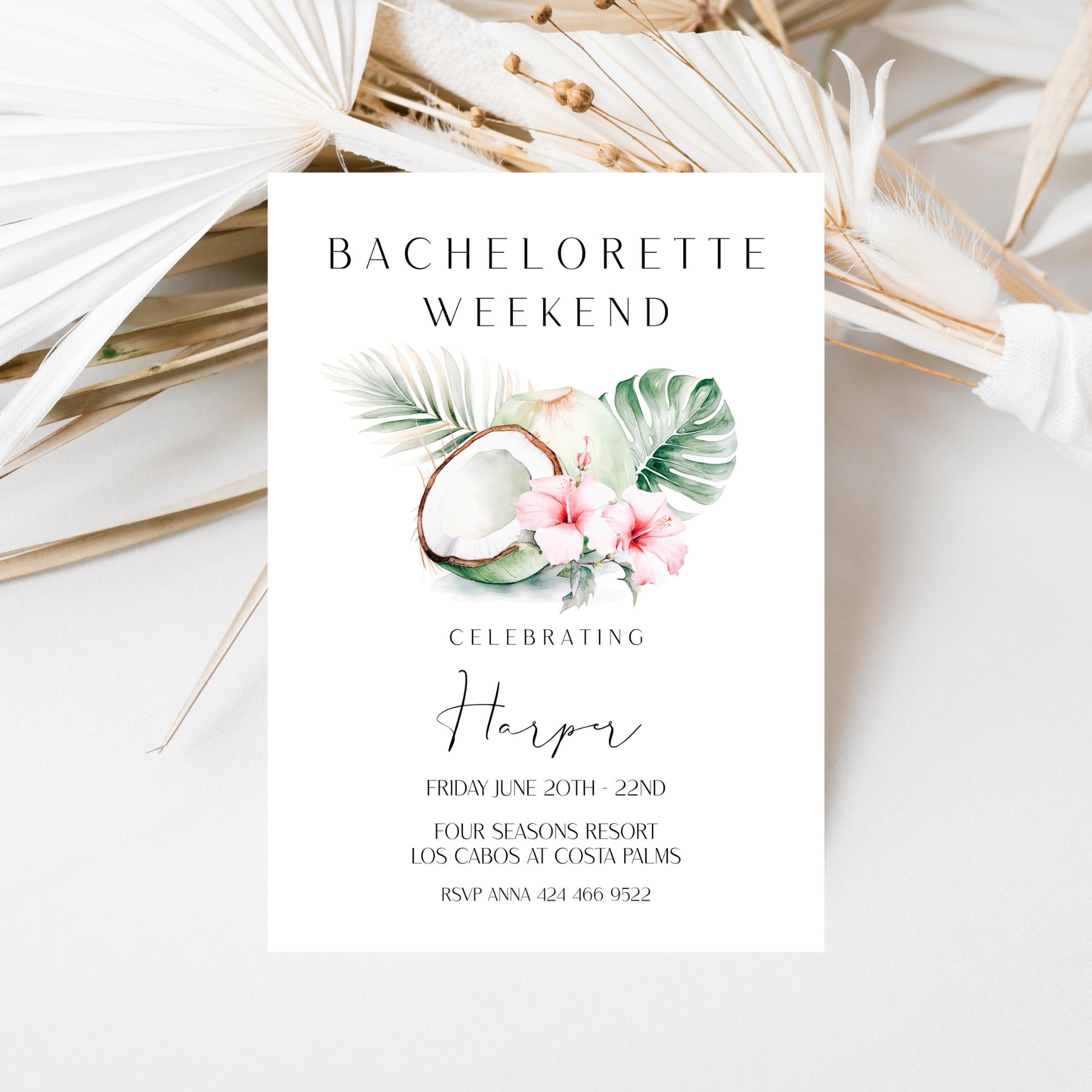 Tropical Bachelorette Weekend Invitation Template. An Instant download digital file for you to edit in your web browser with Templett straight after your purchase. Once personalized you are ready to print.