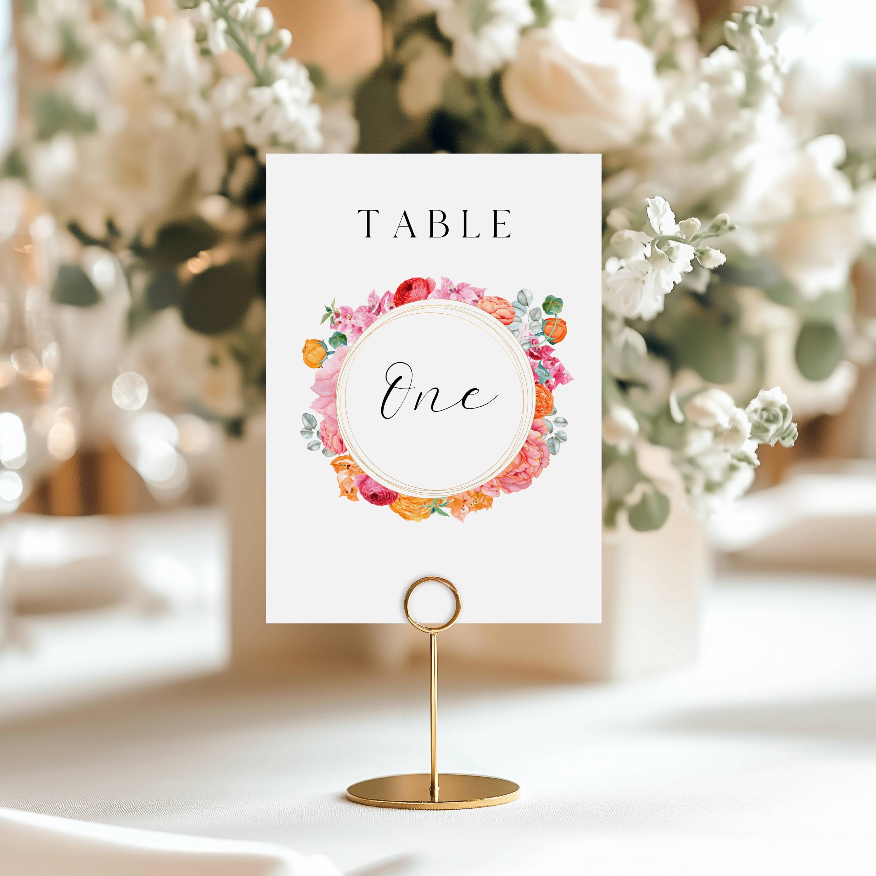 Bright Floral Table Number Sign Template. An Instant download digital file for you to edit in your web browser with Templett straight after your purchase. Once personalized you are ready to print.