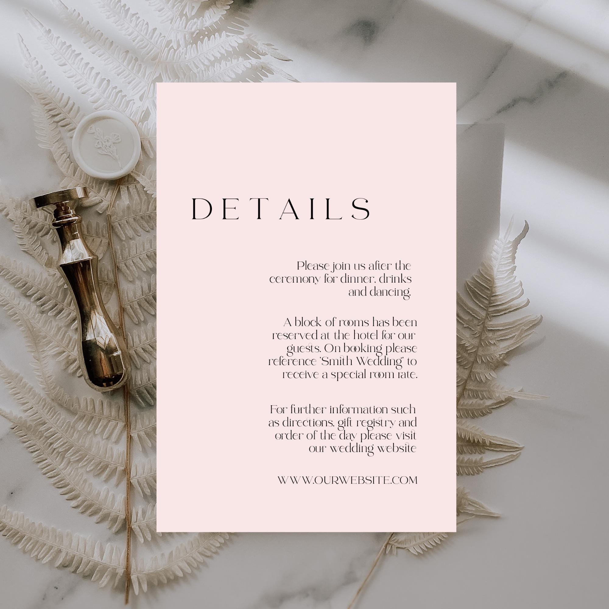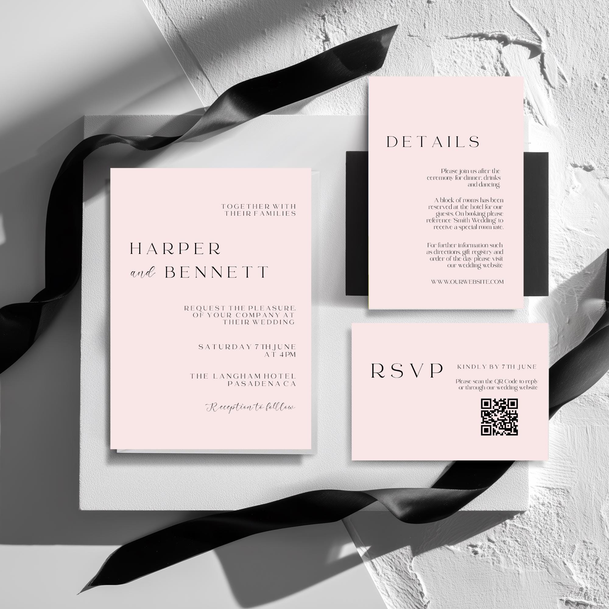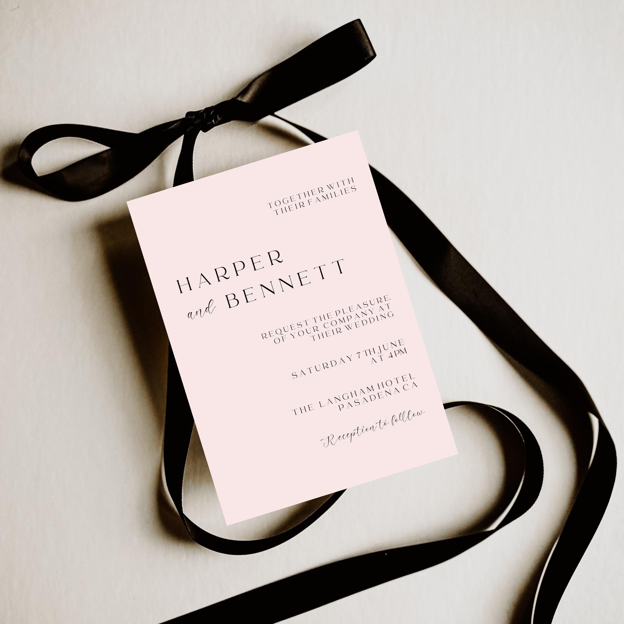 Modern Blush Wedding Invitation Template. An Instant download digital file for you to edit in your web browser with Templett straight after your purchase. Once personalized you are ready to print.