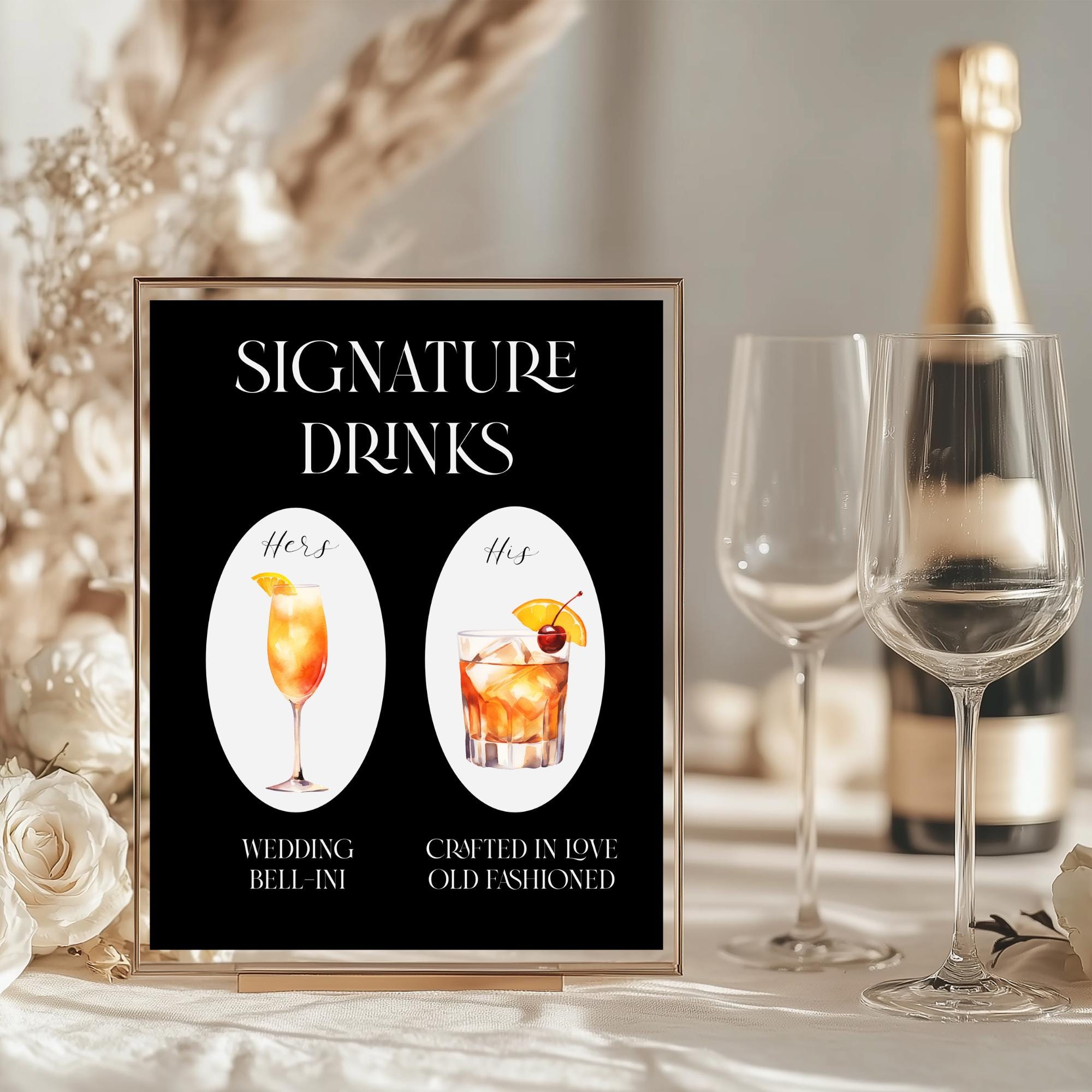 Black Signature Drinks Sign Template. An Instant download digital file for you to edit in your web browser with Templett straight after your purchase. Once personalized you are ready to print.