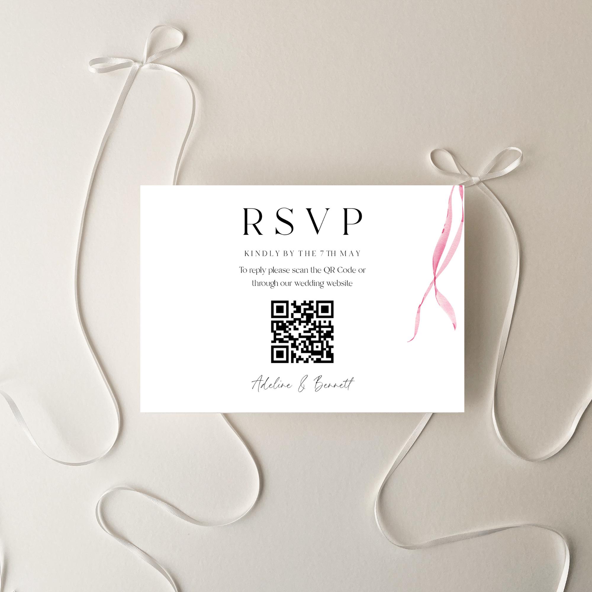You will need to replace the QR Code by creating your own and uploading the new one that links to your wedding website. There are many websites that you can create a free custom QR code. If you don't want to use a QR Code you can easily delete this from the invitation.