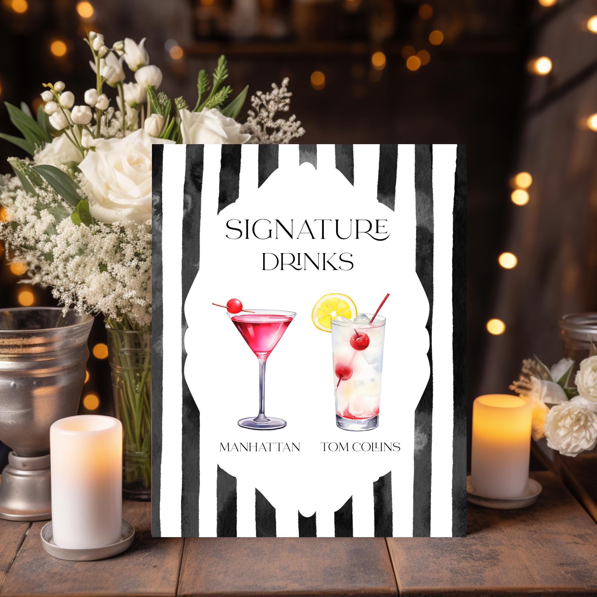 Vintage Signature cocktail Sign Template. An Instant download digital file for you to edit in your web browser with Templett straight after your purchase. Once personalized you are ready to print.
